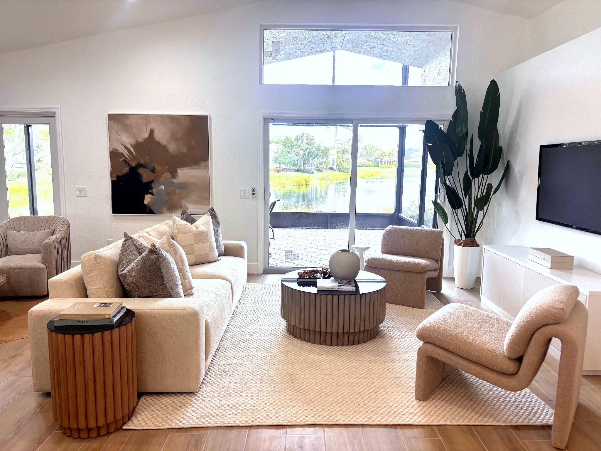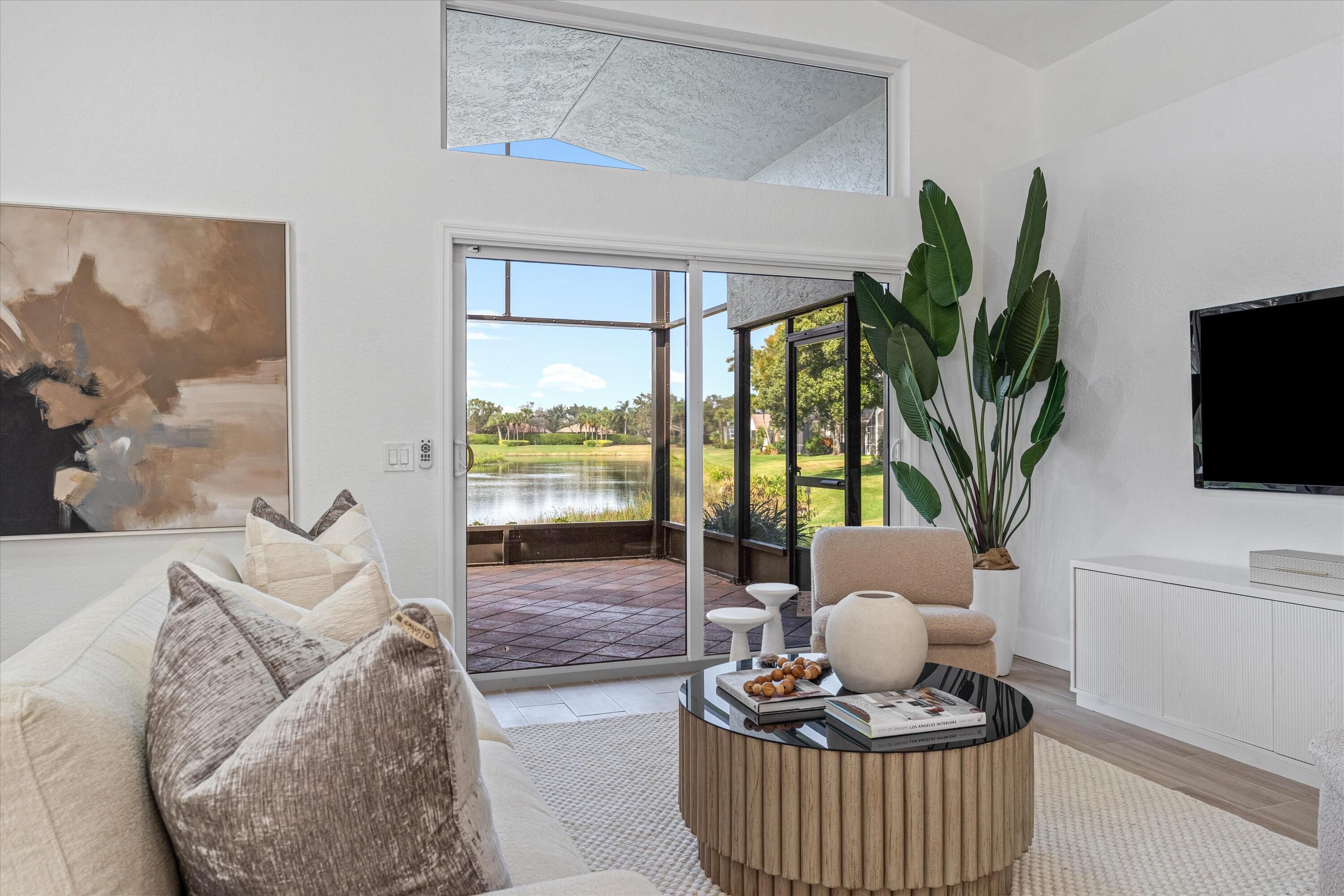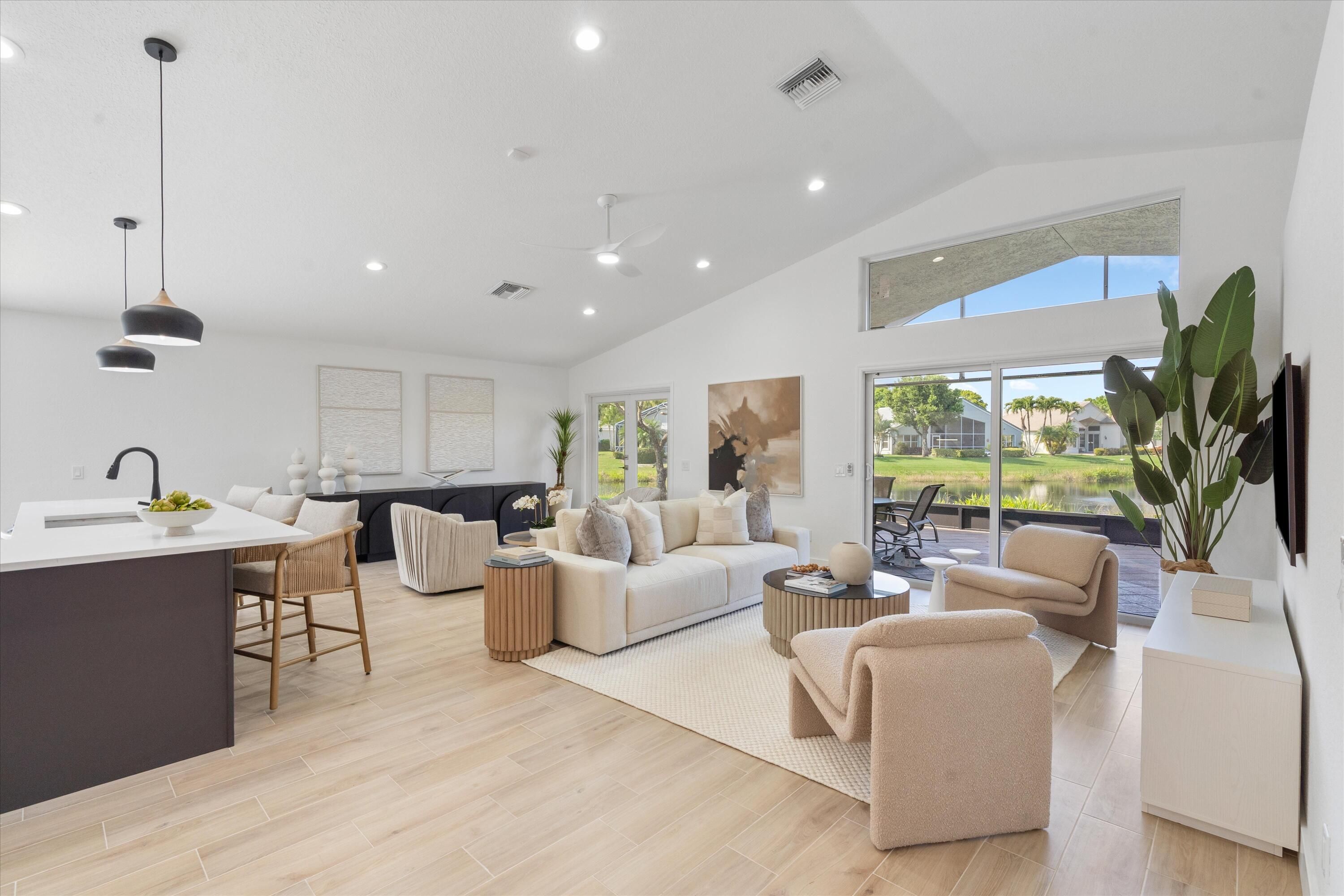 COMPLETELY RENOVATED and move-in ready, this spectacular 3BR/2BA Caspian model home offers beautifully refined living space with breathtaking water views and no detail overlooked. Enjoy total peace of mind w/ FULL IMPACT WINDOWS & DOORS, NEW ROOF, NEW A/C and Hot Water Heater (2024) combining modern efficiency, storm protection and exceptional curb appeal. The chef's kitchen is truly the heart of the home, showcasing brand new stainless steel appliances, wine refrigerator, and premium finishes throughout. It's both functional and striking perfect for everyday living and effortless entertaining. Designer-curated bathrooms elevate the home with spa-like elegance, featuring a freestanding soaking tub and walk-in showers that create a serene retreat. The oversized Florida room is a showstopper, offering panoramic water views and seamless indoor-outdoor living. Ideal for relaxing mornings, sunset evenings, or hosting guests year-round. Located in the prestigious, gated, and pet-friendly community of Valencia Lakes, residents enjoy a newly renovated clubhouse with café, resort-style pools, spa, tennis, pickleball, and an active lifestyle calendar. Just minutes to beaches, dining, and shopping. This is true lakefront luxury, completely turnkey and ready to enjoy.