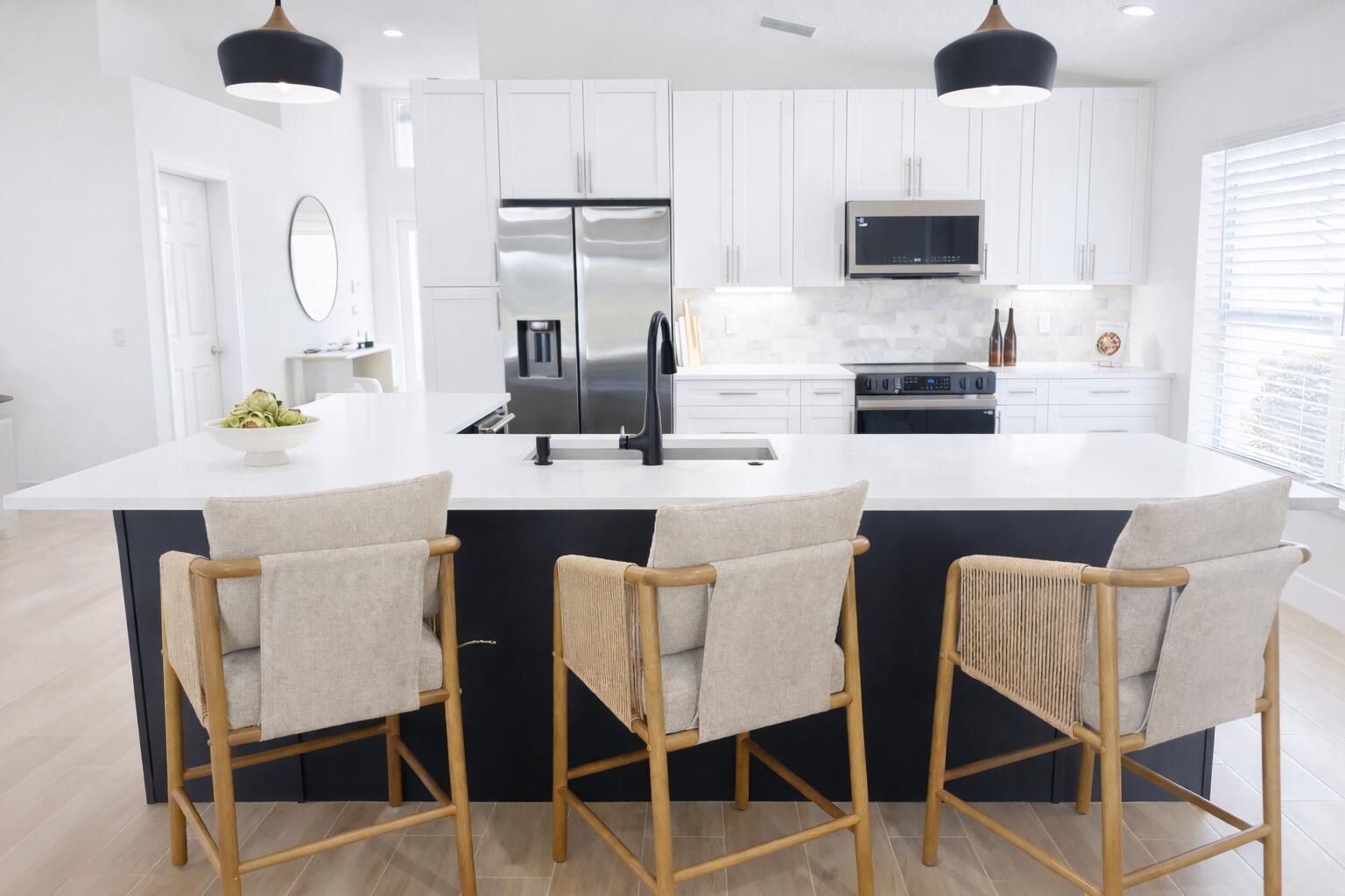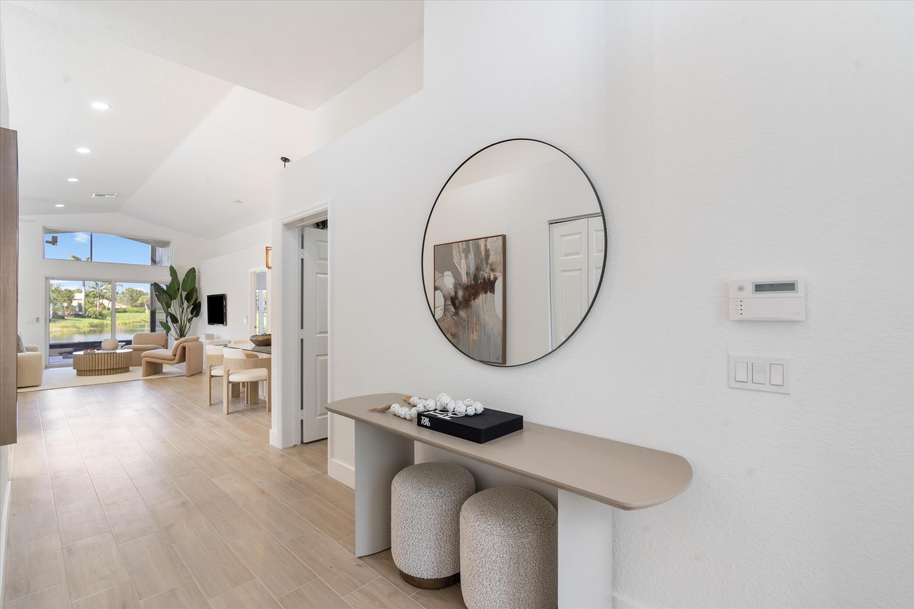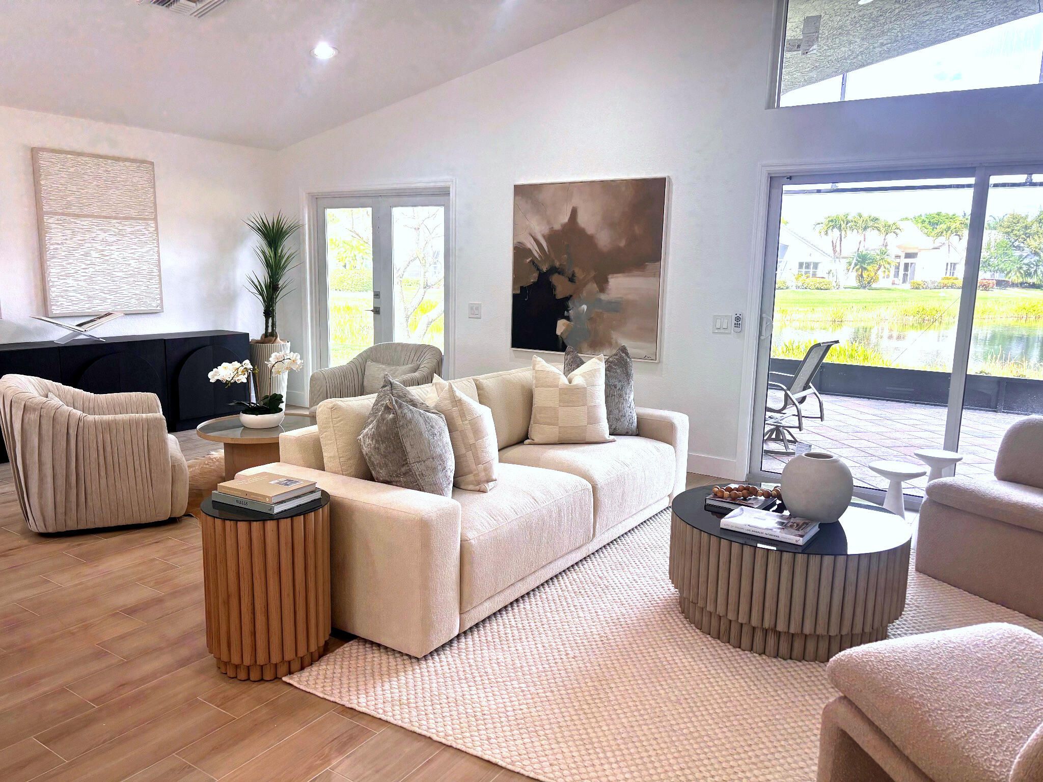 COMPLETELY RENOVATED and move-in ready, this spectacular 3BR/2BA Caspian model home offers beautifully refined living space with breathtaking water views and no detail overlooked. Enjoy total peace of mind w/ FULL IMPACT WINDOWS & DOORS, NEW ROOF, NEW A/C and Hot Water Heater (2024) combining modern efficiency, storm protection and exceptional curb appeal. The chef's kitchen is truly the heart of the home, showcasing brand new stainless steel appliances, wine refrigerator, and premium finishes throughout. It's both functional and striking perfect for everyday living and effortless entertaining. Designer-curated bathrooms elevate the home with spa-like elegance, featuring a freestanding soaking tub and walk-in showers that create a serene retreat. The oversized Florida room is a showstopper, offering panoramic water views and seamless indoor-outdoor living. Ideal for relaxing mornings, sunset evenings, or hosting guests year-round. Located in the prestigious, gated, and pet-friendly community of Valencia Lakes, residents enjoy a newly renovated clubhouse with café, resort-style pools, spa, tennis, pickleball, and an active lifestyle calendar. Just minutes to beaches, dining, and shopping. This is true lakefront luxury, completely turnkey and ready to enjoy.