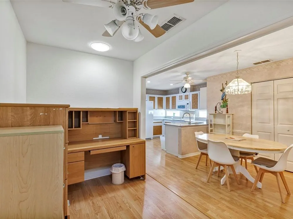 This move in ready home is located in Oak Run, Baytree Greens, Ocala, Florida. This home features a living room, dining room, kitchen with separate eating space and an includes a space that is used as an office. There is a laundry and storage closet off the kitchen as well as access to a 2 car garage with built in cabinets. There is a bonus room off the living room, too. There are two large bedrooms, one with an ensuite bathroom and walk in closet! This centrally located house is just off SR 200 and is close to shopping, restaurants, and entertainment. Amenities include multiple clubhouses, pools, golf course (extra fee) and the Oak Grill restaurant. Be a part of this active 55+ community. Call your Real Estate Professional today.