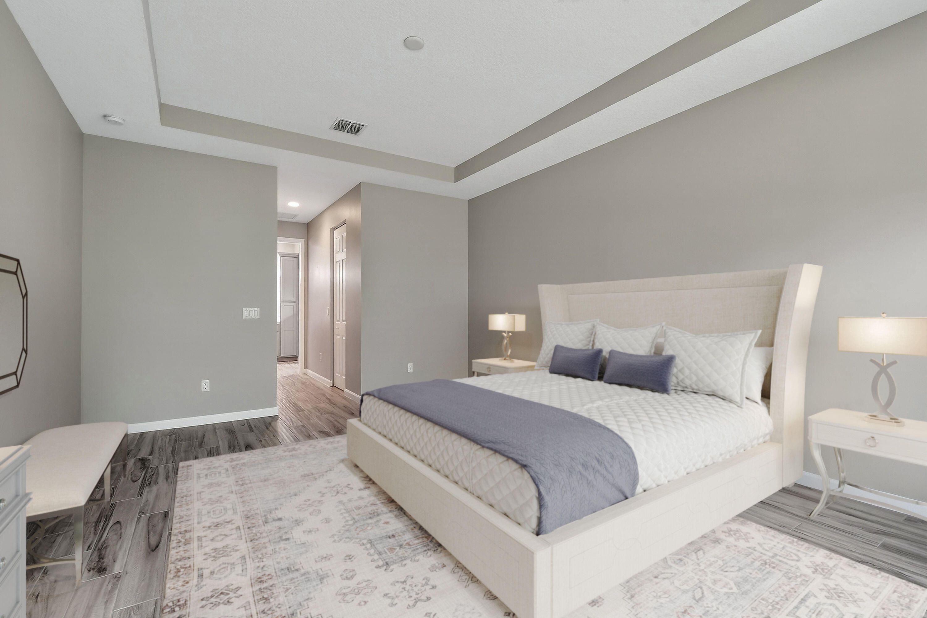 FURNISHED! Almost 3,000s/f of PERFECTION in peaceful but active over 55 community. Pristine 3 bed, 2 1/2 bath PLUS OFFICE, mudroom. Soothing neutral paint, TILE floors throughout, IMPACT windows and doors, closet organizers,TWO master walk-in's. Large ISLAND kitchen, GE PROFILE appliances, QUARTZ countertops + soft close cabinets, hidden pantry, DREAM Garage organizer system, PRIVATE screened back patio. Amenities: 2 heated pools, multi-million$ clubhouse, hot spa, waterpark, basketball, tennis, bocce, billiards, gym, yoga, game room, picnic areas, more! Tradition is the nation's best PUD with dozens of upscale neighborhoods and offers lakes, walking trails, parks, al fresco DINING, shopping, nightlife, and GOLF, doctors, BEACHES, boating, NY METS spring training are all nearby.