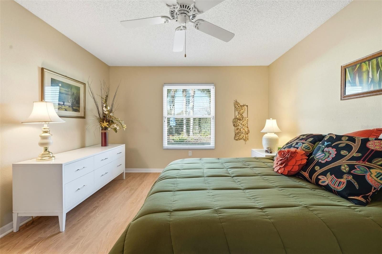 TURNKEY WITH GOLF CART! Move right in to this beautifully maintained 3-bedroom, 2-bath home located in the desirable, gated PENNBROOKE FAIRWAYS community. As you enter, you are welcomed by a spacious dining and living room combination that offers an open and inviting layout. The well-appointed kitchen features GRANITE COUNTERTOPS, STAINLESS STEEL APPLIANCES, ample cabinetry, and generous workspace, making it ideal for both everyday living and entertaining. The home offers a desirable SPLIT FLOOR PLAN with TWO MASTER SUITES, one of which includes a PROFESSIONALLY ORGANIZED CLOSET. The Florida room opens seamlessly to the living area, creating a bright and comfortable space for relaxing or hosting guests. Additional interior highlights include a premium Speed Queen washer and dryer, newer top-of-the-line windows, and beautifully crafted front and rear entry doors. Exterior features include a brick paver driveway and front walkway, gutters surrounding the home, and a concrete sidewalk leading to the backyard with convenient access to the garage side entrance. The backyard offers a charming brick paver patio complete with an electric sunshade, perfect for enjoying Florida’s outdoor lifestyle. The yard is designed for low maintenance, with beautiful landscaping finished in attractive decorative stone landscaping. The home is situated on a quiet dead-end street, offering minimal traffic and added privacy. Major system updates provide peace of mind, including a HVAC (2018), ROOF (2019), an insulated garage door (2019), a water softener (2020), and a new sprinkler system controller(2023). Pennbrooke Fairways is a guarded, gated 55+ community located just five minutes south of The Villages and less than an hour from Orlando International Airport. Residents enjoy access to the Pennbrooke Fairways golf course featuring two executive nines and one regulation nine, with golf packages available. Additional amenities include 24-hour security, MULTIPLE POOLS, recreation and fitness centers, a clubhouse with restaurant, hair salon, library, RV and boat storage with dump and wash stations, and a full calendar of planned activities. The HOA includes cable, internet, garbage service, and lawn care. Conveniently located near Brownwood Town Square, Downtown Leesburg, and all the shopping, dining, and entertainment nearby (The Villages). This home truly represents the best of Central Florida living!