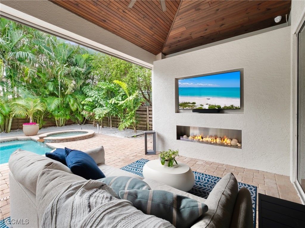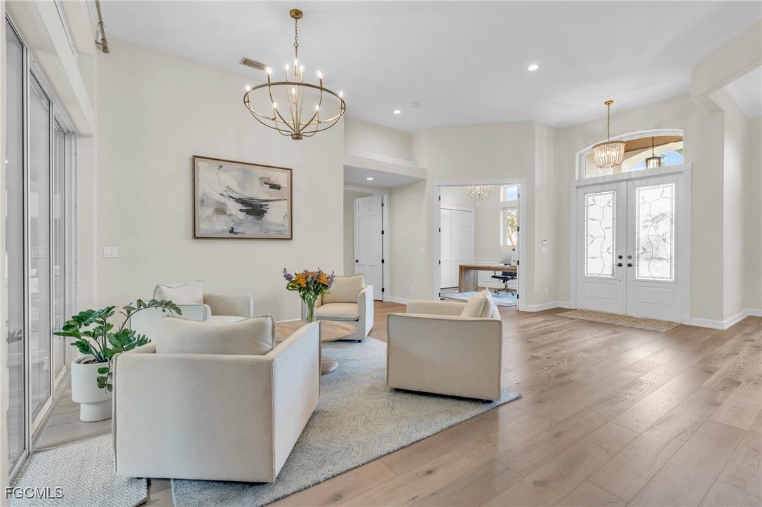 Welcome to 11451 Compass Point Drive in the exclusive Edgewater neighborhood of Gulf Harbour Yacht & Country Club. This gorgeous, serene fully furnished, 4 bedroom 3 bath pool home was recently renovated with new white oak hardwood flooring, new kitchen and bathrooms and new lighting throughout. The beautiful, RENOVATED KITCHEN boasts a newly re-worked floorpan with an island offering additional counter, cabinet and seating space, new GE appliances and GAS COOKING (propane added in 2024). The open floor plan connects all of the living areas, making this home a perfect place for entertaining friends and family. Step outside to discover your very own totally private tropical oasis with a spacious lanai and sparkling saltwater pool and spa. Cozy up in front of the NEW OUTDOOR FIREPLACE or practice your putting skills on YOUR VERY OWN PUTTING GREEN . End your day in the gorgeous and serene primary suite where you’ll enjoy the new freestanding tub in the NEWLY RENOVATED PRIMARY BATH with walk in shower, dual sinks and 2 walk in closets. Three additional bedrooms offer plenty of space for family or visitors. (The 4th bedroom is currently being used as an office). The 3 car garage with epoxy floors offers plenty of space for cars and golf carts and to top it off, The newer ROOF in (2022) and HVAC systems (2023), New WATER HEATER(2025)offer you peace of mind. This home is located in the prestigious Gulf Harbour Yacht & Country Club, where separate membership offers access to a championship golf course, tennis courts, a fitness center, and a marina. (Membership is an additional fee). Close to restaurants, shopping, beaches and schools, it’s the perfect location to make your next permanent or vacation home. Don’t wait! Make an appointment for your private tour today.