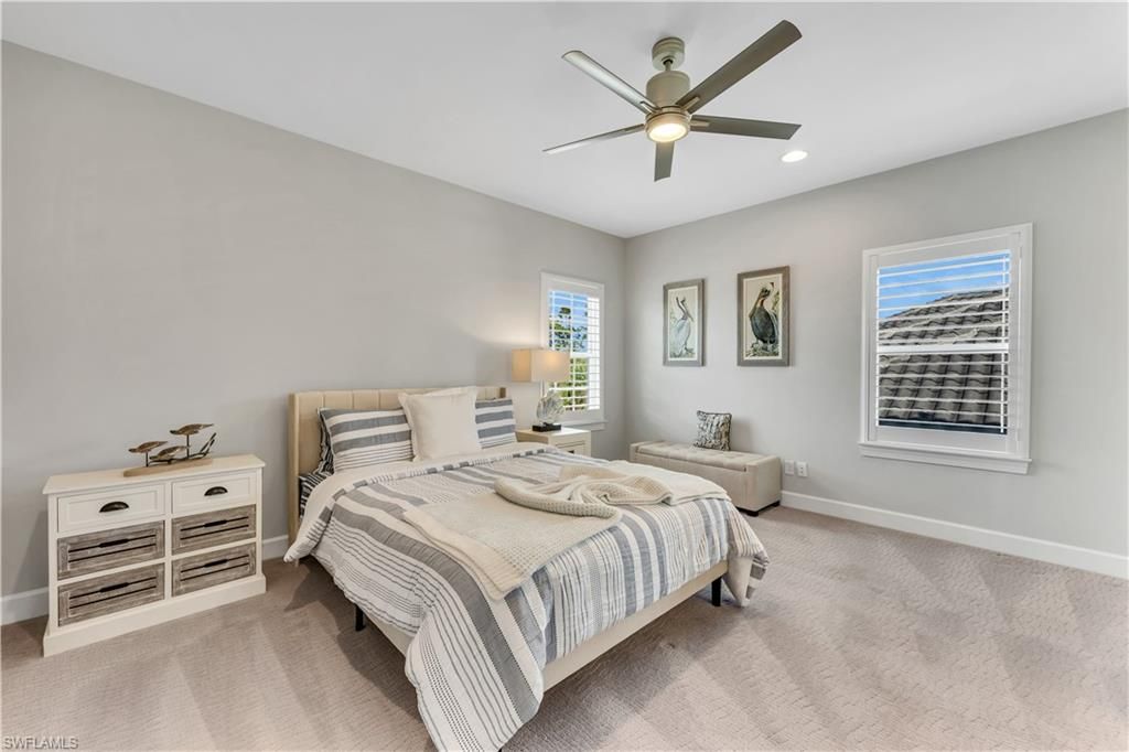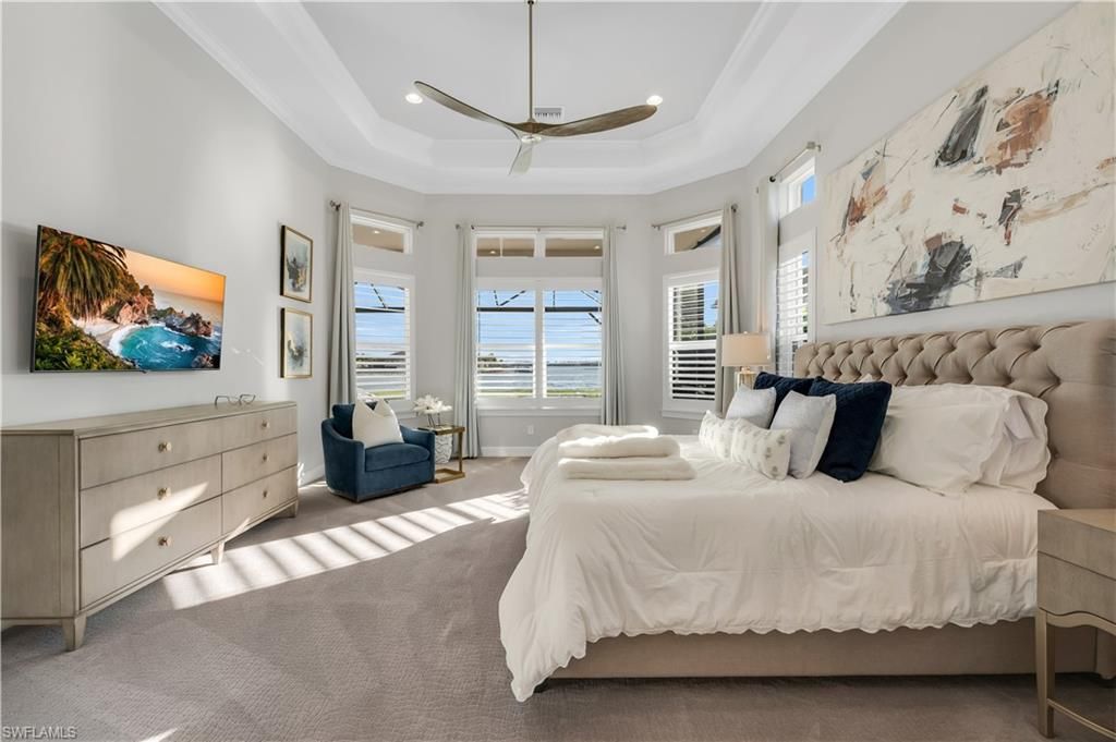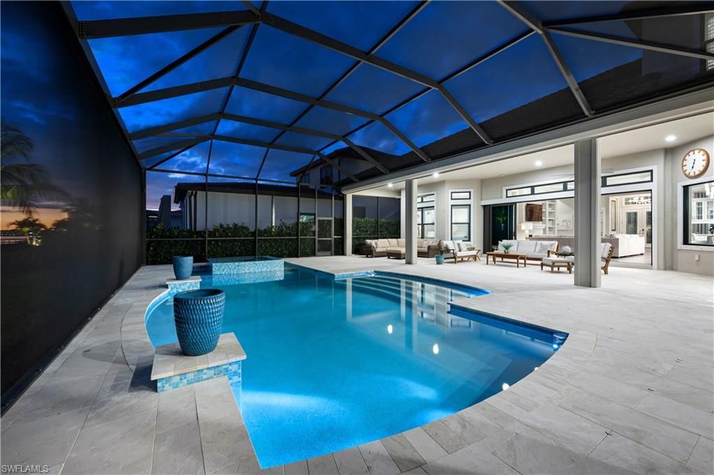 Spectacular southern wide-water views on Lake Como in this 4500+ sq. ft. 4 bedroom plus den 6-bath estate home with private dock for boating from your back yard! Fully furnished for immediate waterfront enjoyment of your luxury residence in Esplanade Lake Club. Light-filled to capitalize on the views from every room, the thoughtful design seamlessly blends indoor and outdoor living and dining areas. The lanai with extended sunset deck allows enjoyment of the Florida lifestyle from sunrise to sunset. The lanai features picture-window screens, beautiful light stone decking, outdoor kitchen with natural-gas grill, sink, storage and refrigeration and custom salt-water pool and spa. Adjacent, your private boat dock promising endless enjoyment on Lake Como. Inside, the chef’s kitchen features professional-grade Monogram appliances, 6-burner natural gas cooktop, ample prep space, walk-in pantry, and large center island with seating. A first-floor primary suite, dedicated office, three additional en suite bedrooms, two half baths, expansive game room, and three-car garage complete the interior. Upgrades include natural gas fireplace, custom millwork and built-ins, whole house natural gas generator, impact windows and doors, motorized hurricane shutters on the covered living areas, extended pool deck, designer tile and lighting. Offered fully furnished. Esplanade Lake Club features superb amenities including a boat launch on the 400+ acre lake, pool, spa, fitness center, tennis, pickleball and bocce courts, and walking trails. The clubhouse offers a beachfront outdoor bar and grille, and a lakefront promenade with sunset views. Esplanade Lake Club is minutes from three shopping centers, world-class beaches, and southwest Florida International Airport. Listing agent can provide a boat tour of the community upon request!