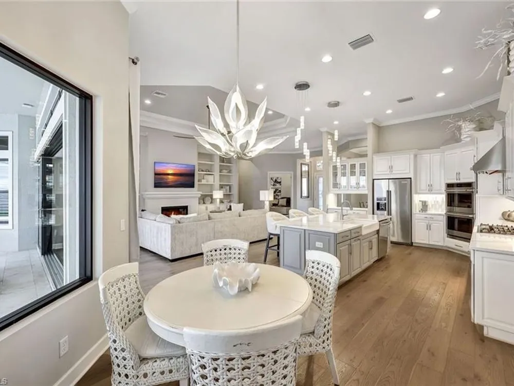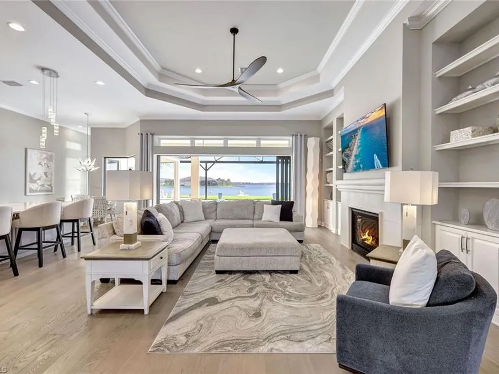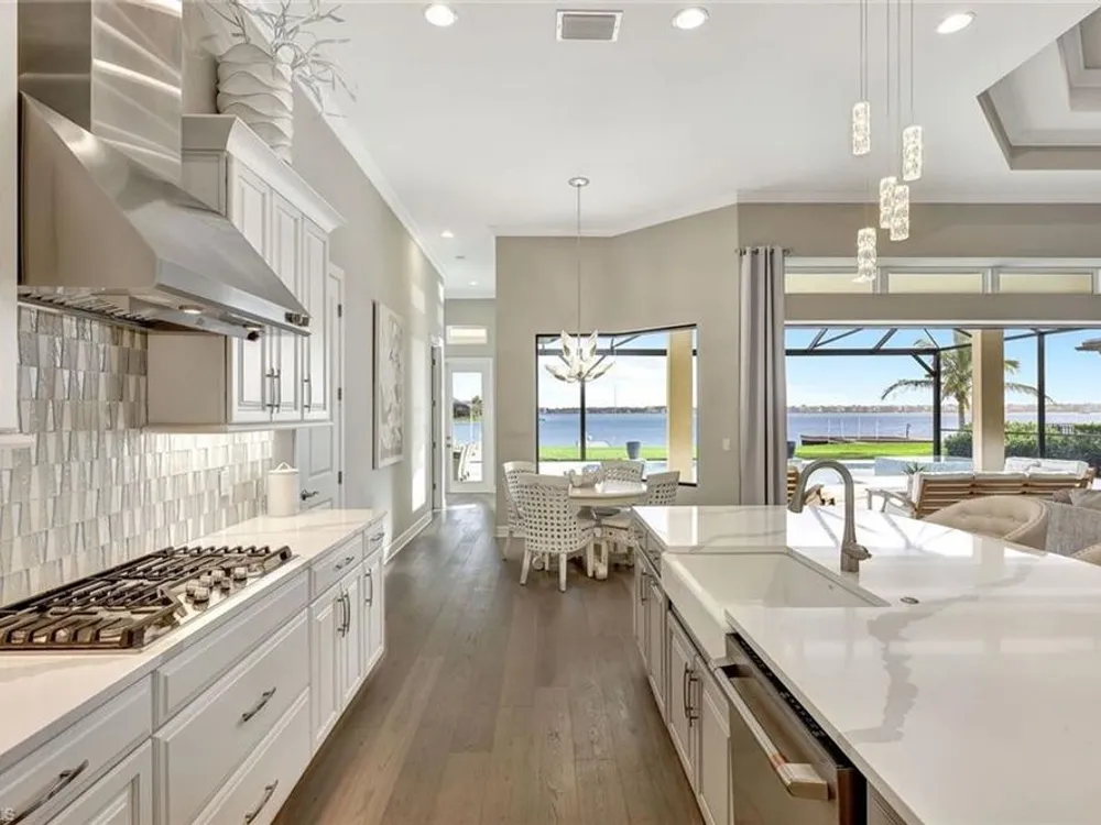 RARE OPEN LAKE VIEW! This stunning 4-bedroom plus den, bonus room, and 4.5-bath Mercedes floor plan in the coveted Esplanade Lake Club blends estate-style living with the ultimate Florida lifestyle. Thoughtfully crafted for both everyday comfort and unforgettable entertaining, this residence showcases expansive living areas and sweeping views of Lake Como through four oversized sliders, creating a seamless connection between indoors and out. The chef’s kitchen is the true heart of the home, offering a gas cooktop, wall ovens, custom cabinetry, and expansive countertops that make cooking and entertaining effortless, while the adjacent living and dining spaces ensure you are always part of the conversation. The owner’s suite feels like a private sanctuary, designed with a bay window framing peaceful lake views, custom his-and-hers closets, and a spa-like bath with dual vanities and a luxury shower. Each guest suite is generously sized, providing family and visitors with privacy and comfort. Step outside to your own lakeside retreat: the screened lanai is complete with a sparkling saltwater pool, spa, and a fully outfitted outdoor kitchen perfect for grilling and gathering, while just beyond, a private dock invites you to relax at the water’s edge, take in breathtaking sunsets, or start your day with the tranquil sounds of nature. This home was built with peace of mind in mind, featuring impact windows, roll-down shutters, a whole-house generator, and a spacious 3-car garage. The exterior is equally impressive with colorful, mature landscaping that creates inviting curb appeal, while inside, crown molding, designer fixtures, and an airy coastal palette enhance the elegant yet relaxed atmosphere. Life in Esplanade Lake Club is about more than just a home—it’s about embracing a vibrant, resort-style community with something for everyone. Residents enjoy two sparkling pools and a spa, a lakefront beach area with cabanas, a state-of-the-art fitness center, a beautifully appointed clubhouse with restaurant and bar, pickleball and tennis courts, bocce ball, and miles of nature trails for walking or biking. Lake Como itself is the centerpiece of the community, where boating, kayaking, and paddleboarding are all part of daily life, adding to the sense of being on a permanent vacation. Whether you are hosting family and friends, enjoying a quiet evening on the dock, or taking advantage of the full array of amenities, every day here feels like a getaway. This is more than just a home—it’s a rare opportunity to own a one-of-a-kind lakeside retreat where luxury, comfort, and community converge. Don’t miss your chance to make this coastal dream home yours today!