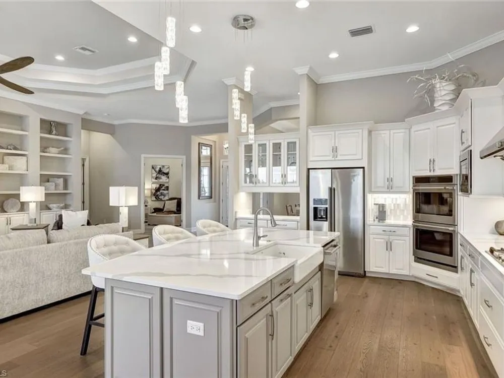 - Bar, Built-In Cabinets, Cable TV Hookup, Custom Mirrors, Fireplace, Entrance Foyer, French Door(s)/Atrium Door(s), Internet Available, Laundry Tub, Pantry, Pull Down Attic Stairs, Smoke Detector, Tray Ceiling(s), High Ceilings, Walk-In Closet(s), Window Coverings, Den, Great Room, Additional Bathroom, Guest Room, Laundry Facility, Loft, Bedroom on Main Level, Sitting Area In Primary Bedroom, Split Bedrooms, Eat-in Kitchen, Separate/Formal Dining Room, Gas Appliance Hookup, Kitchen Island, Walk-In Pantry, Dual Sinks, Multiple Shower Heads, Separate Shower, Double Hung Window(s), Sliding Window(s)