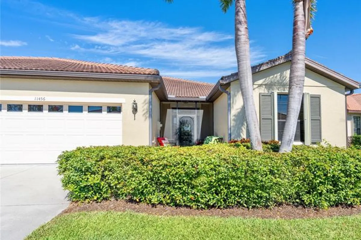 Experience maintenance-free, resort-style living in this beautiful 3-BEDROOM PLUS DEN, 2,102 sqft home in the premier 55+ community of Venetian Falls! Conveniently located just minutes from the sunny beaches, shopping, dining, and Venice's historic district, this Giovanni paired villa offers spacious rooms with CROWN MOLDING, PLANTATION SHUTTERS, CENTRAL VACUUM, and EASY-TO-USE WHOLE HOUSE STORM PROTECTION. Step through the SCREENED FRONT ENTRYWAY into a wide foyer illuminated by a BEVELED GLASS DOOR with sidelights and an overhead transom window. The kitchen features UPDATED STAINLESS-STEEL APPLIANCES, solid-wood cabinets with decorative trim, dining bar, and is open to the leisure area as well as a DINETTE surrounded by windows. The WALK-IN PANTRY provides ample storage space for staples, appliances, and platters. The PRIMARY SUITE, located at the rear of the home for added privacy, includes two closets (one a large walk-in) and a spacious bathroom with corner vanity with dual sinks, private water closet, linen closet, and a walk-in shower. At the front of the home, the guest bedrooms and bathroom create a PRIVATE RETREAT FOR VISITORS and the DEN is a versatile space for a quiet sitting area or office. Enjoy the outdoors on the lanai while you soak in the ambiance of the SERENE PRESERVE as a backdrop. This screened area is wonderful for grilling, dining, and lounging in the sun or shade. Buttoning up the property is easy convenient ACCORDION STORM SHUTTERS for the windows, plus REMOTE-CONTROLLED SHUTTER for the lanai, and ROLL-DOWN SHUTTER for the front door. A WELCOMING PAVERED PATIO as you arrive at the front entryway adds to the lovely curb appeal of this property. Venetian Falls offers exceptional community amenities, including a resort-style clubhouse with a heated lap pool and spa, resistance-walking pool, state-of-the-art fitness center, billiards room, bocce courts, full-time activity director, and on-site management. The reasonable HOA fee includes lawn maintenance, irrigation, roof pressure washing, exterior paint, basic cable, and internet, with no CDD fee. Don’t miss the chance to make this remarkable home your own!