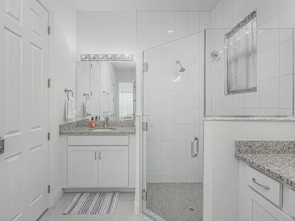 - Entrance Foyer, Kitchen Island, Pantry, Split Bedrooms, High Ceilings, Walk-In Closet(s), Great Room, Breakfast Area, Florida/Dining Room, Eat-in Kitchen, Snack Bar, Blinds, Drapes, Impact Glass, Dual Sinks, Primary Downstairs, Separate Shower