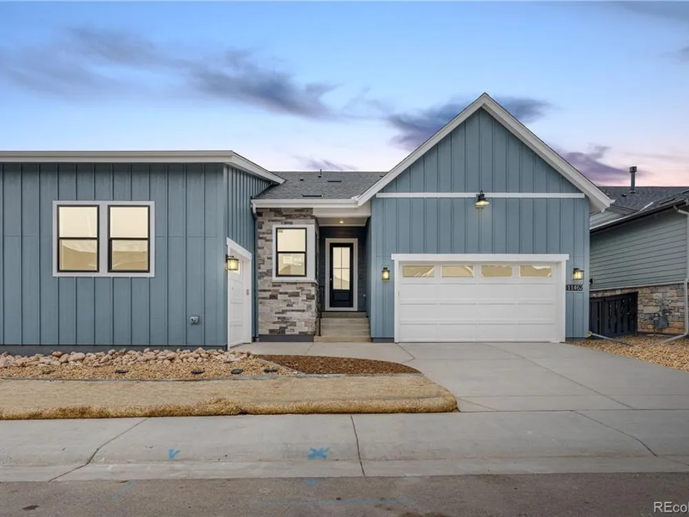 Beautiful one-story home in the desirable Solstice Community. Solstice is surrounded by Chatfield State Park on 3 sides of the community and acreage parcels on the 4th side. This home has 4 bedrooms, 4 baths, finished basement with wet bar, fireplace with full height tile surround, covered patio, and 3-bay split garage. Design finishes include Evoke luxury plank flooring in Astoria/Tiercel, MSI engineered stone counter tops in New Carrara Marmi, horizontal iron railings, and Yorktowne cabinets in White Icing and Earl Grey. Please contact a community representative for details. The Mirabelle Metropolitan Districts provide various services to the property and in addition to the estimated taxes, a $40 per month operations fee is imposed.