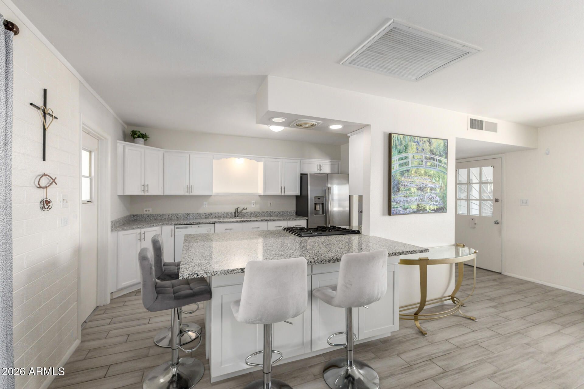 This beautifully updated and fully furnished 2-bedroom, 2-bath home is move-in ready and packed with upgrades! The stylish kitchen features granite countertops, a wrap-around breakfast bar, updated cabinetry and hardware, stainless steel appliances, and durable plank tile flooring that flows seamlessly throughout the home. The open-concept living and kitchen area creates a bright, welcoming space perfect for entertaining or relaxing. Both bathrooms have been thoughtfully updated with modern cabinets, and grab bars for added comfort and convenience. A spacious bonus room with Mini Split provides flexible space for a hobby room, office, or guest area. The home offers ample storage throughout. Built with solid block construction, the home also features a fully fenced backyard and easy-care desert landscaping -- ideal for low-maintenance living. Located in the vibrant community of Sun City, residents enjoy an active adult lifestyle with access to 8 golf courses and 8 recreation centers offering pools, tennis courts, pickleball courts, fitness facilities, clubs, and endless social opportunities. This is more than just a home -- it's the lifestyle you've been looking for!