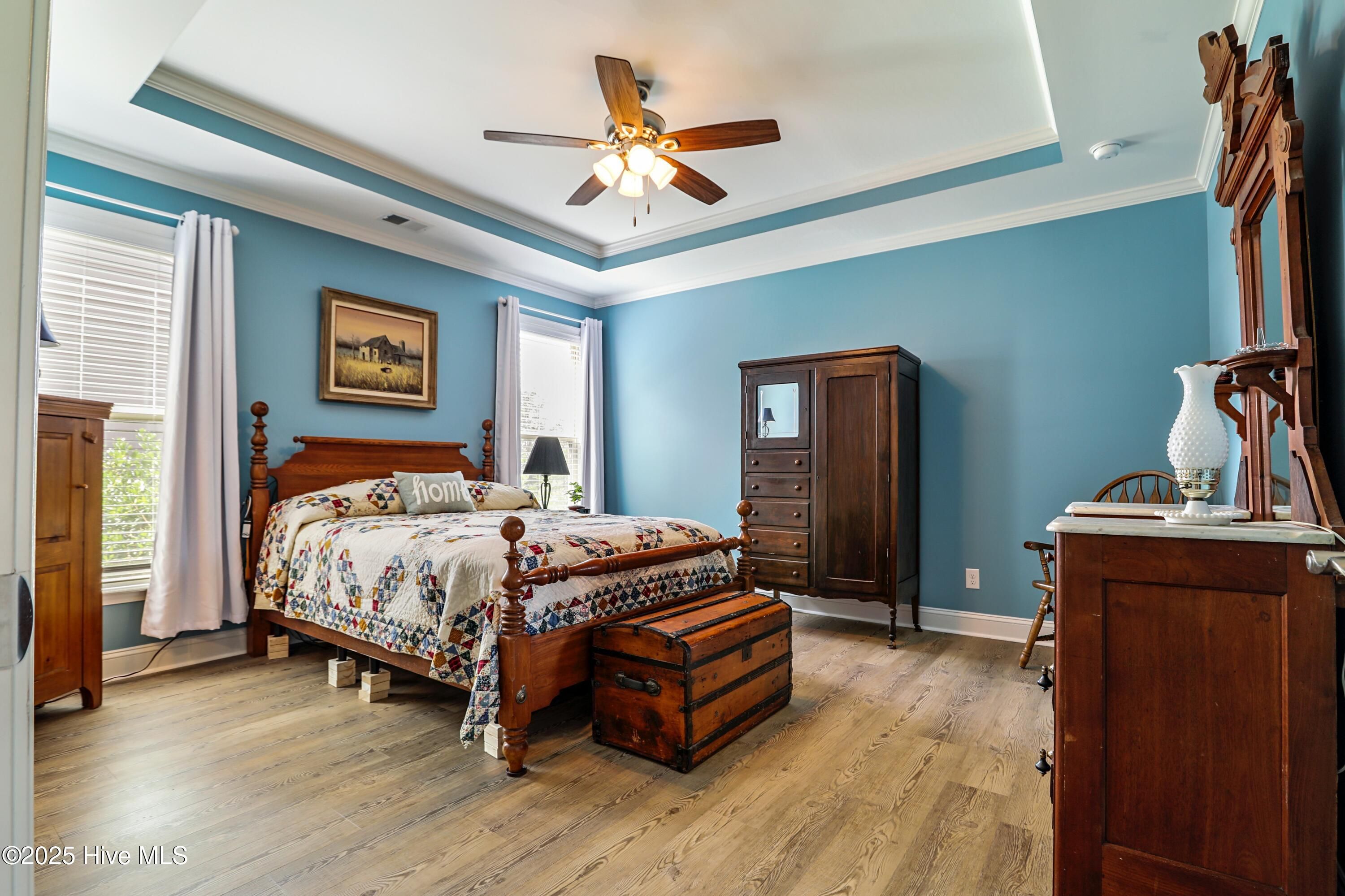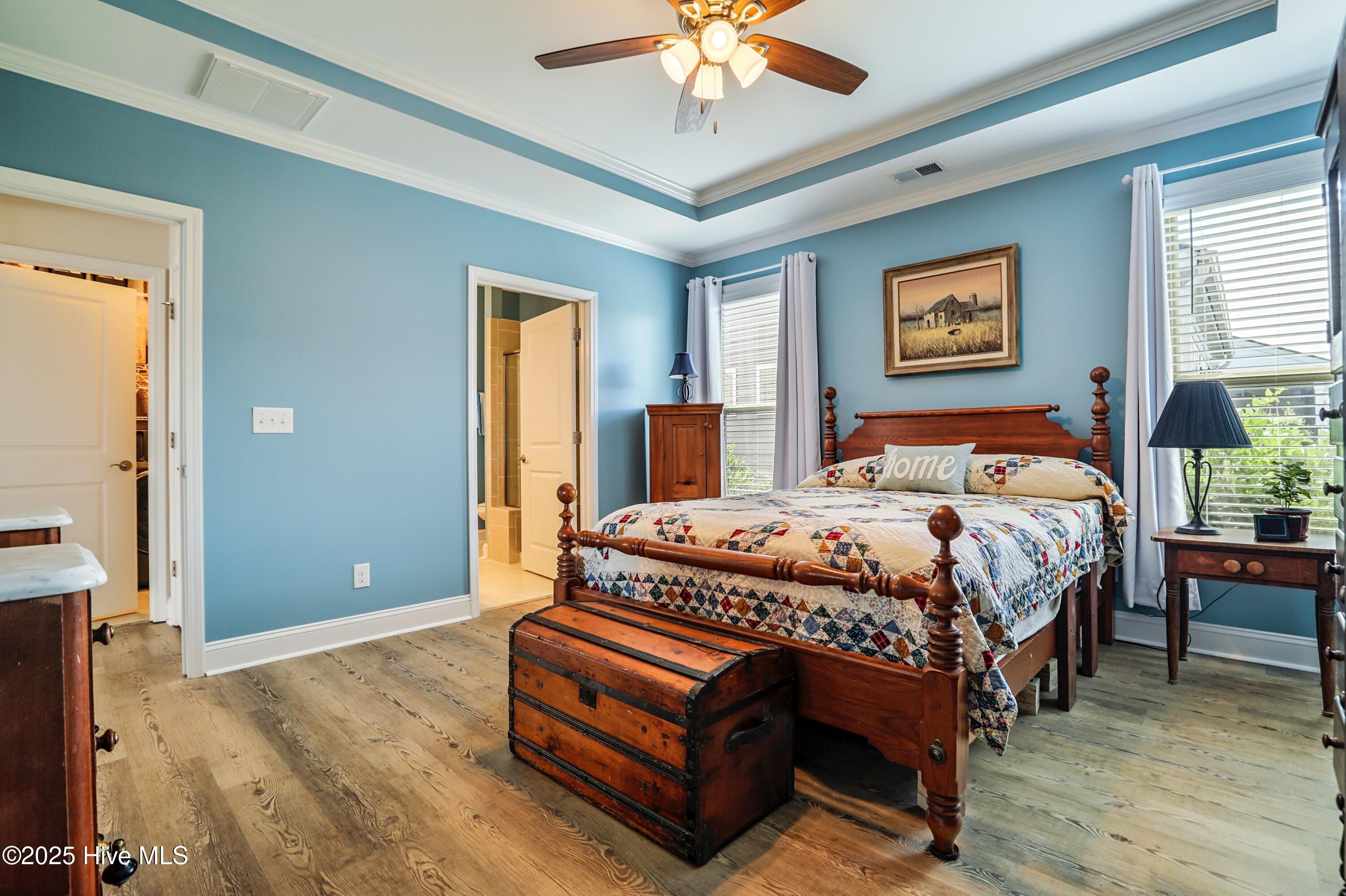 - Walk-In Closet(s), Tray Ceiling(s), Entrance Foyer, Kitchen Island, Ceiling Fan(s), Pantry, Walk-In Shower, Blinds, Kitchen/Dining Combo