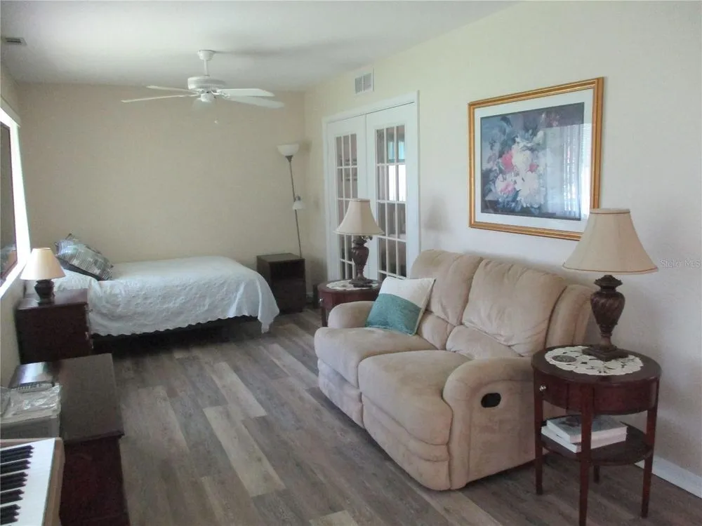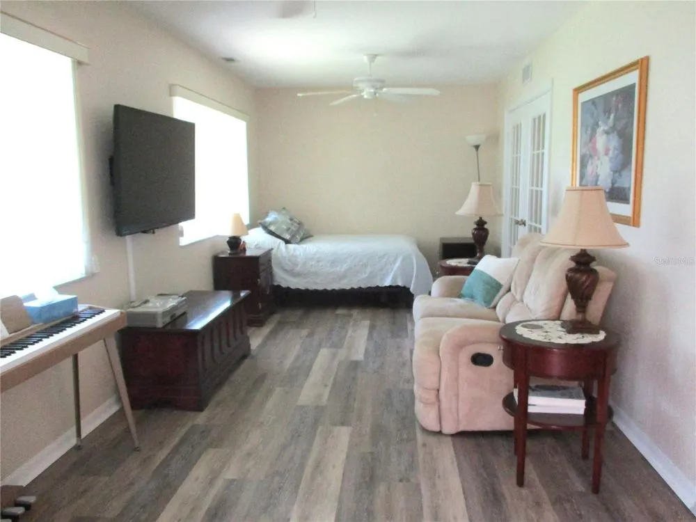CHECK OUT THIS NEW PRICE! LET'S MAKE A DEAL! Popular Fir Model Single-Family Home centrally located in Spruce Creek Preserve, a Dell Webb 55+ Golf Community! This spacious home has 2 bedrooms (split bedroom plan), vaulted ceilings, 2 baths, 2-car garage, inside laundry and more! ROOF 2020, HVAC 2016, Water Heater 2008, NEW Irrigation Controller. Neatly manicured landscape and lawn, with cute front porch. Step into the Great Room with vaulted ceilings and dining room space. Notice the Luxury Vinyl Plank flooring in the great room, dining room, kitchen, and baths! The guest bedroom and hall/guest bath are to the left. Guest/hall bath has a comfort height toilet and tub w/tile surround. The primary bedroom is on the right side of the home with TWO closets (1-walk in, 1 built in), primary en suite bath has a large step-in shower with glass enclosure, comfort height toilet, large vanity, and glass block window for extra light. The eat-in kitchen with the breakfast nook is an entertainer’s dream with SO MUCH STORAGE and counter space! Newer appliances. The laundry room is off the kitchen with washer/dryer and laundry sink. Step out into the large 2-car garage with extra storage. The finished Florida room has two entrances: archway from the Great Room or French Doors from the primary bedroom. Fenced patio area in back perfect for furbabies! This space is perfect for extra guest space! Surrounded by 4,000 acres of Florida State Forest, Spruce Creek Preserve offers a quiet country setting while being minutes from the communities many activities and amenities PLUS golf, groceries, restaurants, gas, banking, shopping, and miles of nature trails for hiking or biking. The monthly HOA fee includes trash pickup, 24/7 monitored gates and all the amenities including a pool, hot tub/spa, fitness center, pickleball, billiards, and more! A golf cart community centrally located 30 minutes from the World Equestrian Center, easy drive to 4 cruise ports and/or airports, and close proximity to entertainment complexes in Orlando! What a great opportunity > home is being sold “TURN KEY”!