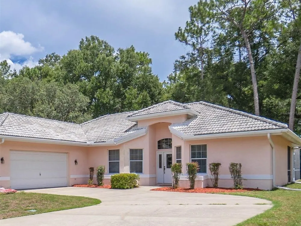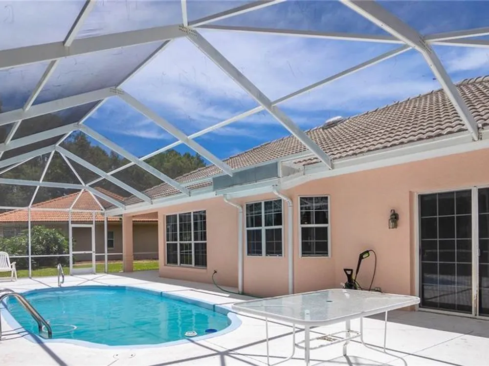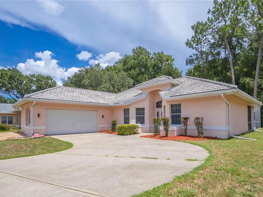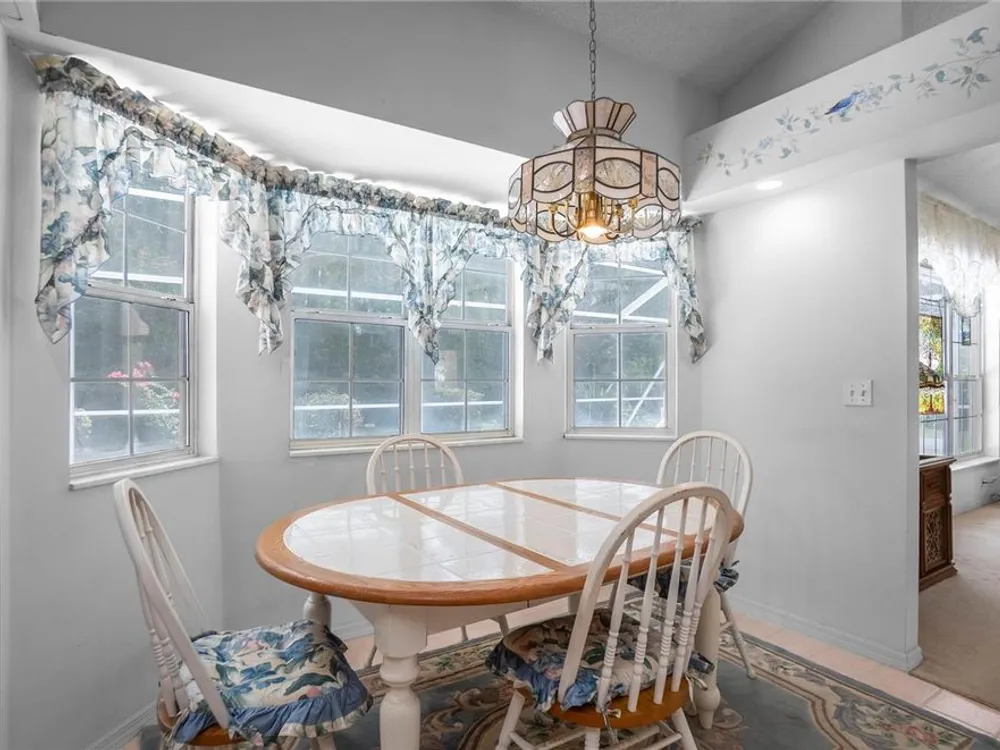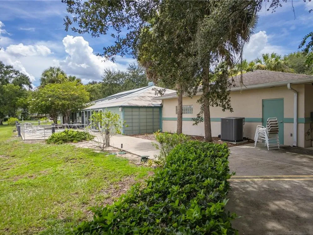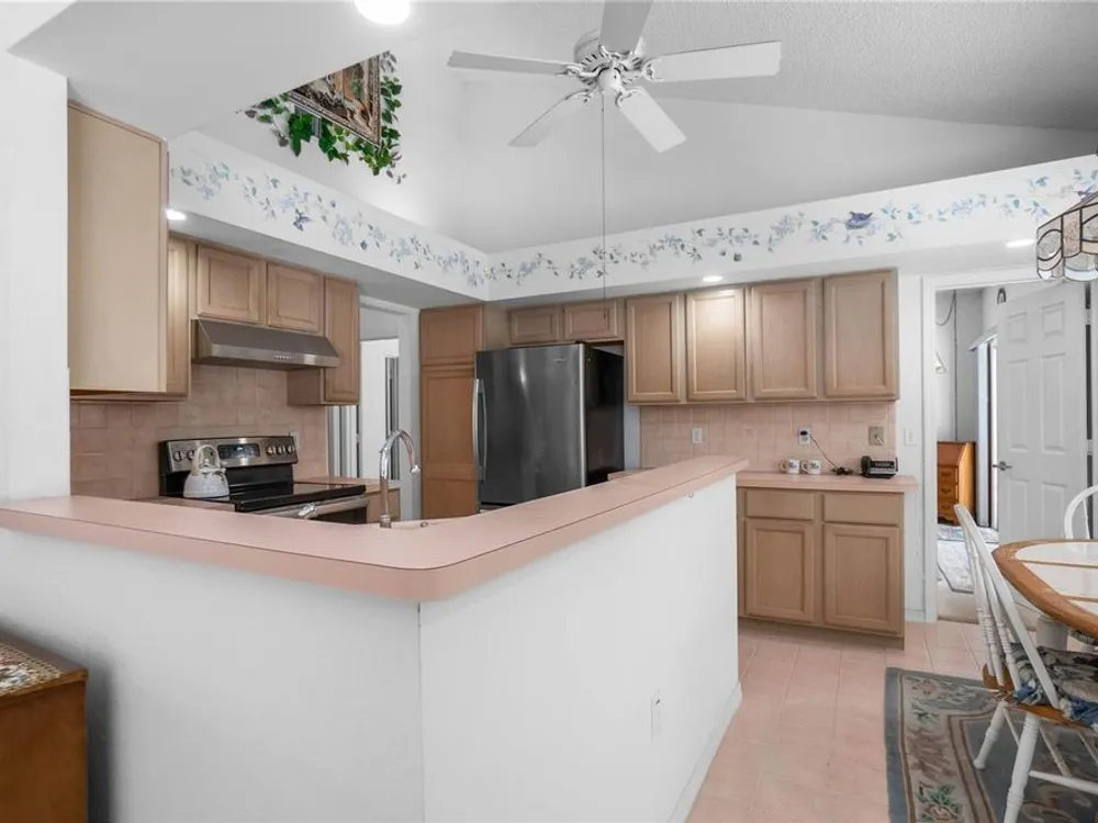This home is the sought-after and hard to find Oak Run model – the Capri Extended – including with side-load garage being offered by the original owner. It is rock solid concrete block and stucco construction. Covered patio, 10’ x 24’ swimming pool with large, screened pool enclosure on 68’ x 16’ concrete deck. Private back yard with natural foliage for quiet and privacy. No homes are behind the house. French doors open to the very large primary bedroom with vaulted ceiling and fan. Attached en-suite bath with dressing table vanity, tub, walk-in shower and block glass. Three large double-pane glass sliding doors opening directly on to the pool. Kitchen has high ceiling, wood cabinetry and updated stainless appliances including electric range with exhaust hood, refrigerator and dishwasher, as well as track lighting and recessed lighting. Adjoining roomy eat-in breakfast nook has bump out windows overlooking the pool. The dining room has bump out windows overlooking the front yard, with light fixture matching that of the foyer. Recessed front door has cathedral and side glass panel, and half-moon upper window -- all with vertical blinds. Tiled foyer with light fixture matching dining area. Roomy living room with vaulted ceiling and fan has three very large windows overlooking the pool. Double French doors open to the second bedroom with large walk-in closet, two front-facing windows and ceiling fan. Second bath has a walk-in tiled shower with seat, private toilet with separate door, vanity with mirror, mirrored medicine cabinet and linen closet with modular shelving, The second bath has extra door opening directly onto the covered patio and pool area. Utility room has closet and opens to plus-size two-car garage. This can easily be converted to the inside laundry room. Garage has automatic double door, washer and dryer, utility sink, electric water heater, electric panel, Toro 9-channel irrigation controller, and internet link-up et al. Oak Run resort style living features six swimming pools including year-round indoor pool with free swim, lane swim and water volleyball – as well as two modern fitness facilities with fitness classes. outdoor and indoor pickle ball, tennis courts, shuffleboard, bocce ball, billiards, card room, ceramics, library, neighborhood cable channel and more than 50 clubs to join. Features Oak Room Bar and Grill restaurant. Royal Oaks Golf course membership available. Modest HOA dues. 55 Plus community. Original tile roof and HVAC updated 2012. Seller offering $16,000 at closing to replace the tile roof with shingle. Estimate and all warranty information available.