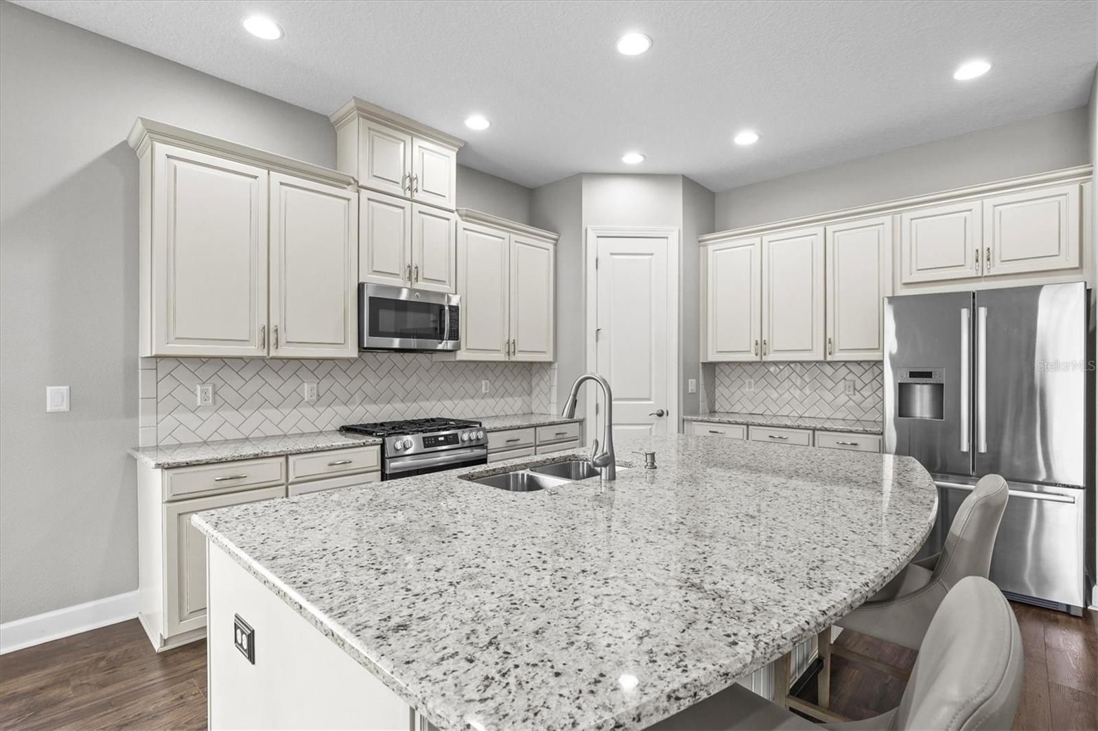 One or more photo(s) has been virtually staged. Welcome to 11477 Bitola Drive in Odessa, located in the gated community of Esplanade at Starkey Ranch. This beautifully designed 3 bedroom, split floor plan home with 2.5 bathrooms offers the perfect blend of privacy, functionality, and modern Florida living. Featuring 10-foot ceilings, luxury vinyl plank flooring throughout, and an open-concept layout, this home is ideal for both everyday living and entertaining. The gourmet kitchen includes a large granite island, herringbone tile backsplash, gas range, Bosch stainless steel French-door refrigerator, and eat-in dining space, all flowing seamlessly into the spacious living area. The private primary suite offers a walk-in shower and custom walk-in closet, while the split-bedroom layout provides separation for guests with a secondary bedroom and full bath. Additional features include plantation shutters, Hunter Douglas shades, a half bath, large laundry room with Maytag appliances, whole-home water softener, and reverse osmosis system and a Tesla charging station in the garage, perfect for electric vehicle owners. Enjoy true indoor-outdoor Florida living with disappearing pocket sliders leading to an expansive 18’ x 26’ screened lanai with panoramic enclosure, remote-controlled fans and lighting, and custom LED ambiance lighting—perfect for entertaining and sunset views. Residents of Esplanade at Starkey Ranch enjoy resort-style amenities including a clubhouse, 24-hour fitness center, resort and lap pools, spa, pickleball, tennis, dog parks, and social activities. The community offers 22 miles of trails and access to over 800 acres of conservation next to J.B. Starkey Wilderness Park. Conveniently located near shopping, dining, Gulf beaches, and Tampa International Airport, this home offers luxury, location, and a maintenance-free lifestyle in one of Odessa’s most sought-after communities.