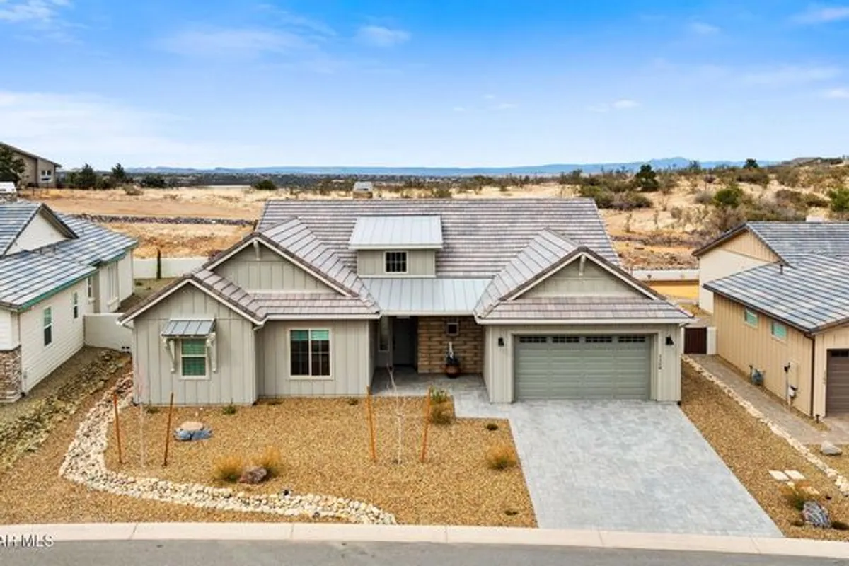 Discover luxury and comfort in Solstice Ridge II at Prescott Lakes, an exclusive gated community offering a private golf course, vibrant rec center, pickleball courts, pools, and a world-class fitness center. This stunning 2,544 sq. ft. home boasts 3 bedrooms, a versatile den/office, and a spacious 3-car tandem garage. Custom upgrades include professional landscaping with breathtaking dells views, Bosch 800 Series appliances, an expanded primary bedroom closet, and elegant floor-to-ceiling kitchen cabinets. Relax by the striking stone fireplace or enjoy the indulgence of a zero-threshold primary shower with quartz bench. Hunter Douglas blinds and honed quartz countertops add the perfect finishing touches to this one-of-a-kind home! Book an appt today before this home is gone.