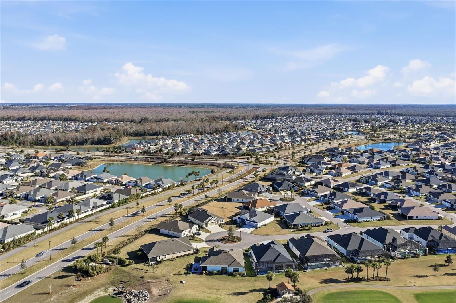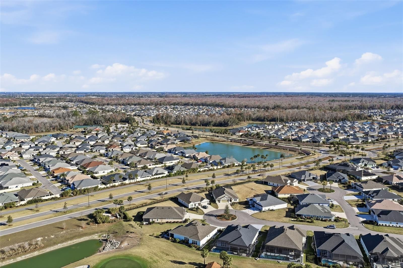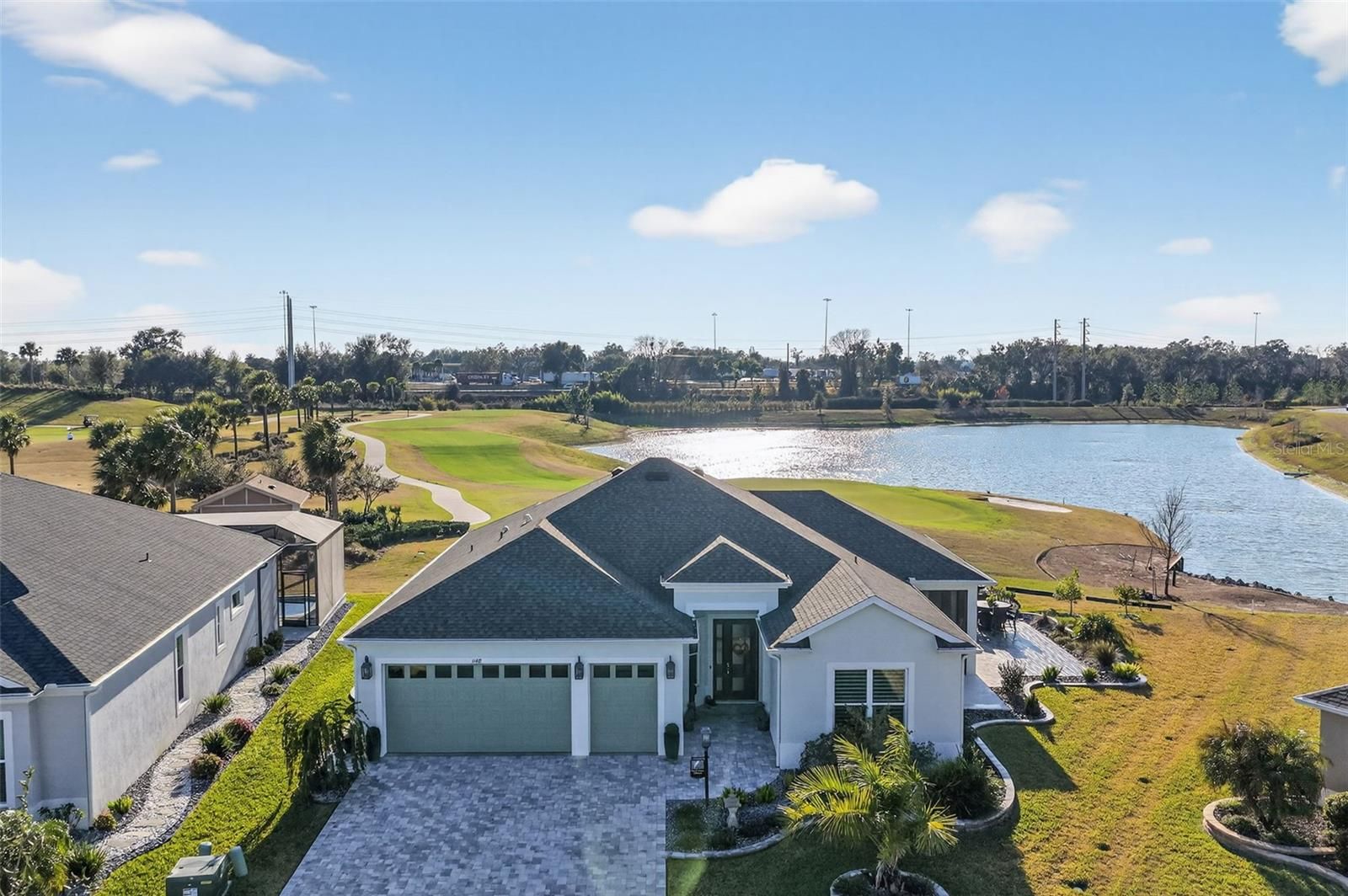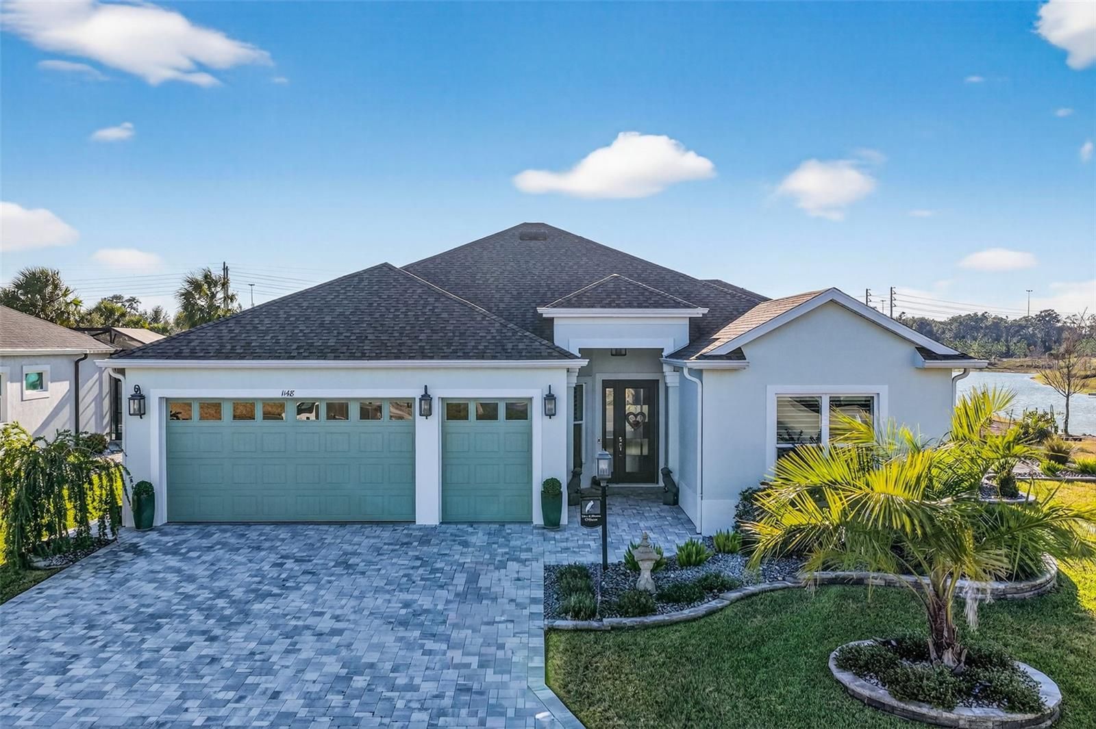 Welcome home! This beautiful 3/2 STRETCHED BEGONIA, former Premier Model Home features 10-foot ceilings, 8-foot elegant doors, and luxurious finishes, is situated in the Village of CASON HAMMOCK on a quiet CUL-DE-SAC. The home is located on the 14th green of Southern Oaks Championship Golf course and has a serene WATER VIEW. Arriving at the property you will notice the vibrant landscaping and charming brick driveway, creating an inviting first impression. As you step through the LEADED GLASS front door into the foyer, discover a breathtaking open floor plan with elegant PORCELAIN TILE FLOORS that flow seamlessly throughout. The kitchen is a chef's dream, featuring upgraded stainless-steel appliances, stunning QUARTZ countertops, a TILE BACKSPLASH, UPGRADED LIGHTING, ample storage, and a cozy eat-in area. The expansive breakfast bar comfortable seats 5, creating an inviting space for guests to enjoy a beverage and engage in conversation. It's also perfect for showcasing a delightful spread during gatherings. The spacious dining room can comfortably accommodate 8-guests, making it perfect for entertaining. The living room offers a relaxing retreat with direct views of the backyard through sliding glass doors that show case the spectacular SOUTHERN OAKS Championship Golf Course and WATER VIEWS. Relax in front of the beautiful BUILT-IN STONE FIREPLACE, perfect for the cool winter evenings. Retreat to the luxurious primary suite, featuring two beautiful walk-in custom closets and an en-suite bath with a ROMAN SHOWER, dual sinks, QUARTS countertops and separate commode. Pamper your guests with spacious accommodations, custom closet and a beautiful walk-in shower. The front bedroom boasts an additional 3-foot expansion for even more comfort. For your convenience, there is an INSIDE LAUNDRY ROOM with upper cabinets and a vanity. This home boasts many upgrades including: 2-foot EXPANSIONS in the guest bedrooms, living area and lanai, CROWN MOLDING throughout, UPGRADED LIGHTING, 6-inch BASEBOARDS, 10-foot CEILINGS, 8-foot DOORS, PLANTATION SHUTTERS and a NEST thermostat. Enjoy a peaceful evening on the expansive screened-in lanai, equipped with TELESCOPING SLIDERS and MOTORIZED BLINDS. The screened in lanai expands onto an open paved patio, perfect for watching the sun set and sitting by the outdoor firepit. The outside concrete pad is perfect for grilling. Additionally, the home includes a 2-car garage and a GOLF CART GARAGE offering plenty of storage. This home is in the perfect location for an active lifestyle as its close to Cason Hammock Rec Center, Hawkins Neighborhood Pool, Aviary Rec Center & Pool, Ezell Regional Rec Center & St. Catherine Neighborhood Pool & Rec Center. Golf enthusiast will enjoy playing the Southern Oaks and Shallow Creek Championship Golf courses, Bellaire Executive Golf course, and Mickylee Pitch and Putt. Minutes from the Market at Sawgrass and Bexley Bridge that will take you over the turn pike to explore the new Eastport Town Square.