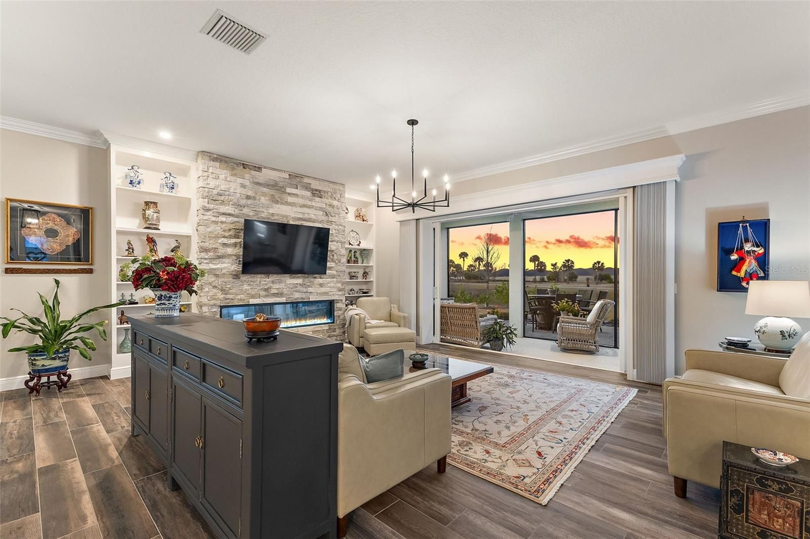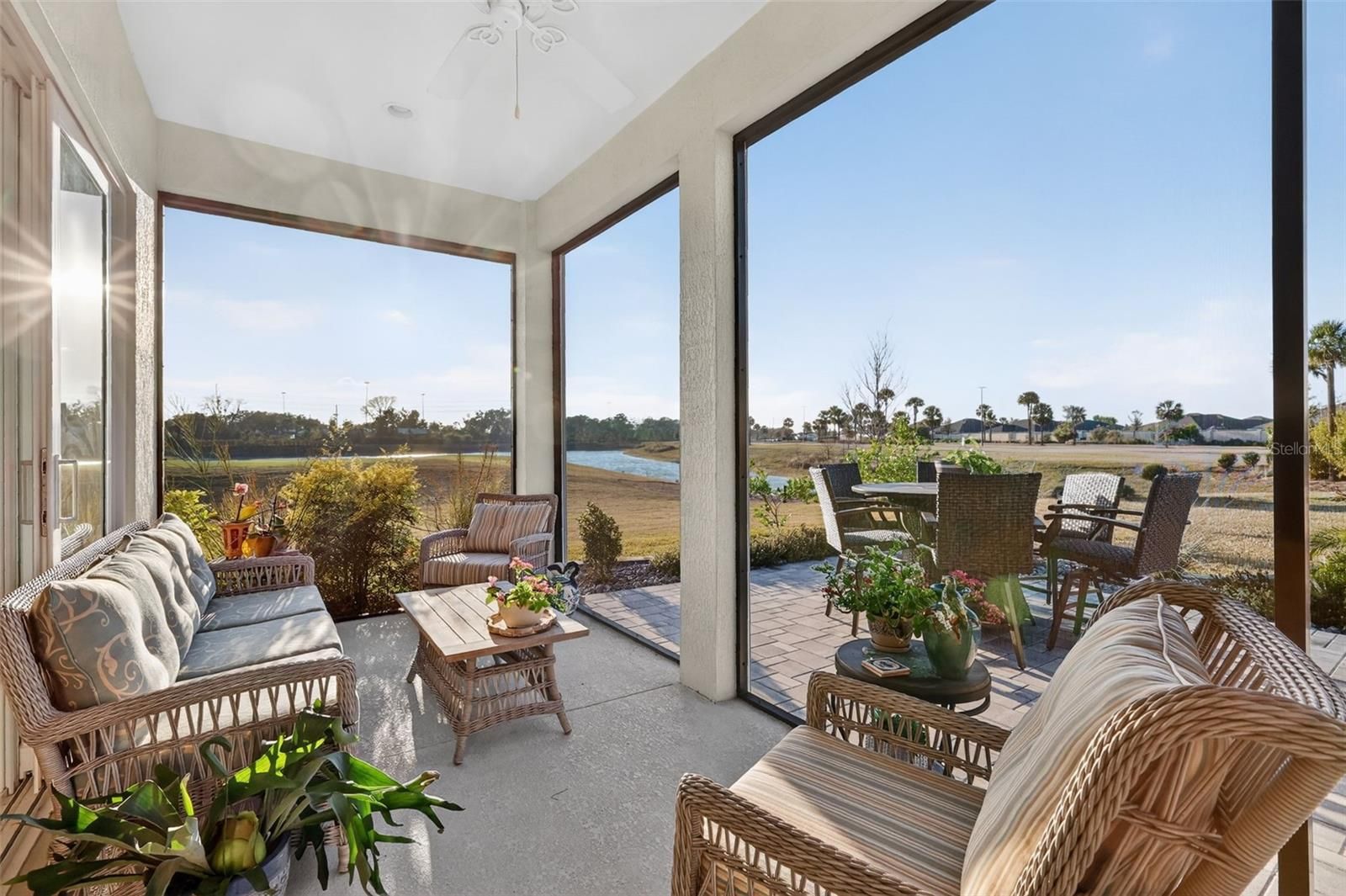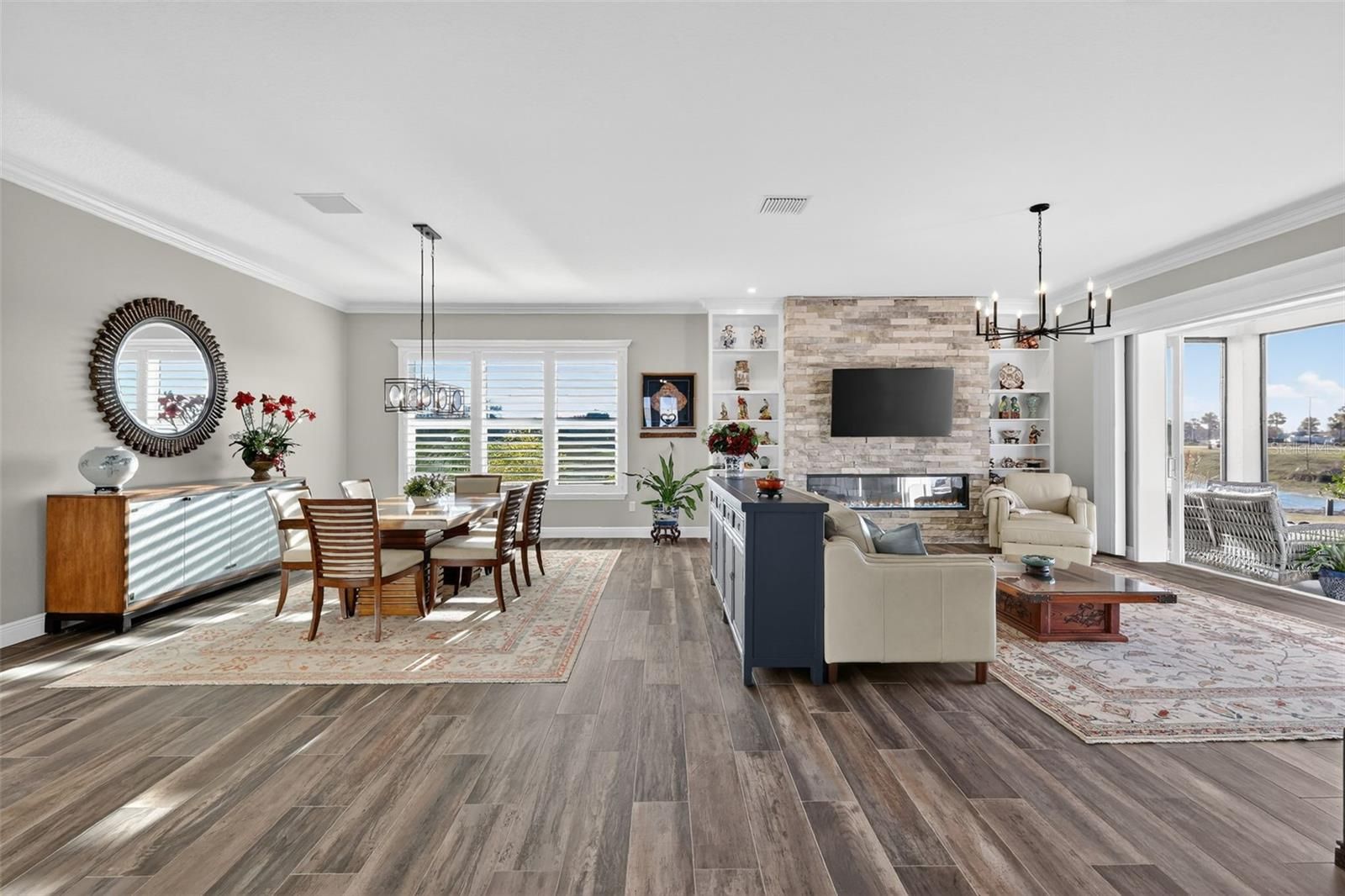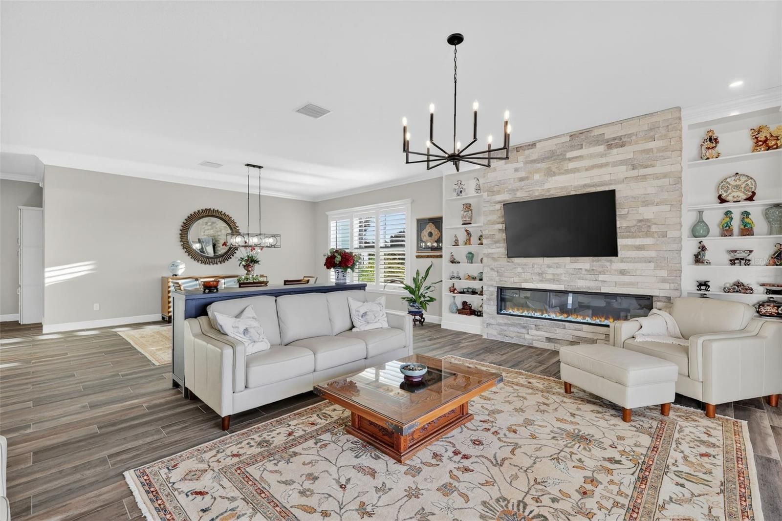 Welcome home! This beautiful 3/2 STRETCHED BEGONIA, former Premier Model Home features 10-foot ceilings, 8-foot elegant doors, and luxurious finishes, is situated in the Village of CASON HAMMOCK on a quiet CUL-DE-SAC. The home is located on the 14th green of Southern Oaks Championship Golf course and has a serene WATER VIEW. Arriving at the property you will notice the vibrant landscaping and charming brick driveway, creating an inviting first impression. As you step through the LEADED GLASS front door into the foyer, discover a breathtaking open floor plan with elegant PORCELAIN TILE FLOORS that flow seamlessly throughout. The kitchen is a chef's dream, featuring upgraded stainless-steel appliances, stunning QUARTZ countertops, a TILE BACKSPLASH, UPGRADED LIGHTING, ample storage, and a cozy eat-in area. The expansive breakfast bar comfortable seats 5, creating an inviting space for guests to enjoy a beverage and engage in conversation. It's also perfect for showcasing a delightful spread during gatherings. The spacious dining room can comfortably accommodate 8-guests, making it perfect for entertaining. The living room offers a relaxing retreat with direct views of the backyard through sliding glass doors that show case the spectacular SOUTHERN OAKS Championship Golf Course and WATER VIEWS. Relax in front of the beautiful BUILT-IN STONE FIREPLACE, perfect for the cool winter evenings. Retreat to the luxurious primary suite, featuring two beautiful walk-in custom closets and an en-suite bath with a ROMAN SHOWER, dual sinks, QUARTS countertops and separate commode. Pamper your guests with spacious accommodations, custom closet and a beautiful walk-in shower. The front bedroom boasts an additional 3-foot expansion for even more comfort. For your convenience, there is an INSIDE LAUNDRY ROOM with upper cabinets and a vanity. This home boasts many upgrades including: 2-foot EXPANSIONS in the guest bedrooms, living area and lanai, CROWN MOLDING throughout, UPGRADED LIGHTING, 6-inch BASEBOARDS, 10-foot CEILINGS, 8-foot DOORS, PLANTATION SHUTTERS and a NEST thermostat. Enjoy a peaceful evening on the expansive screened-in lanai, equipped with TELESCOPING SLIDERS and MOTORIZED BLINDS. The screened in lanai expands onto an open paved patio, perfect for watching the sun set and sitting by the outdoor firepit. The outside concrete pad is perfect for grilling. Additionally, the home includes a 2-car garage and a GOLF CART GARAGE offering plenty of storage. This home is in the perfect location for an active lifestyle as its close to Cason Hammock Rec Center, Hawkins Neighborhood Pool, Aviary Rec Center & Pool, Ezell Regional Rec Center & St. Catherine Neighborhood Pool & Rec Center. Golf enthusiast will enjoy playing the Southern Oaks and Shallow Creek Championship Golf courses, Bellaire Executive Golf course, and Mickylee Pitch and Putt. Minutes from the Market at Sawgrass and Bexley Bridge that will take you over the turn pike to explore the new Eastport Town Square.