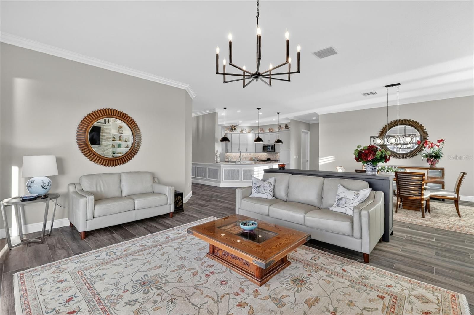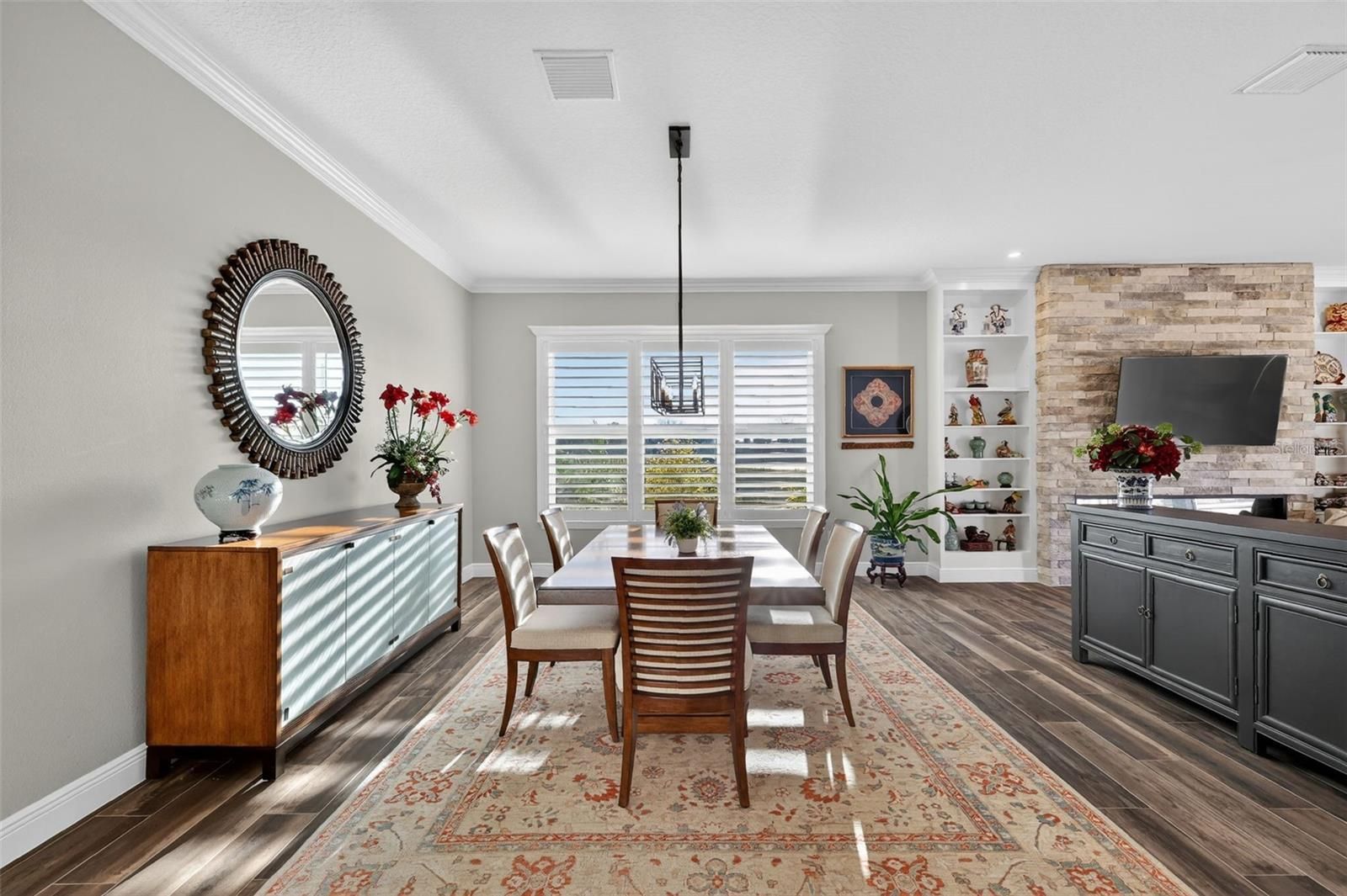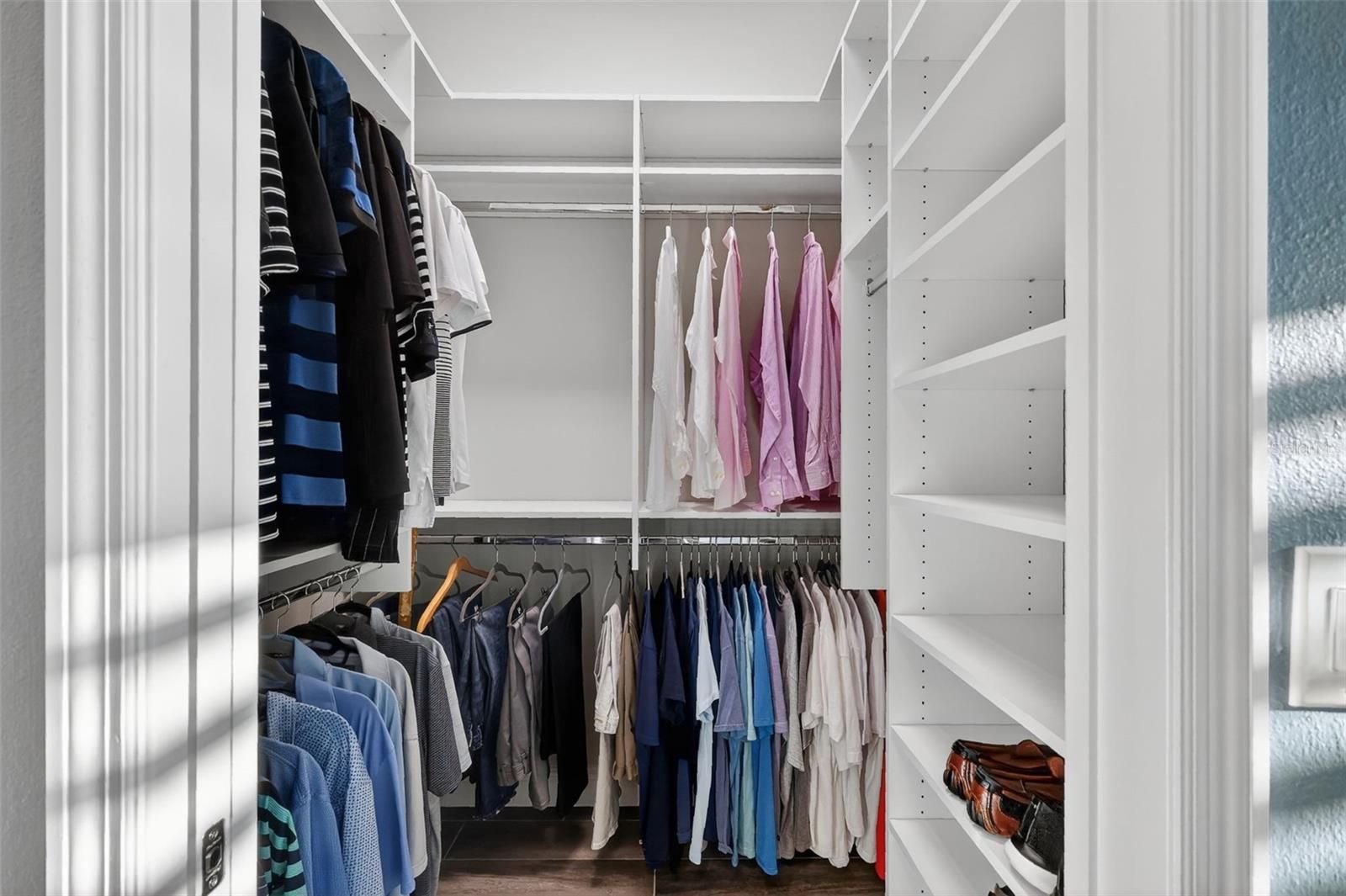 - Built-in Features, Ceiling Fan(s), Coffered Ceiling(s), Crown Molding, Eat-in Kitchen, High Ceilings, Living/Dining Room, Open Floorplan, Main Level Primary, Solid-Wood Cabinets, Split Bedrooms, Stone Counters, Thermostat, Tray Ceiling(s), Vaulted Ceiling(s), Walk-In Closet(s)