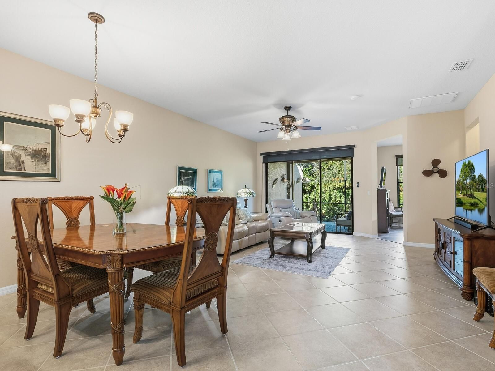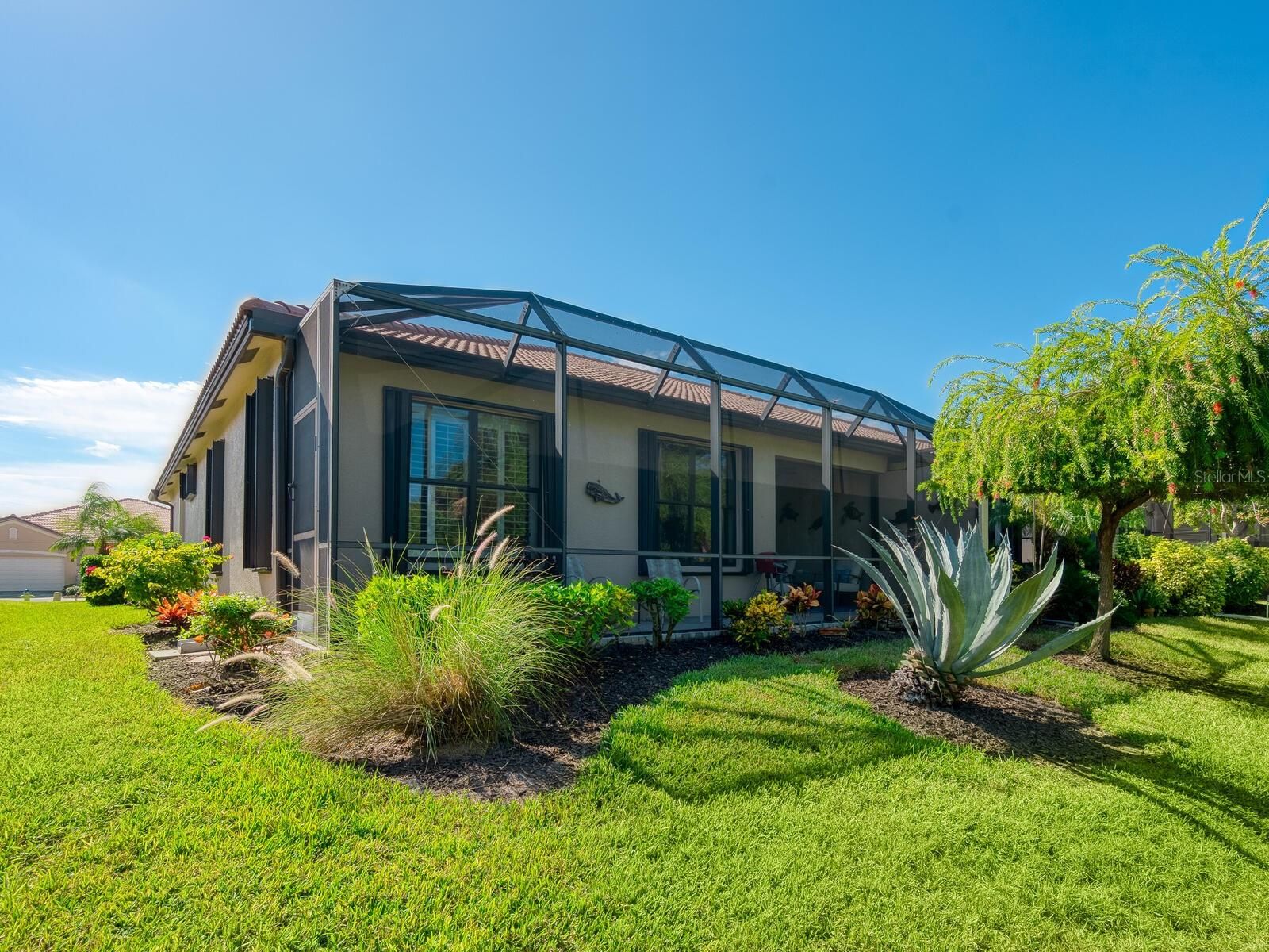 Enjoy resort-style living at Venetian Falls in this highly desired Botticelli paired-villa! Located in an active, gated, 55+ community, this home with 2 bedrooms, plus a den, has great curb appeal and offers a wonderful floor plan with breakfast nook near the kitchen, guest bedroom and bathroom near the front entry for additional privacy, and spacious primary suite with preserve views. The kitchen has beautiful granite countertops and dining bar, solid-wood cabinets with trim and trash pull-out, plus a pantry. You will have peace of mind with whole house storm protection, including easy-to-use accordion storm shutters and a remote-control shutter for the lanai. Relax, grill, and dine outdoors on the screened outdoor living area with view of the preserve. Further features include a covered sitting area by the front entry, plantation shutters, ceramic tile floors on-the-diagonal in the main living areas, and an oversized 2-car garage with epoxy floor finish - adding a clean look and ease of maintenance. Venetian Falls offers resort-style amenities including a clubhouse with full-time activity director, heated lap pool, heated resistance pool, fitness center, billiards, bocce, on-site management, and so much more! The HOA fee covers lawn care and front shrub trimming, irrigation, roof cleaning, exterior paint, internet, and basic cable. Don't miss out on this beautiful, worry-free home in a gated community just minutes from Venice beaches, dining, and shopping!