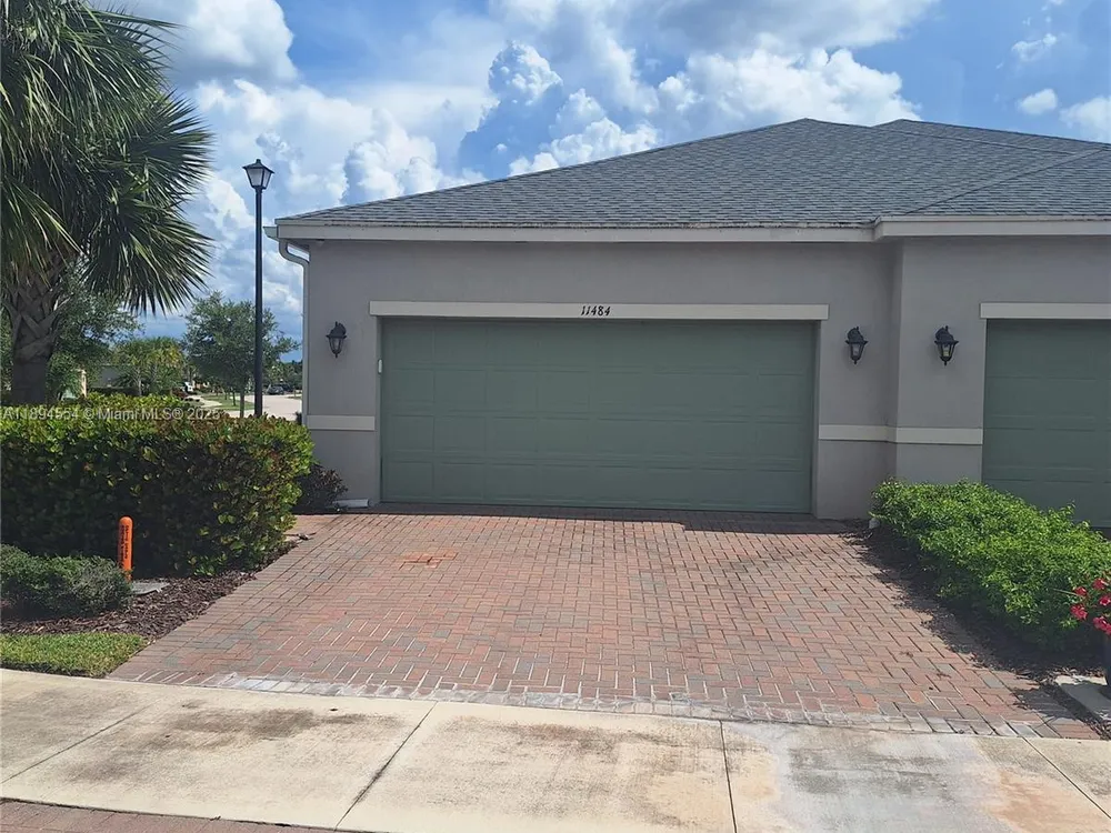 Get ready to own this elegantly kept 2 bedroom, 2 bath villa with 2 car garage situated on a corner lot. As you enter the front door, you'd be amazed by the crown moulding ceilings that lead into a well thought out layout. This house has an open concept kitchen that is joined to the dining room with a view leading straight on to the living room. Kitchen features include granite countertops, wood cabinets, and stainless steel appliances. The master bedroom features a good utilization of space that sweeps the bathroom that has dual sinks and a shower. The enclosed screened lanai makes a perfect place to enjoy the Florida weather. Lake park is a premier community in Tradition and features an outdoor pavilion, private pool, fitness center, and a doggie park for pet lovers.