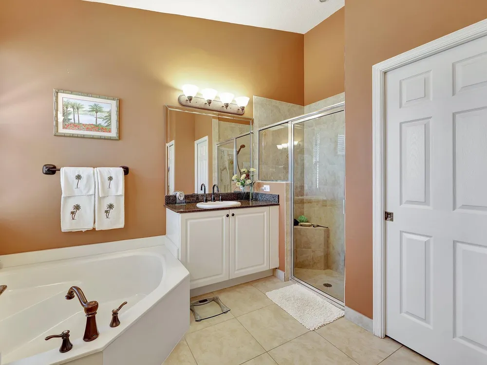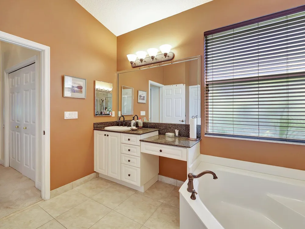 - Cathedral Ceiling(s), Custom Mirrors, Pantry, Garden Tub/Roman Tub, Split Bedrooms, Walk-In Closet(s), Attic, Home Office, Living/Dining Room, Eat-in Kitchen, Snack Bar, Bay Window, Blinds, Impact Glass, Sliding Window(s), Dual Sinks, Primary Downstairs, Separate Shower, Bathtub