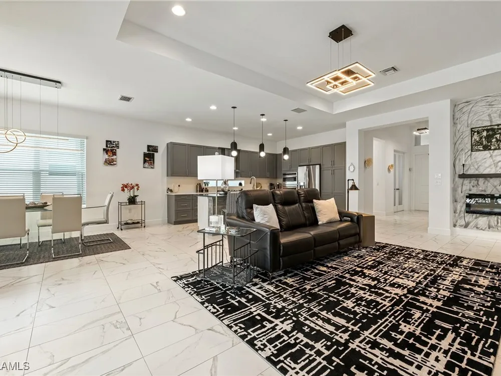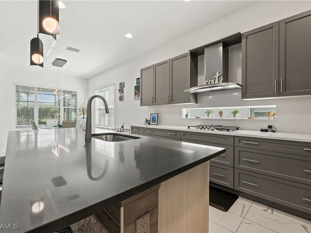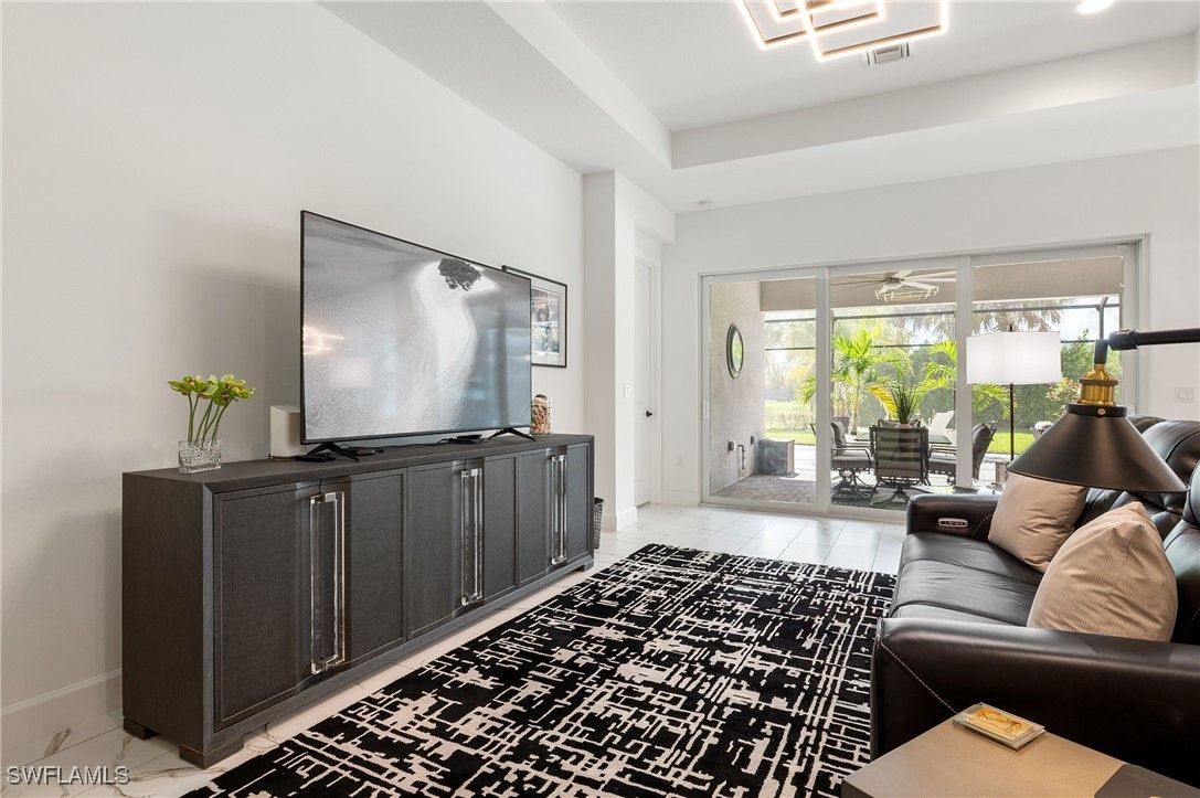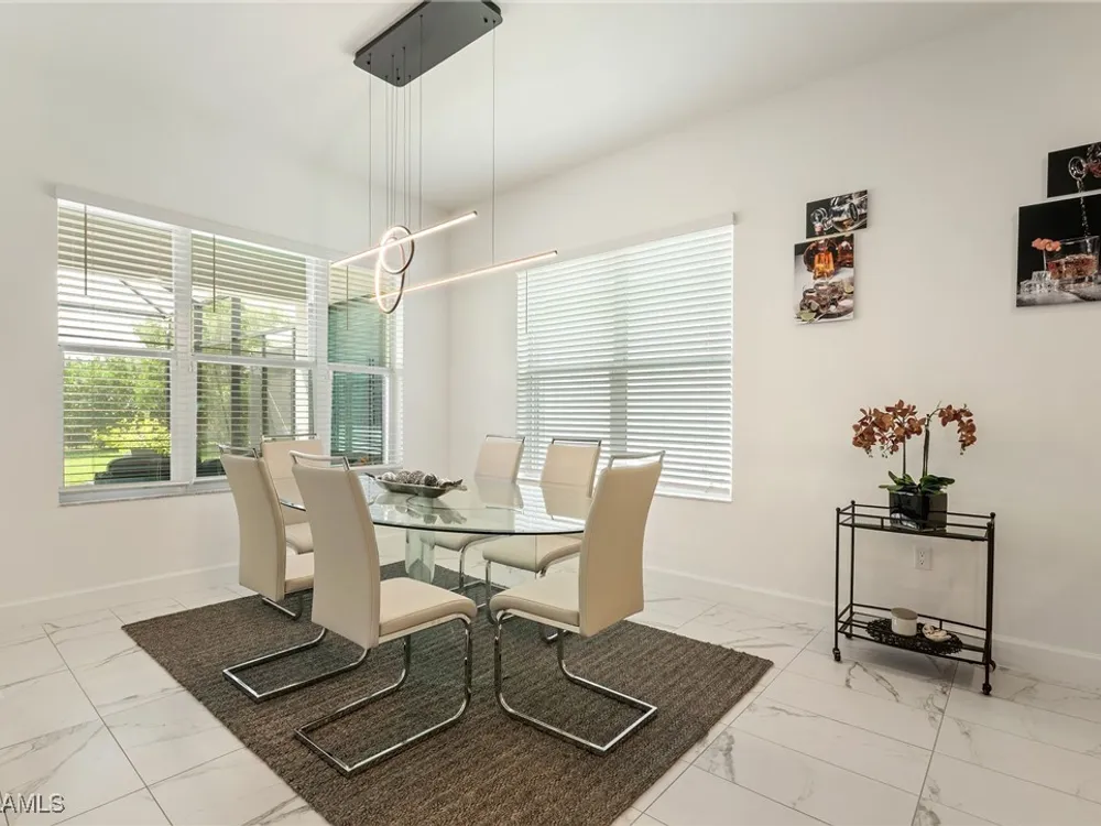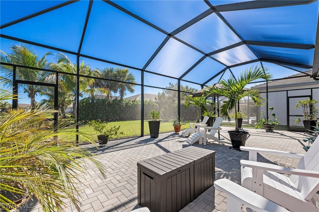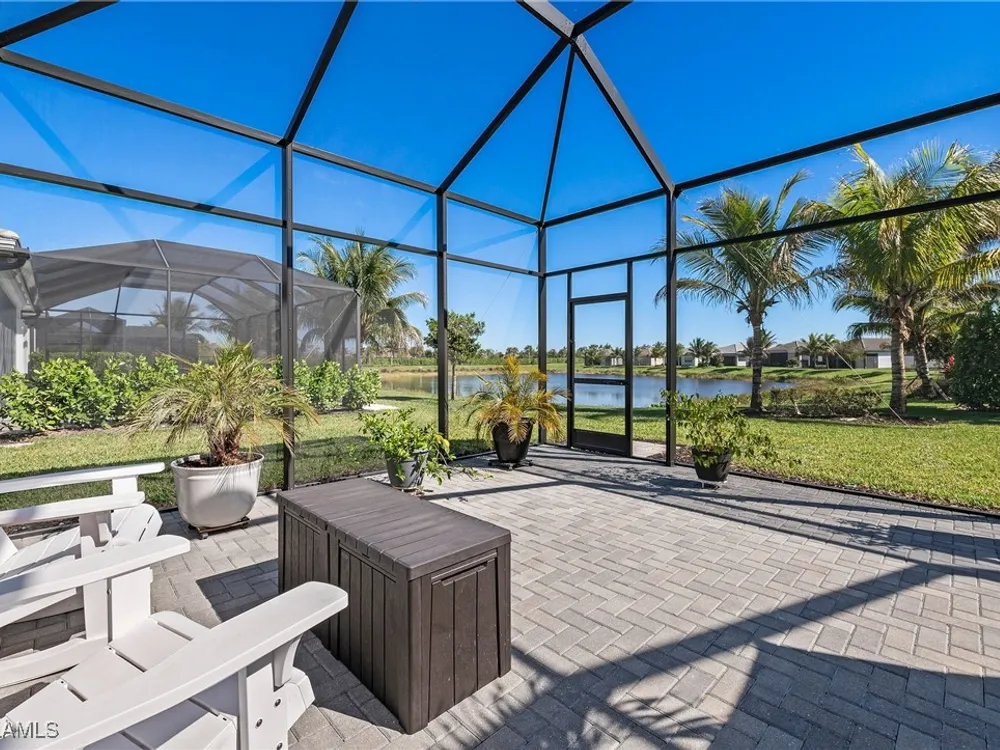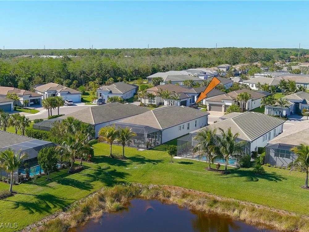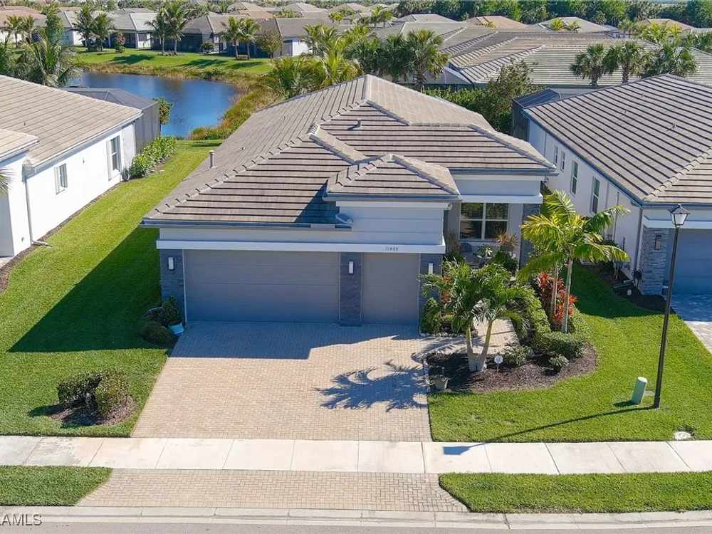 Welcome to your breathtaking TURNKEY oasis nestled in the highly coveted Valencia Trails community, where luxury meets leisure in a fabulous resort-like lifestyle! This MAGNIFECENT Nautilus floorplan with a stunning lakeview, is a rare gem that combines elegance, comfort, and modern design. Spectacular highly coveted Southern Exposure will allow you to enjoy enchanting sunsets right from your lanai, creating a picturesque backdrop for your evening gatherings and morning coffee. Plenty of room for your dream pool and spa in the Extended Lanai, electric panel is already upgraded to 300-amp panel as well. Gorgeous very lightly lived in home (shows like brand new) with LOTS OF UPGRADES features high end furniture, 3 bedrooms + a den, 2 1/2 bathrooms, 2-car plus a golf cart AIRCONDITIONED (2.0 ton mini split A/C with remote control) garage. Stunning designer chandeliers & light fixtures will impress even the pickiest buyers. Tile floor throughout (no carpet). Electric fireplace with remote control and heat function in the Living Room. Gourmet Kitchen with large island, upgraded soft-close cabinets and drawers, quartz countertops and backsplash, upgraded pantry with pull-outs, Transom Window above cooktop, high-end stainless-steel appliances with a brand-new Bosch dishwasher and GE Profile GAS cooktop. Master suite features spacious his & her closets & a master bath with dual sinks, a luxurious Rain Shower double head shower, makeup counter and ample cabinet. Laundry room with multi-cycle heavy duty washer & dryer, extra cabinets, and a sink. 75-gallon water heater. UV sanitizer in HVAC unit. Garage has Racetrack Flooring and blow in ceiling insulation. Brick pavers on driveway, entry walkway and lanai. Large covered & uncovered EXTENDED lanai with a beautiful lake view, is perfect for luxury outdoor living. Lanai is ready for outdoor kitchen, the gas line is readily available. This vibrant 55+ community offers a wealth of exceptional amenities to enhance your lifestyle. Engage in friendly competition on the tennis or pickleball courts, challenge friends to a game of billiards, or break a sweat in the state-of-the-art fitness center. The brand-new 43,000-square-foot Clubhouse features luxurious amenities, including: a massage and nail salon, resort-style pool, lap pool, resistance pool and spa with beach entry and shaded cabanas, a delightful restaurant and poolside bar, card rooms and a cozy fire pit for evening gatherings. For the creative souls, the Arts & Crafts studio is equipped with a kiln and a cooking studio for culinary enthusiasts. Your furry friends will love the two dog parks, and nature lovers can explore the lush tropical landscaping, 160 acres of pristine preserve, and over 3 miles of scenic walking trails. Don’t miss your opportunity to own this exquisite home in Valencia Trails. Schedule your private showing today and step into the life you’ve always dreamed of! Your new beginning starts here!