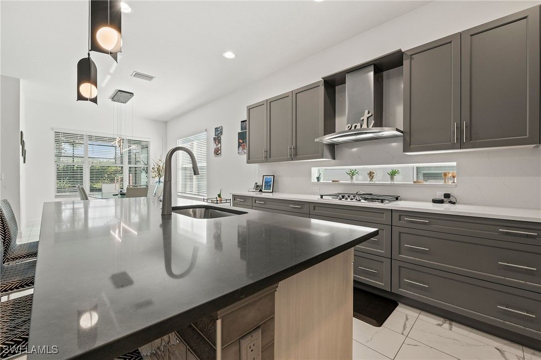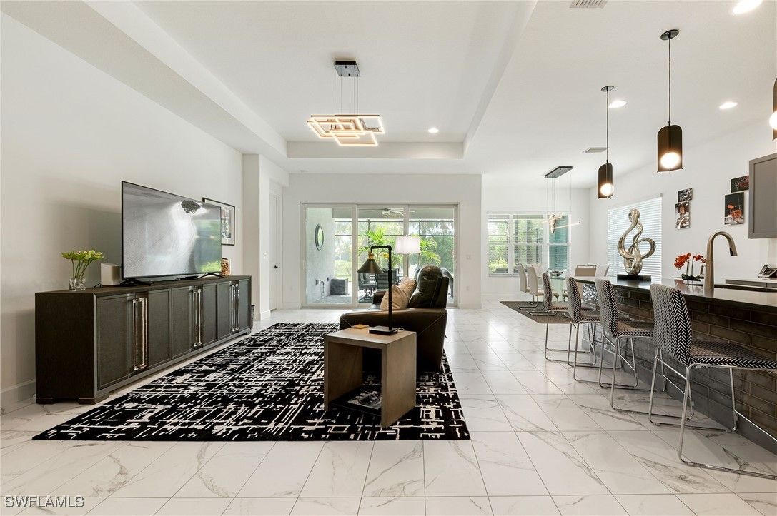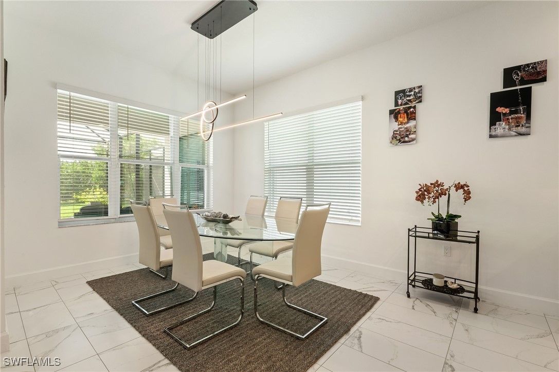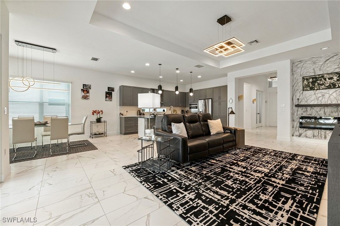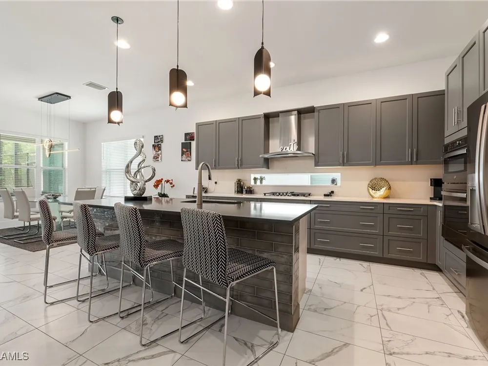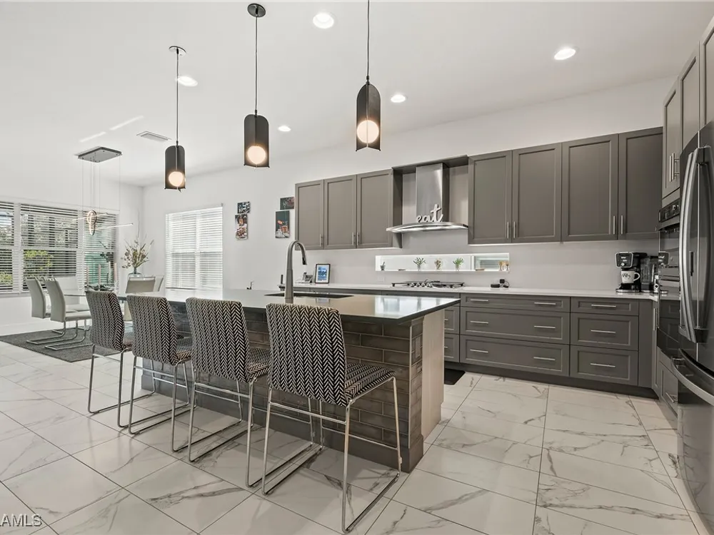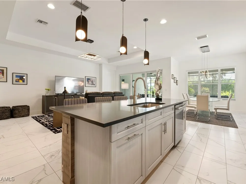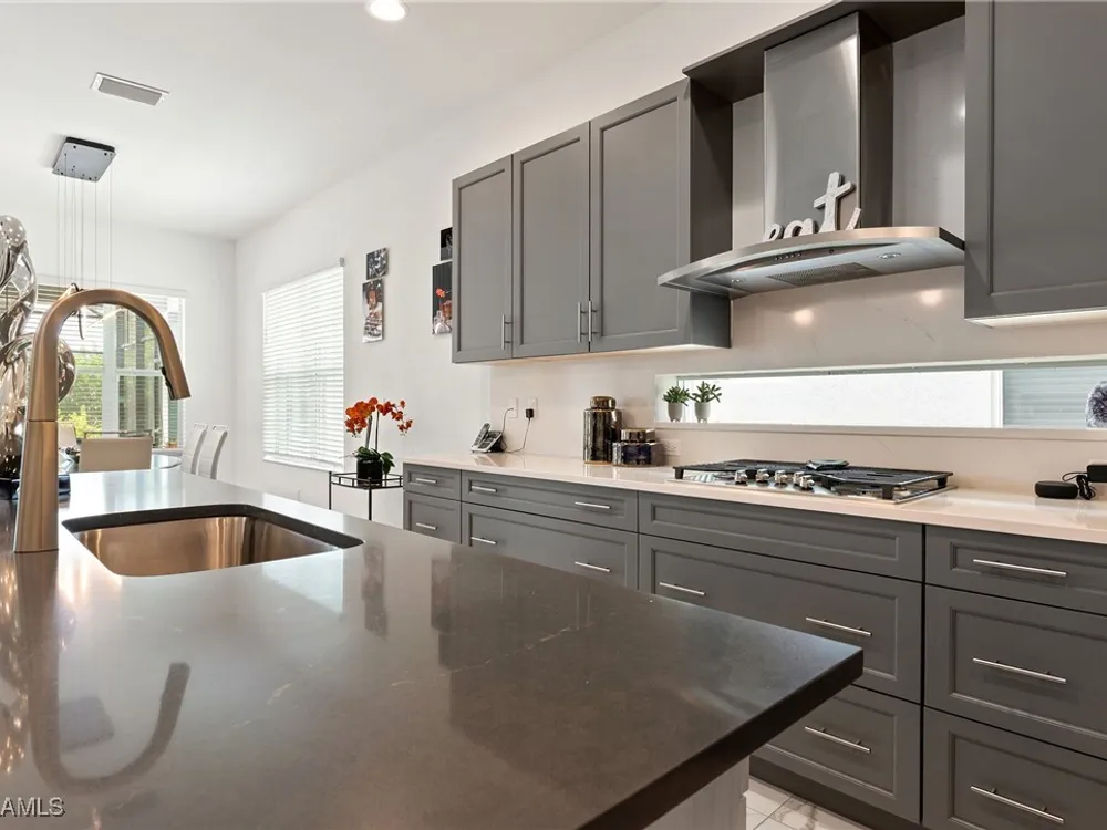 Welcome to your breathtaking TURNKEY oasis nestled in the highly coveted Valencia Trails community, where luxury meets leisure in a fabulous resort-like lifestyle! This MAGNIFECENT Nautilus floorplan with a stunning lakeview, is a rare gem that combines elegance, comfort, and modern design. Spectacular highly coveted Southern Exposure will allow you to enjoy enchanting sunsets right from your lanai, creating a picturesque backdrop for your evening gatherings and morning coffee. Plenty of room for your dream pool and spa in the Extended Lanai, electric panel is already upgraded to 300-amp panel as well. Gorgeous very lightly lived in home (shows like brand new) with LOTS OF UPGRADES features high end furniture, 3 bedrooms + a den, 2 1/2 bathrooms, 2-car plus a golf cart AIRCONDITIONED (2.0 ton mini split A/C with remote control) garage. Stunning designer chandeliers & light fixtures will impress even the pickiest buyers. Tile floor throughout (no carpet). Electric fireplace with remote control and heat function in the Living Room. Gourmet Kitchen with large island, upgraded soft-close cabinets and drawers, quartz countertops and backsplash, upgraded pantry with pull-outs, Transom Window above cooktop, high-end stainless-steel appliances with a brand-new Bosch dishwasher and GE Profile GAS cooktop. Master suite features spacious his & her closets & a master bath with dual sinks, a luxurious Rain Shower double head shower, makeup counter and ample cabinet. Laundry room with multi-cycle heavy duty washer & dryer, extra cabinets, and a sink. 75-gallon water heater. UV sanitizer in HVAC unit. Garage has Racetrack Flooring and blow in ceiling insulation. Brick pavers on driveway, entry walkway and lanai. Large covered & uncovered EXTENDED lanai with a beautiful lake view, is perfect for luxury outdoor living. Lanai is ready for outdoor kitchen, the gas line is readily available. This vibrant 55+ community offers a wealth of exceptional amenities to enhance your lifestyle. Engage in friendly competition on the tennis or pickleball courts, challenge friends to a game of billiards, or break a sweat in the state-of-the-art fitness center. The brand-new 43,000-square-foot Clubhouse features luxurious amenities, including: a massage and nail salon, resort-style pool, lap pool, resistance pool and spa with beach entry and shaded cabanas, a delightful restaurant and poolside bar, card rooms and a cozy fire pit for evening gatherings. For the creative souls, the Arts & Crafts studio is equipped with a kiln and a cooking studio for culinary enthusiasts. Your furry friends will love the two dog parks, and nature lovers can explore the lush tropical landscaping, 160 acres of pristine preserve, and over 3 miles of scenic walking trails. Don’t miss your opportunity to own this exquisite home in Valencia Trails. Schedule your private showing today and step into the life you’ve always dreamed of! Your new beginning starts here!