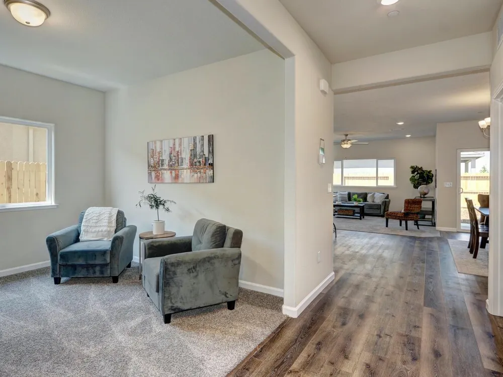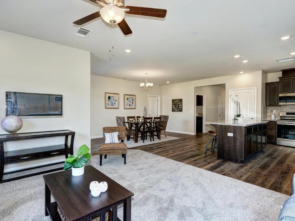 Dry Creek Oaks: *Premier Gated Active Adult Community Featuring All Single-Story Homes* The IRIS floor plan (1,780 sq ft) offers two suites and a spacious covered patio accessible from both the great room and the owner's suite. Each home includes upscale finishes such as granite countertops, stainless steel appliances, luxury vinyl plank flooring, and energy-efficient features. Located just a short drive from Sacramento, residents enjoy access to a 4,500-square-foot clubhouse with a swimming pool, pickleball courts, bocce ball, a putting green, horseshoes, a walking trail, and a nearby golf course.