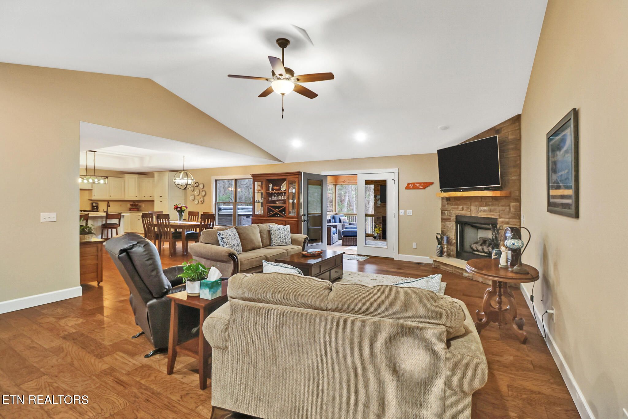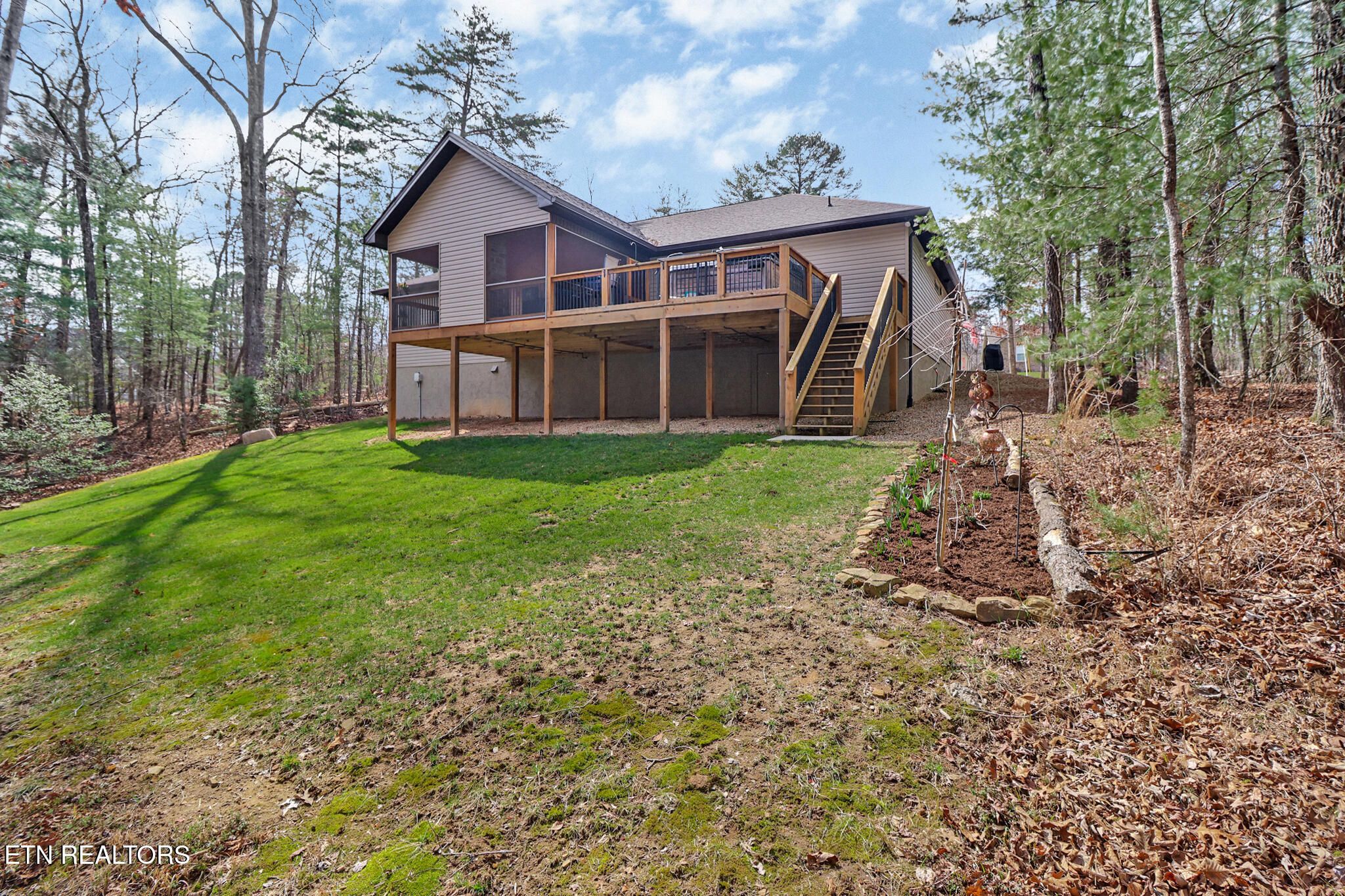 Welcome to this beautifully built 3-bedroom, 2.5-bath home completed in 2021, offering modern comfort and scenic surroundings in the highly sought-after Fairfield Glade community. Perfectly positioned with golf course views and neighboring vacant lots available for purchase, this property offers both privacy and the opportunity to expand your space. Inside, the thoughtfully designed layout features a welcoming entryway that opens into a bright living area and a kitchen that flows seamlessly into the dining space--ideal for everyday living and entertaining. The kitchen also includes a spacious walk-in pantry, providing excellent storage and convenience. Step outside to one of the home's most impressive features: a stunning screened-in porch complete with a cozy fireplace, creating the perfect space to relax year-round while enjoying peaceful views of the golf course. Just beyond, a hot tub offers the perfect place to unwind after a long day. With its modern construction, beautiful outdoor living spaces, and prime location within Fairfield Glade's golf and recreation community, this home offers the perfect blend of comfort, privacy, and lifestyle.