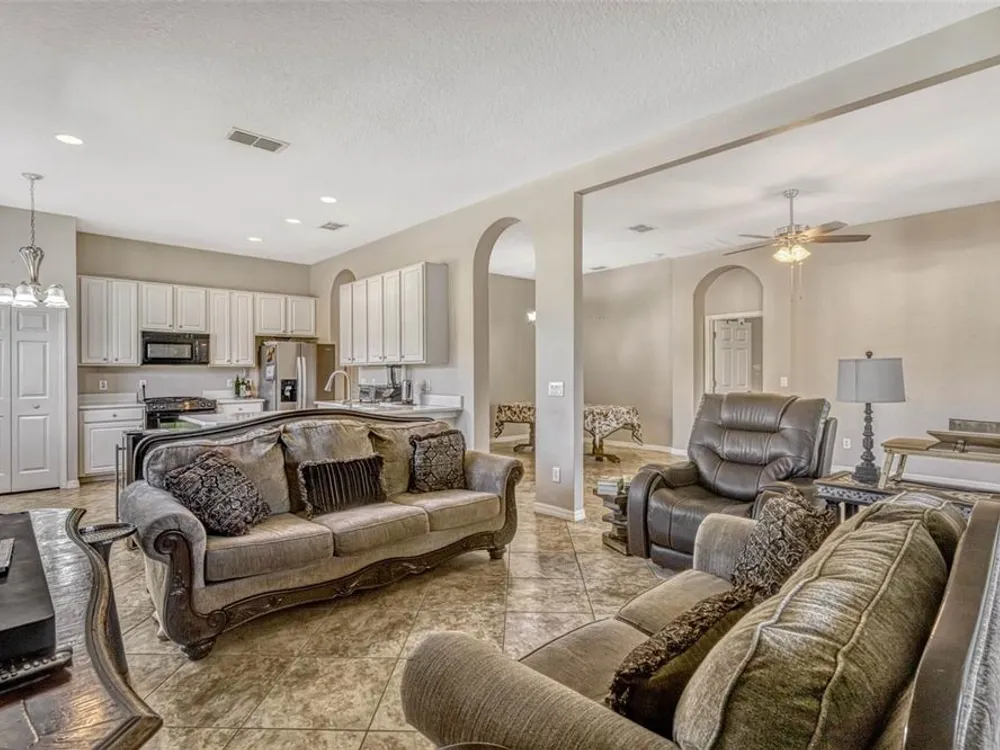 Welcome to this beautifully designed home located in the highly sought-after 55+ community of The Cascades of Groveland! Featuring a thoughtfully planned split floor plan, this residence boasts soaring ceilings and an open layout that floods the home with natural light. At the heart of the home is the spacious kitchen, complete with generous counter space, a cozy breakfast nook, and views of both the living room and the oversized covered patio—perfect for indoor-outdoor living. The primary suite offers dual walk-in closets, a Jacuzzi tub, dual vanities, and an expansive step-in shower. Living in The Cascades means enjoying resort-style amenities right at your fingertips, including a clubhouse, on-site restaurant, golf, tennis, pool, spa, poker and billiards rooms, live entertainment like comedy nights and concerts, organized field trips, and so much more! Don’t miss your chance to be part of this vibrant community—schedule your private tour today before it’s gone!