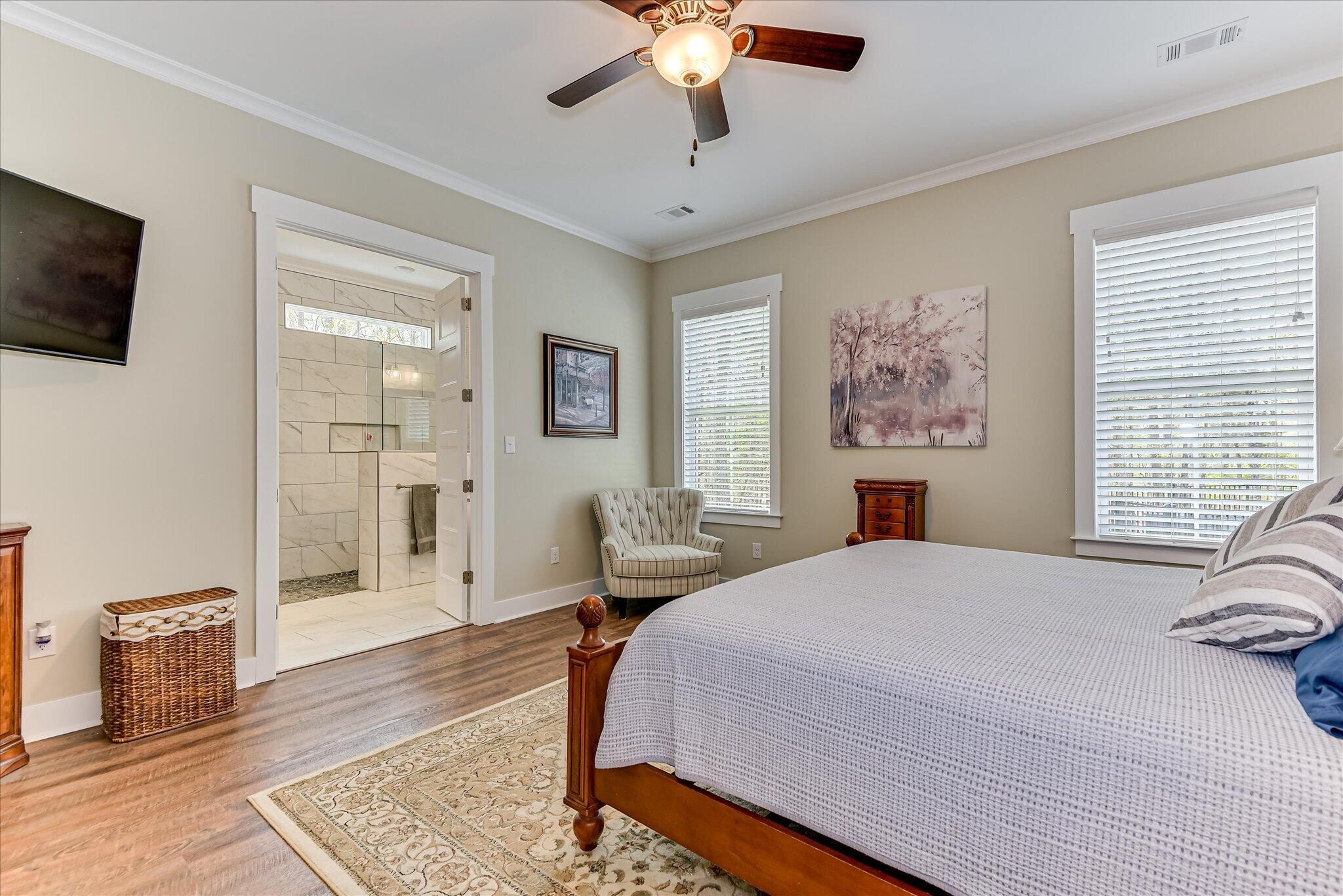 Custom Modern Farmhouse There's something special about a home that feels both polished and perfectly at ease -- and this custom lakefront residence in Savannah Lakes Village delivers exactly that. Just 3.5 years old, it was thoughtfully designed from the ground up with 10' ceilings, tall solid- core doors, and a soaring 18' cathedral ceiling in the living room that sets the tone the moment you walk in. The open living area flows naturally into a chef-inspired kitchen appointed with custom ceiling-height cabinetry and a walk-in pantry -- a space equally suited to quiet mornings and lively gatherings. The private primary suite on the main level features dual vanities, a spacious walk-in closet, tiled floors, and a generous Roman shower. There are also two guest rooms with a thoughtfully arranged Jack-and-Jill bath, and a fourth room over the garage with full bath, storage, and walk-in attic access offers the kind of flex space every household finds a use for. Luxury Vinyl flooring throughout, propane gas fireplace in the family room, beautiful landscaping, are just a few features this home offers. Step outside and you'll find a private saltwater pool, complete with heater and chiller, and your gentle lake views waiting, a cozy screened patio and grill area, the perfect backdrop for the relaxed, gracious lifestyle that makes Savannah Lakes Village so hard to leave. Home has two - 200-Amp panel boxes for a total of 400-Amps, plus a 50-Amp electric vehicle plug installed in the garage and generator-ready home with both 30-AMP and 50- AMP hookups, oƯering flexible backup power options. Attic and exterior walls feature foam insulation for enhanced energy efficiency and indoor comfort. Property includes a Dock permit, and new homeowners may complete a boat slip lease through community services. This home is truly a custom one of a kind, sitting on a beautiful lot, do not let this one slip away, call and schedule your tour today.