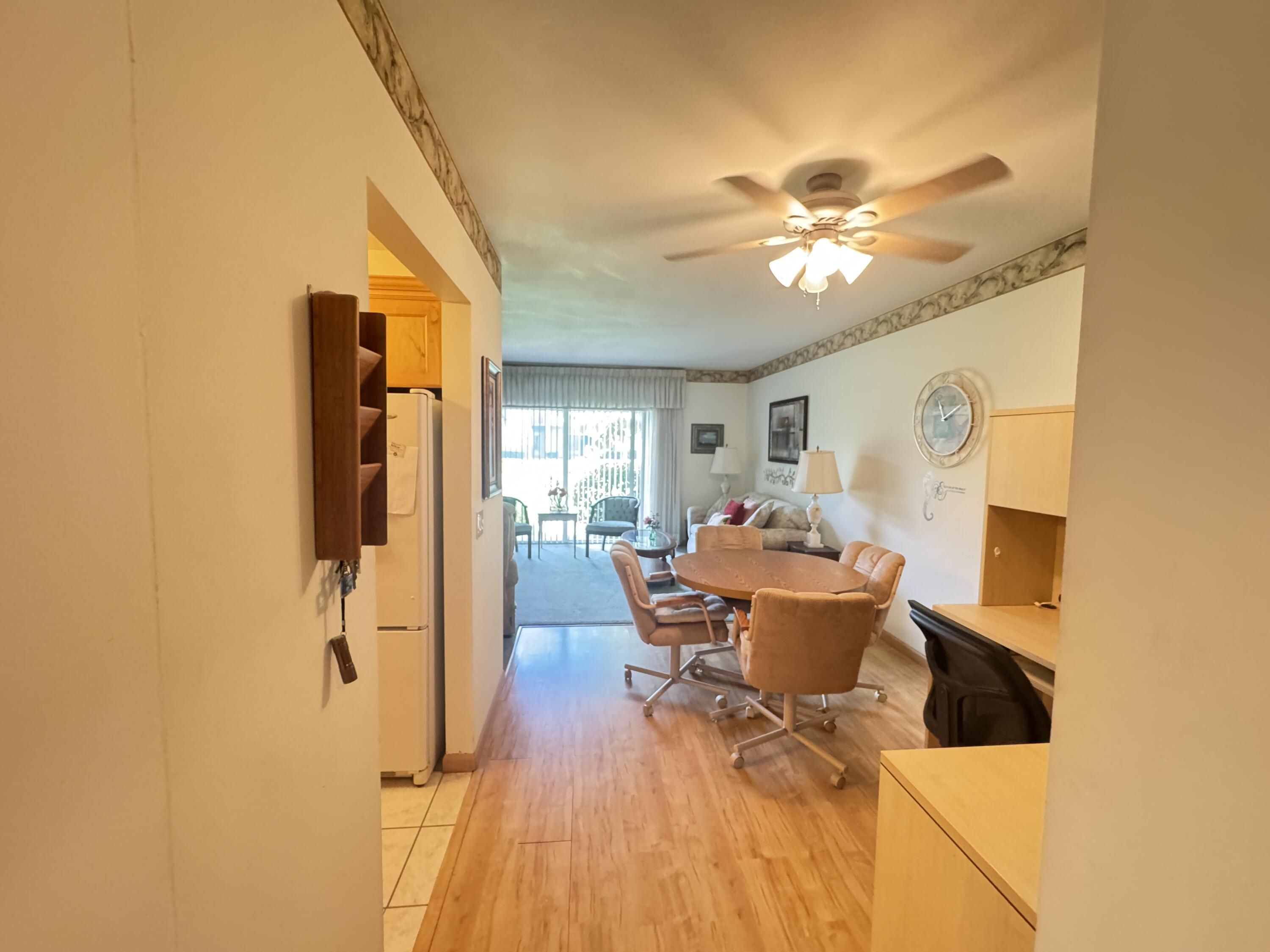 First-floor condo featuring an updated kitchen with dishwasher and trash compactor, updated bathroom with a separate vanity area. This well-kept seasonal residence offers two walk-in closets, impact windows, and newer A/C (2020). Enclosed Patio makes a great flex space. Currently used as guest space. Conveniently located in an east Boynton Beach location, close to the beach, dining, and shopping. Priced for a quick sale, this home provides great value for the area. Dues include water, trash, building insurance, cable, and internet.
