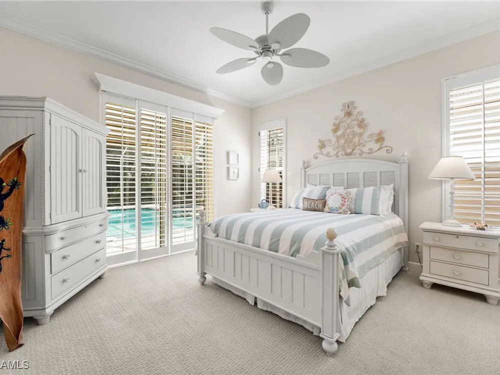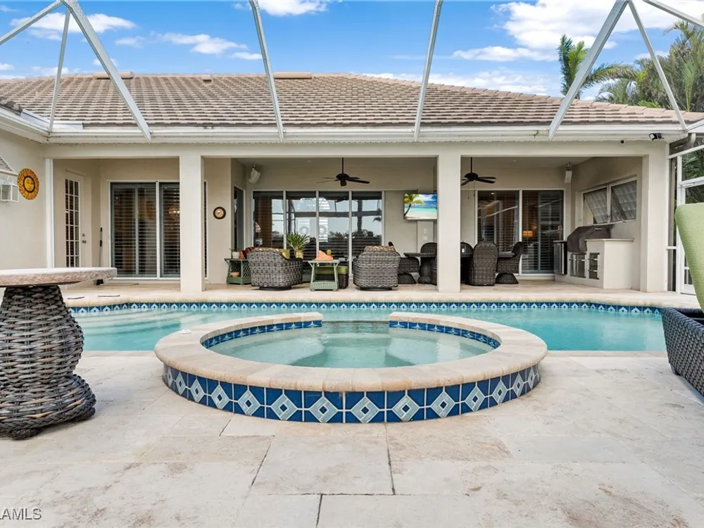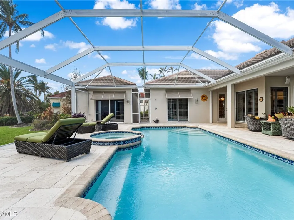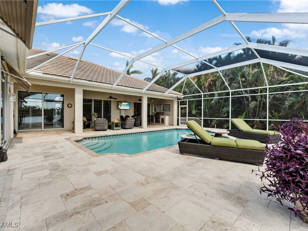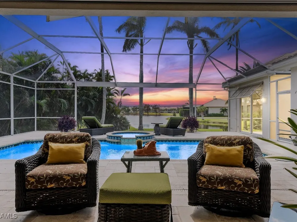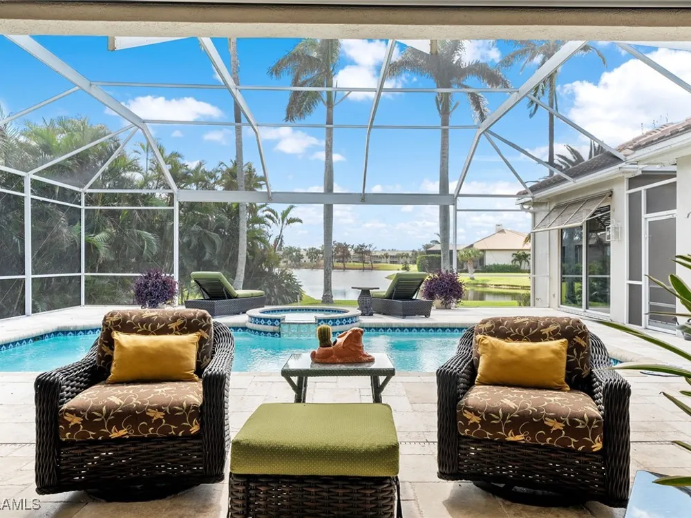 Nestled within the prestigious gates of Gulf Harbour’s Edgewater community, this stunning 4-bedroom, 4-bath custom home offers over 3,200 sq. ft. of refined living on an oversized lot with unmatched privacy and panoramic lake views. Walls of glass welcome you with breathtaking vistas the moment you enter. Meticulously maintained, the residence boasts a brand-new roof, hurricane screens on the lanai, and an assumable flood policy at just $845 annually. A custom-designed oversized 3-car garage provides ample space for 3 cars, a golf cart, tools, and storage—with dimensions tailored to even fit a limousine. The open-concept split floorplan is light-filled and ideal for entertaining. A chef’s kitchen features 42" custom cabinetry, quartz countertops, stainless steel appliances, a walk-in pantry, and a new refrigerator (microwave 2 years old, dishwasher 4 years old). Flowing seamlessly into the main living areas, the kitchen opens to an expansive covered lanai with an outdoor kitchen and fridge, creating the perfect backdrop for year-round gatherings by the pool. With coveted southern exposure, the pool enjoys full sun all day. Each bedroom in the main house is an ensuite, highlighted by a luxurious primary suite with two walk-in closets, dual vanities, a soaking tub, and a walk-in shower. A private Detached casita with a full bath offers the ideal retreat for guests, in-laws, or a home office. Additional upgrades include a 3-year-old A/C in the main house and a separate newer A/C for the casita. Limited-Time Membership Savings – Sports Membership Fee Reduced by $32,000! For a limited time, secure a sports membership at Gulf Harbour Yacht & Country Club for only $20,000. Don't miss this opportunity to own one of the premier homes in Edgewater!