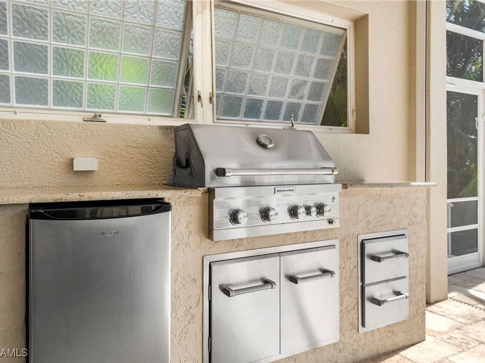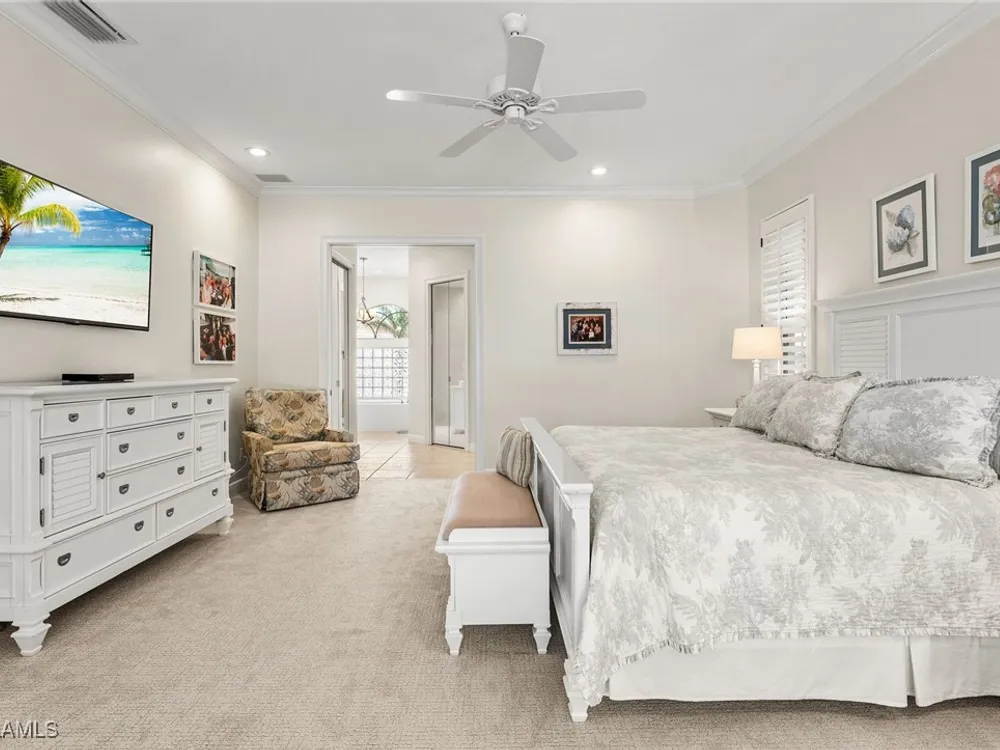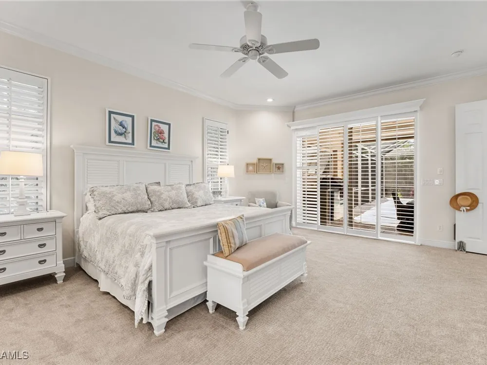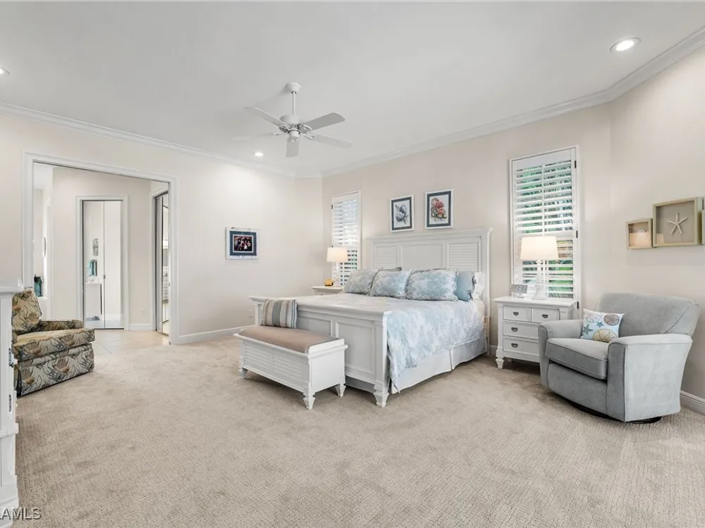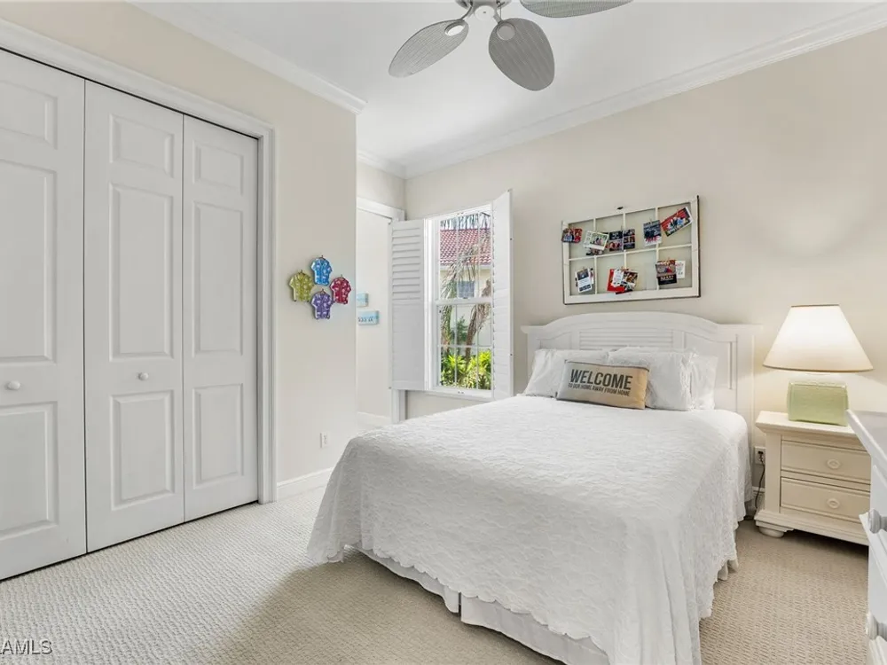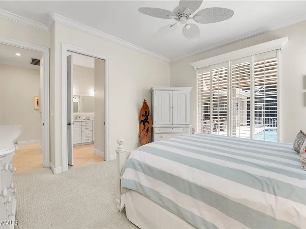 Nestled within the prestigious gates of Gulf Harbour’s Edgewater community, this stunning 4-bedroom, 4-bath custom home offers over 3,200 sq. ft. of refined living on an oversized lot with unmatched privacy and panoramic lake views. Walls of glass welcome you with breathtaking vistas the moment you enter. Meticulously maintained, the residence boasts a brand-new roof, hurricane screens on the lanai, and an assumable flood policy at just $845 annually. A custom-designed oversized 3-car garage provides ample space for 3 cars, a golf cart, tools, and storage—with dimensions tailored to even fit a limousine. The open-concept split floorplan is light-filled and ideal for entertaining. A chef’s kitchen features 42" custom cabinetry, quartz countertops, stainless steel appliances, a walk-in pantry, and a new refrigerator (microwave 2 years old, dishwasher 4 years old). Flowing seamlessly into the main living areas, the kitchen opens to an expansive covered lanai with an outdoor kitchen and fridge, creating the perfect backdrop for year-round gatherings by the pool. With coveted southern exposure, the pool enjoys full sun all day. Each bedroom in the main house is an ensuite, highlighted by a luxurious primary suite with two walk-in closets, dual vanities, a soaking tub, and a walk-in shower. A private Detached casita with a full bath offers the ideal retreat for guests, in-laws, or a home office. Additional upgrades include a 3-year-old A/C in the main house and a separate newer A/C for the casita. Limited-Time Membership Savings – Sports Membership Fee Reduced by $32,000! For a limited time, secure a sports membership at Gulf Harbour Yacht & Country Club for only $20,000. Don't miss this opportunity to own one of the premier homes in Edgewater!