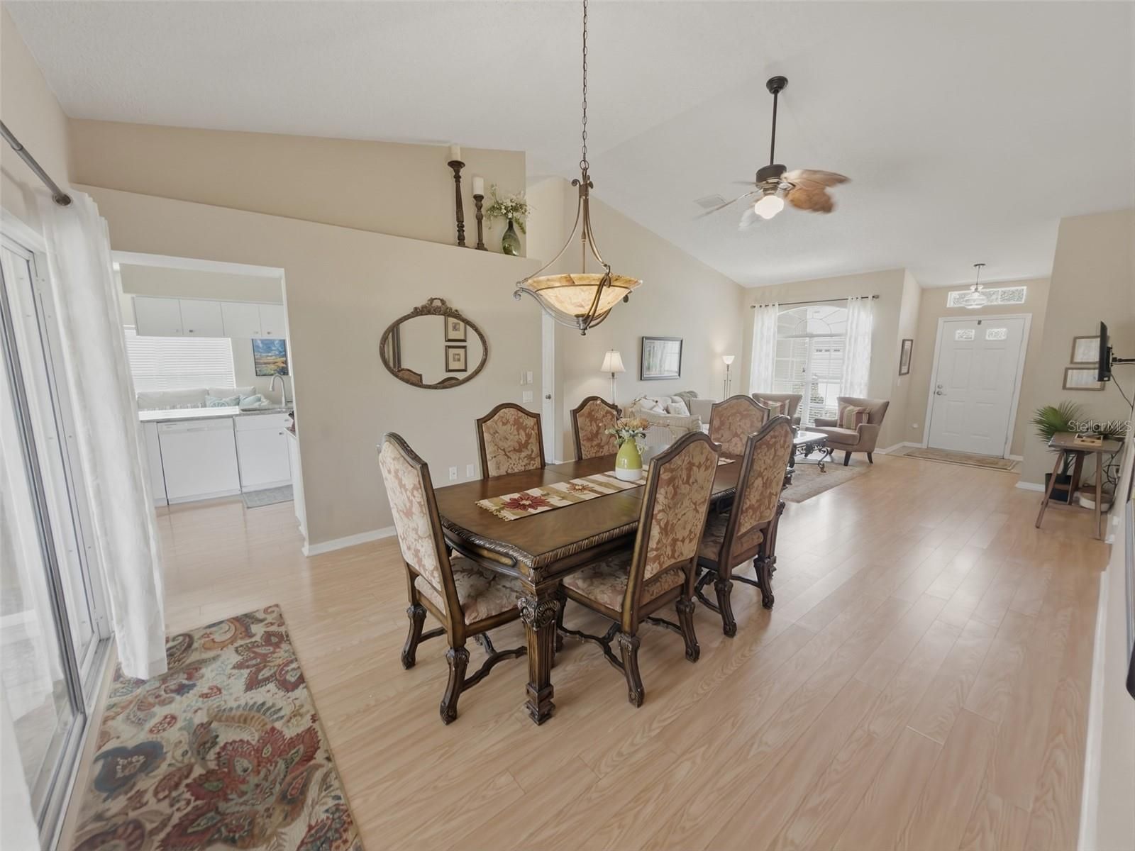 Welcome to this beautifully updated end-unit villa in the desirable Heritage Pines. This 2-bedroom, 2-bath home offers a bright and spacious feel with cathedral ceilings and a thoughtfully designed layout ideal for everyday living and entertaining. As you enter, you’ll notice the new luxury vinyl plank flooring, updated light fixtures, and new ceiling fan in the main living area. The living and dining room combination greets you at the front of the home, while the kitchen overlooks the family room, creating a comfortable and functional flow. The kitchen features new granite countertops, an undermount sink, stylish backsplash, updated hardware, breakfast bar, closet pantry, and a cozy dinette area. Both the dining room and dinette offer sliding glass doors leading to the screened lanai with birdcage, providing a relaxing outdoor space to enjoy Florida living. The primary suite includes a new ceiling fan, dual walk-in closets, and an en-suite bath with updated lighting and fixtures, a dual-sink vanity with built-in desk area, and a walk-in shower with fold-down bench. The guest bedroom and guest bathroom are located on the opposite side of the home and can be privately separated with a sliding barn door, offering privacy for visitors. Additional features include an indoor laundry room with washer and dryer included and a 2-car garage. Major updates provide peace of mind: roof (2020), AC (2019), and water heater (2024). Residents enjoy a low-maintenance lifestyle with HOA fees covering security, cable, internet, lawn care, exterior painting, termite prevention, and irrigation. Heritage Pines offers resort-style amenities including an 18-hole championship golf course, heated pool and spa, fitness center, clubhouse with restaurant and bar, billiards, woodworking shop, arts and crafts room, and an active social calendar. Schedule your private showing today and experience all that Heritage Pines has to offer.