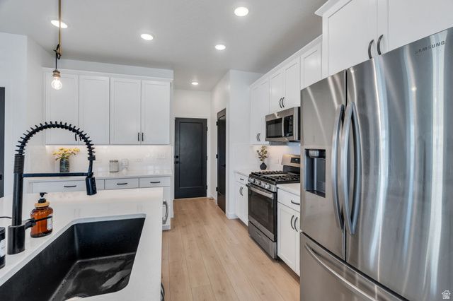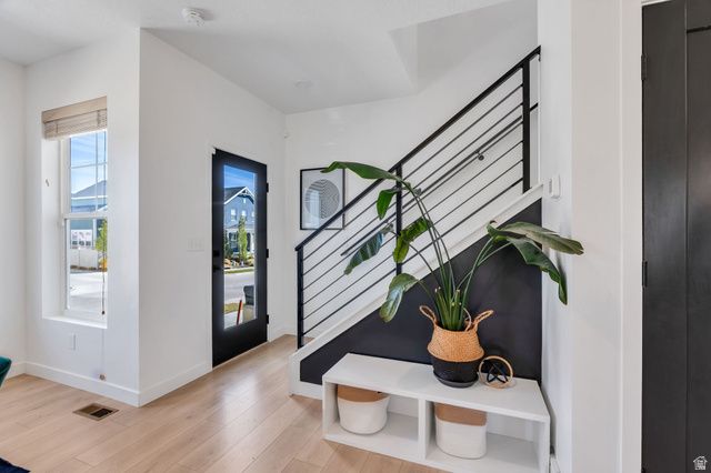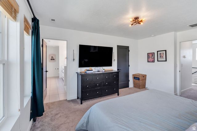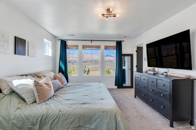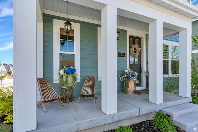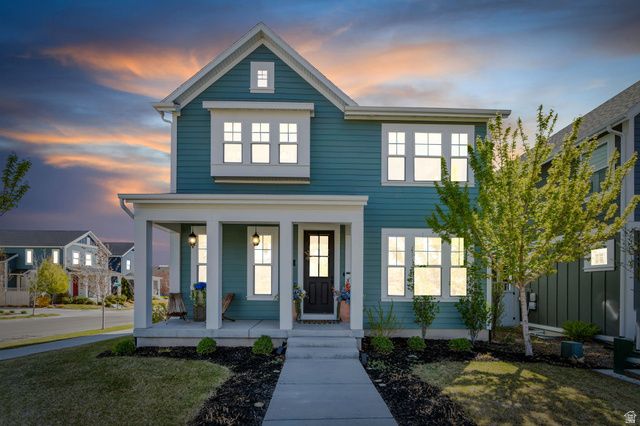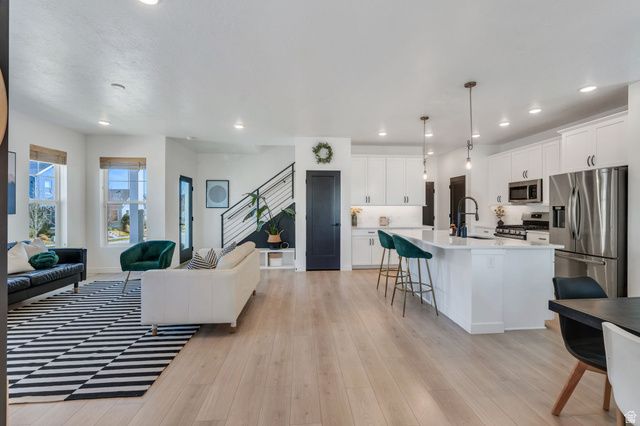 Welcome to this spacious two-story home in the highly desirable Upper Daybreak community! Perfectly situated on a corner lot just less than a block from Aspen Elementary, this home offers both convenience and charm. Step inside to an open, airy floor plan filled with abundant natural light. The bright kitchen is a standout, featuring stainless steel appliances, modern hardware, and a seamless flow into the main living space, ideal for everyday living and entertaining. Upstairs, you'll find a stunning primary suite complete with a beautifully appointed ensuite bathroom, creating the perfect retreat at the end of the day. The fully finished basement adds even more versatile living space for relaxing, hosting, or creating a home gym or office. Enjoy peaceful mornings or evening sunsets from the covered front porch, where you'll take in breathtaking views of the Oquirrh Mountains. This is the perfect blend of location, comfort, and style. Don't miss your chance to call Daybreak home!