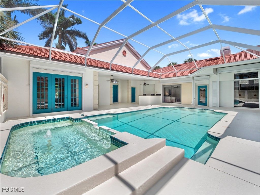 Discover a rare courtyard-style estate where timeless design meets resort-style living in one of Fort Myers’ most prestigious communities, Gulf Harbour Yacht & Country Club. Offering over 3,700 square feet of beautifully designed space, this residence was created for entertaining, privacy, and the ultimate Southwest Florida lifestyle. At the heart of the home, a sparkling heated pool and spa connect the main residence, private cabana, AND separate guest house, creating a true indoor–outdoor retreat. The main home features generous living and dining spaces, a chef’s kitchen with dual dishwashers, and a serene primary suite with both direct courtyard access and water views. Adding to the home’s character is a custom-built bar with extensive woodwork, crafted to feel like your very own private pub, an inviting and unique space for entertaining or simply relaxing in style. The cabana and guest house provide versatile accommodations for family, visitors, or private work-from-home space, each designed with comfort and flexibility in mind. Peace of mind comes with a 2020 Kohler whole-house generator connected to a 500-gallon propane tank, full hurricane shutter protection (all serviced in 2025), newer roofs (main 2016, guest house 2023), updated hot water systems, and well-maintained A/C. Located in the Gated Edgewater community of Gulf Harbour, residents have the opportunity (with separate club membership) to enjoy world-class amenities including a championship golf course, deep-water marina, tennis, fitness, fine dining, and a grand clubhouse, just minutes to white sand beaches and the Gulf of Mexico. This is more than a home; it’s an invitation to live the SWFL lifestyle at its finest.