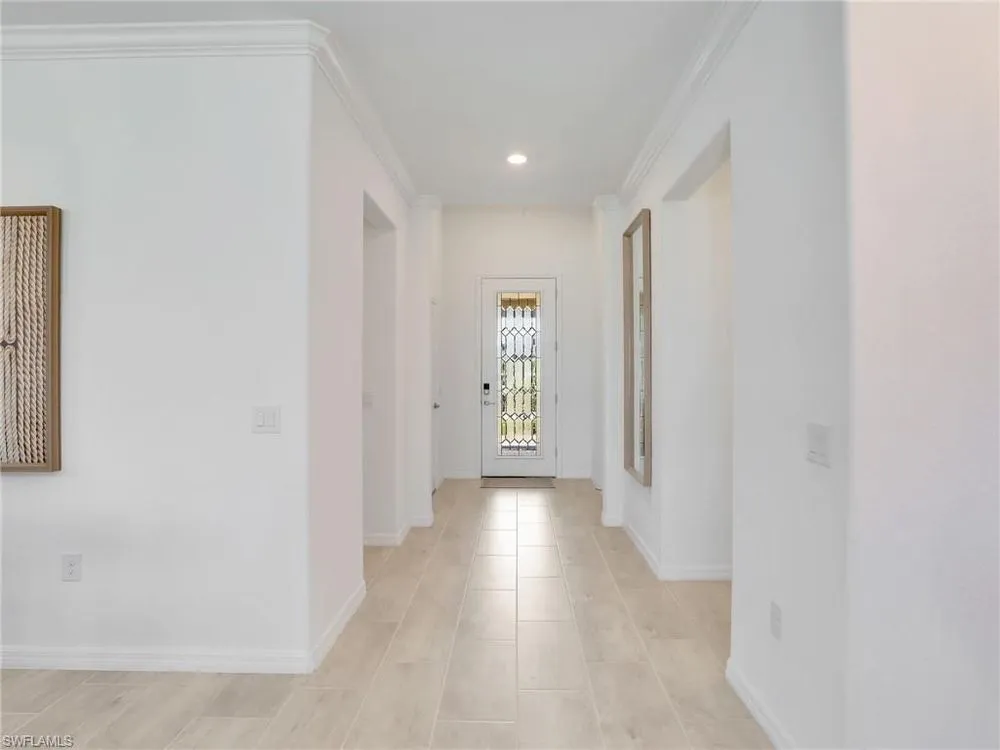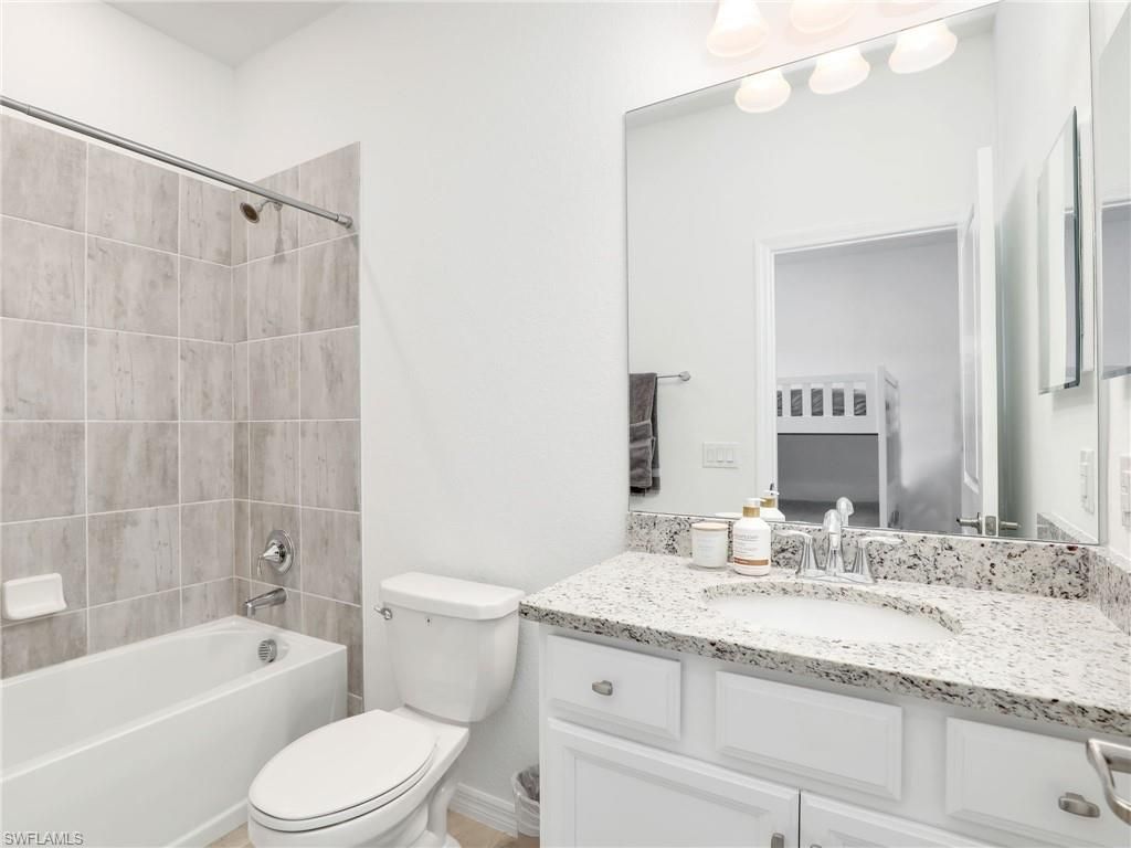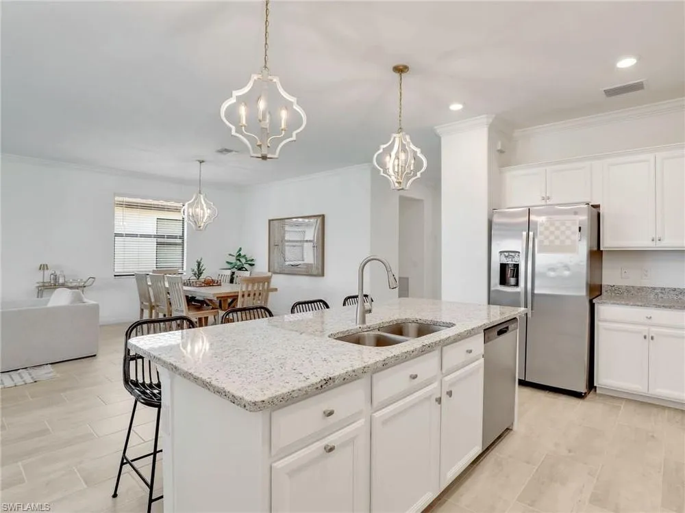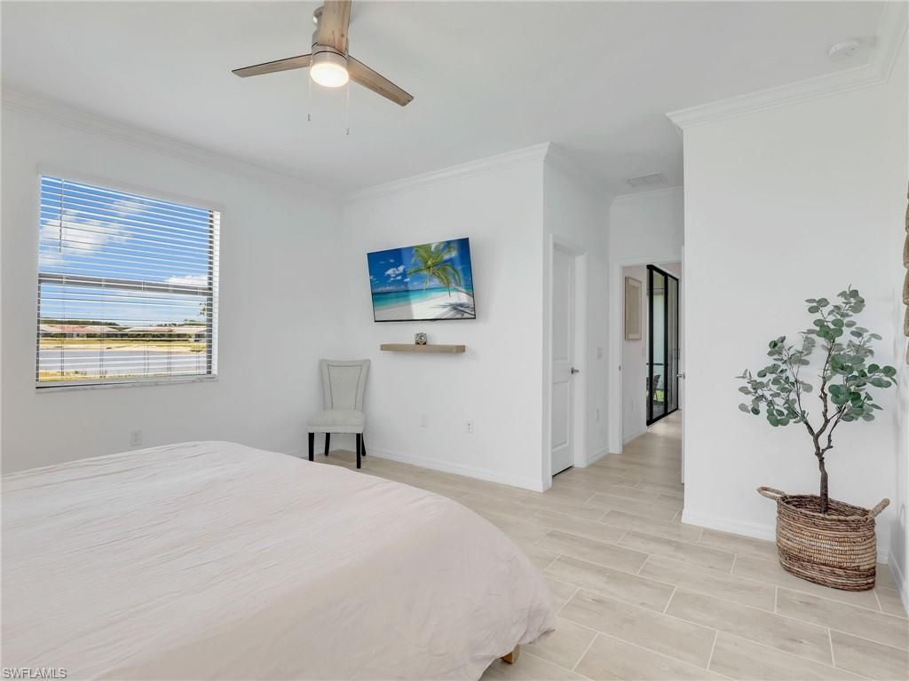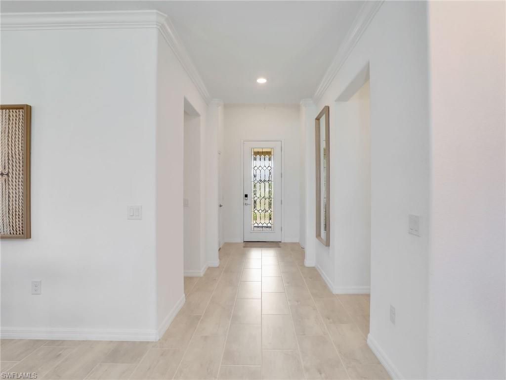 Welcome to this beautifully appointed bright, TURNKEY furnished one-story single family home in move in condition located in the highly sought after gated community of Arborwood Preserve! This Venice floor plan offers 1,852 square feet of open concept living space and has a light and bright northeast exposure with tranquil lake view. Built in 2022, this meticulously maintained 3-bedroom, 3-bathroom residence features a large primary bedroom with a split bedroom layout with 1 ensuite bedroom & additional guest bedroom and detached bathroom. The spacious kitchen offers white cabinetry including pull-outs in lower cabinets, granite countertops, a large island with two overhead pendant lights, GE stainless steel appliances, a stainless-steel sink, and a spacious walk-in pantry. The home boasts 12x24 tile plank flooring throughout—NO CARPET—and is enhanced by crown molding in the main living areas, 9.4" ceilings, faux wood blinds throughout, and a glass front entry door. There is plenty of storage with 2 walk-in closets in the primary, an extra-large storage/linen closet near the separated guest bedroom & bathroom, and a coat closet by the front door. The great room sliders open to a screened lanai with paver flooring, perfect for enjoying the serene outdoor views plus there is a nice sized backyard with plenty of room to add a pool. Additional features include a 2-car garage with epoxy floor, a separate laundry room with wire shelving, a Ring doorbell camera & Ring door sensors, and a charming front porch under a durable tile roof. This community also features sidewalks, streetlights, and is NOT IN A FLOOD ZONE. Residents of Arborwood Preserve enjoy resort-style amenities including a Town Center clubhouse with a community rock waterfall pool, lap pool, community spa/hot tub, tennis & pickleball courts, lighted bocce ball courts, a movie theatre, fitness center, yoga studio, aerobics room, a hobby/craft room, multiple card rooms, a library, a fire pit, internet café with complimentary coffee, on-site restaurant and bar, outdoor dining areas, and an active social calendar managed by an activities director. This community is centrally located tucked away off the Treeline corridor just minutes from RSW Airport, Red Sox and Twins ballparks, Hertz Arena, FGCU, shopping, dining, and easy access to I-75. With its exceptional amenities and prime location, this move-in ready home is not to be missed!