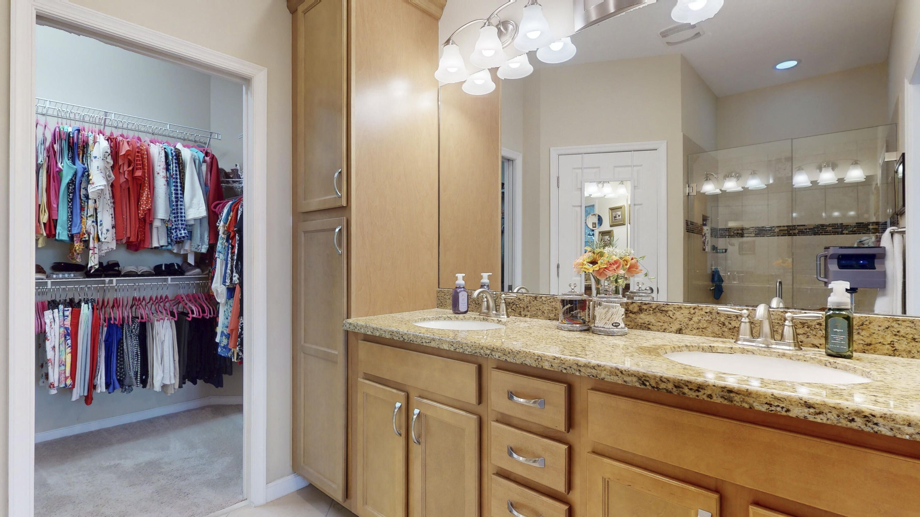 - Built-in Shelving, Entry Level Living Area, Kitchen Island, Pantry, Pull Down Attic Stairs, Split Bedrooms, Home Office, Living/Dining Room, Double Hung Metal Window(s), Plantation Shutters, Dual Sinks, Primary Downstairs, Bathtub