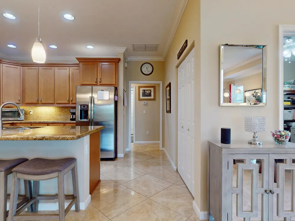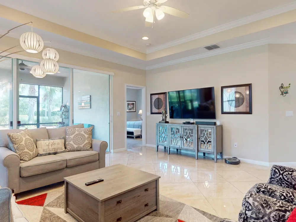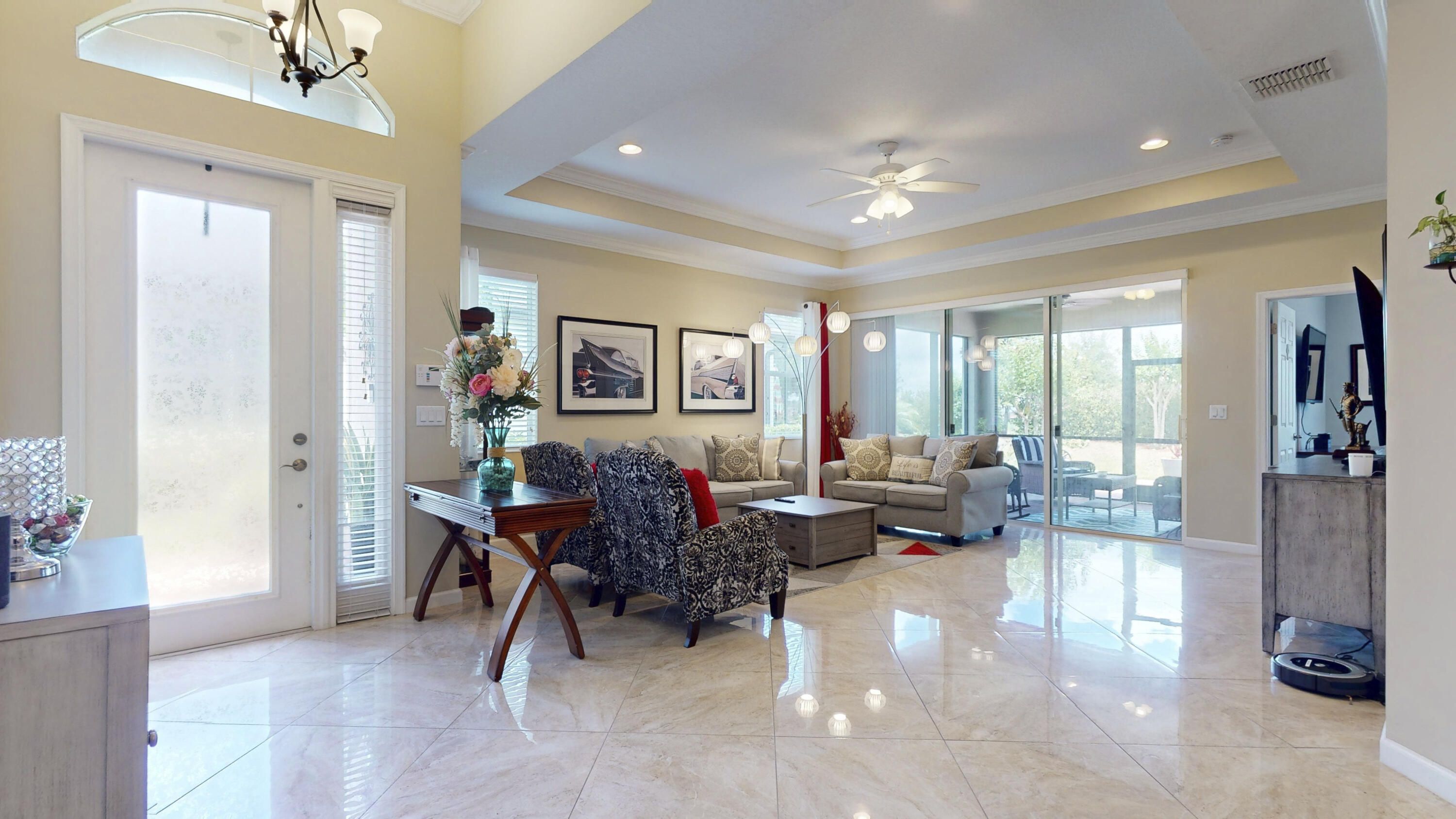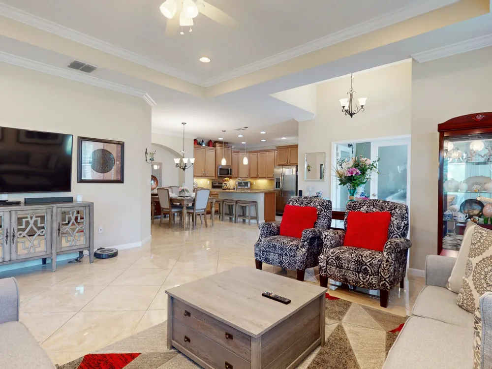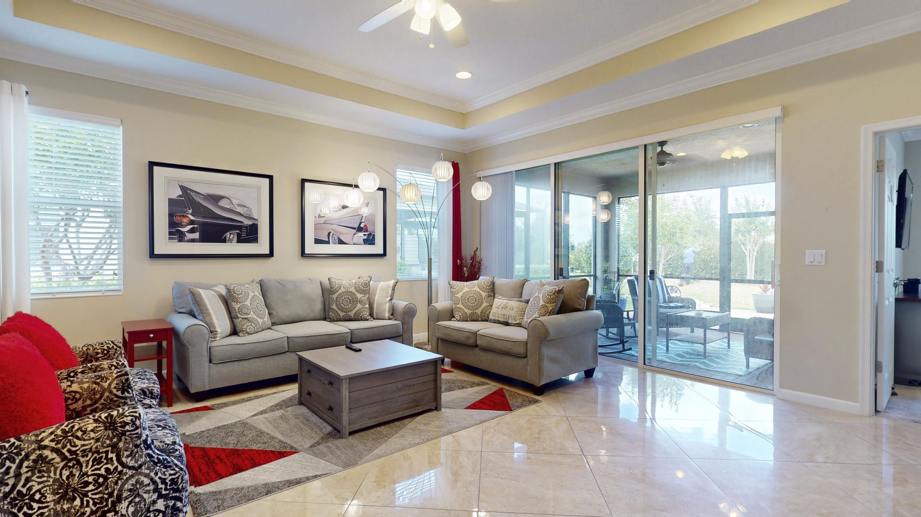 TRADITION LOCATION-AMAZING 2/2 + DEN OFFERS OVER $20,000. IN UPGRADES. UPON ENTRY OF THIS OPEN CONCEPT FLOOR PLAN YOU'RE WELCOMED WITH A LARGE LIVING ROOM, KITCHEN WITH AN ISLAND AND DINING AREA ALL ADORN WITH CROWN MOLDING. THE 22'' GORGEOUS PORCELAIN TILE IS LAID ON A DIAGONAL THROUGHOUT WITH UPGRADED CARPETS IN THE BEDROOMS. THE HOME'S INTERIOR HAS BEEN FRESHLY PAINTED-2025, THE GARAGE WAS ALSO PAINTED AND THE FLOORING HAS BEEN EXPOXIED-2025. THERE IS A SEPARATE LAUNDRY ROOM THAT LEADS TO THE 2 CAR OVERSIZED GARAGE. THERE HAS BEEN ADDITIONAL PAVERS ADDED OUT BACK AND THE PORCH HAS BEEN SCREEN ENCLOSED. THE COMMUNITY OFFERS GATED SECURITY, RESORT POOL, TENNIS, PICKLE BALL, AND A DOG PARK. CLOSE TO TRADITION HOSPITAL, SCHOOLS, RESTAURANTS AND SHOPPING.