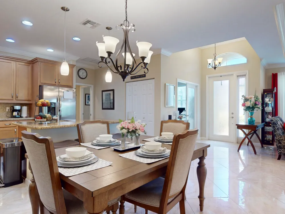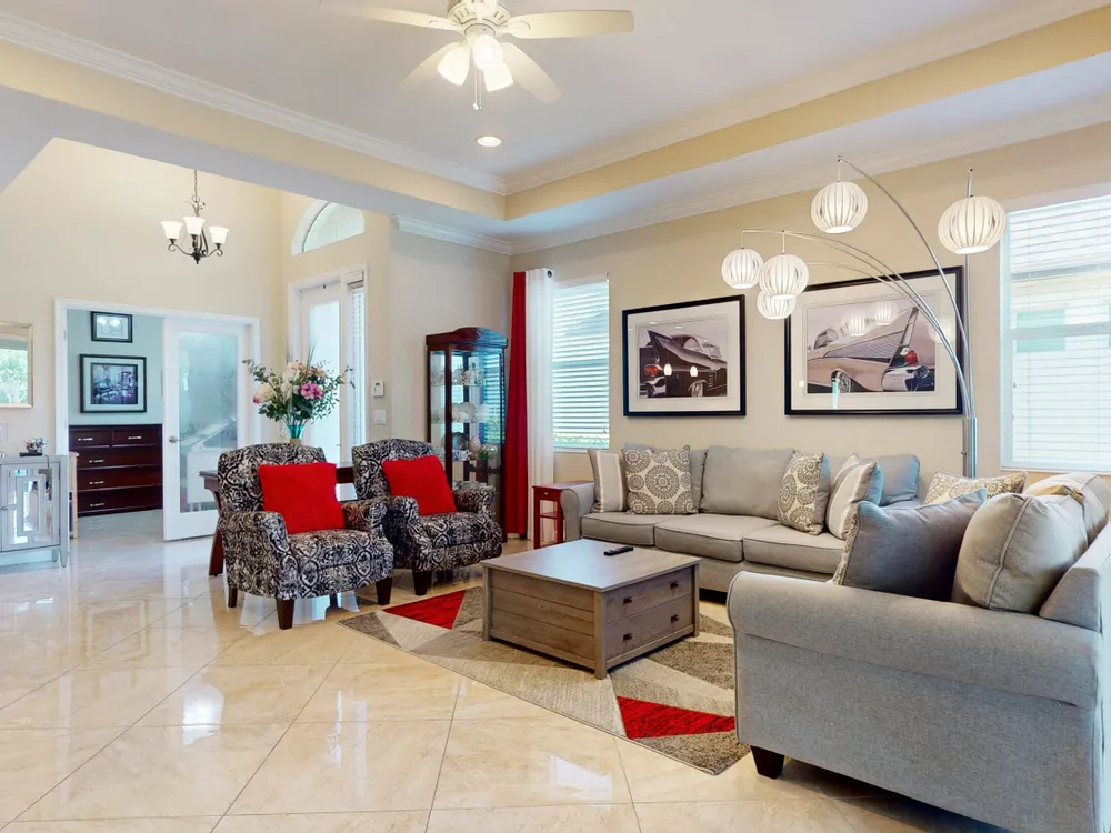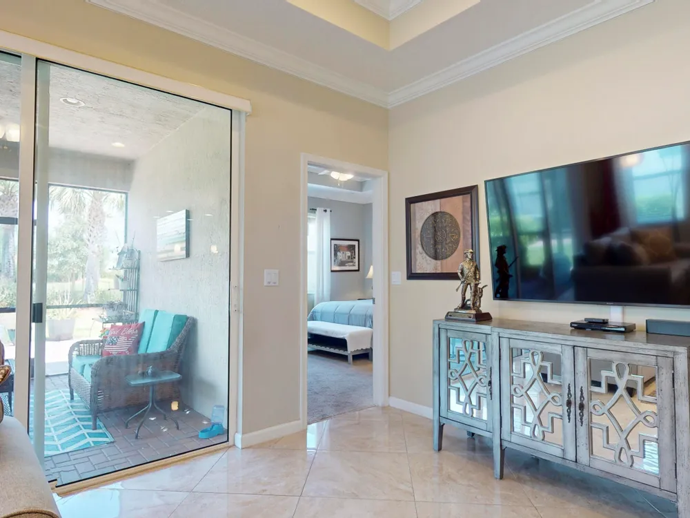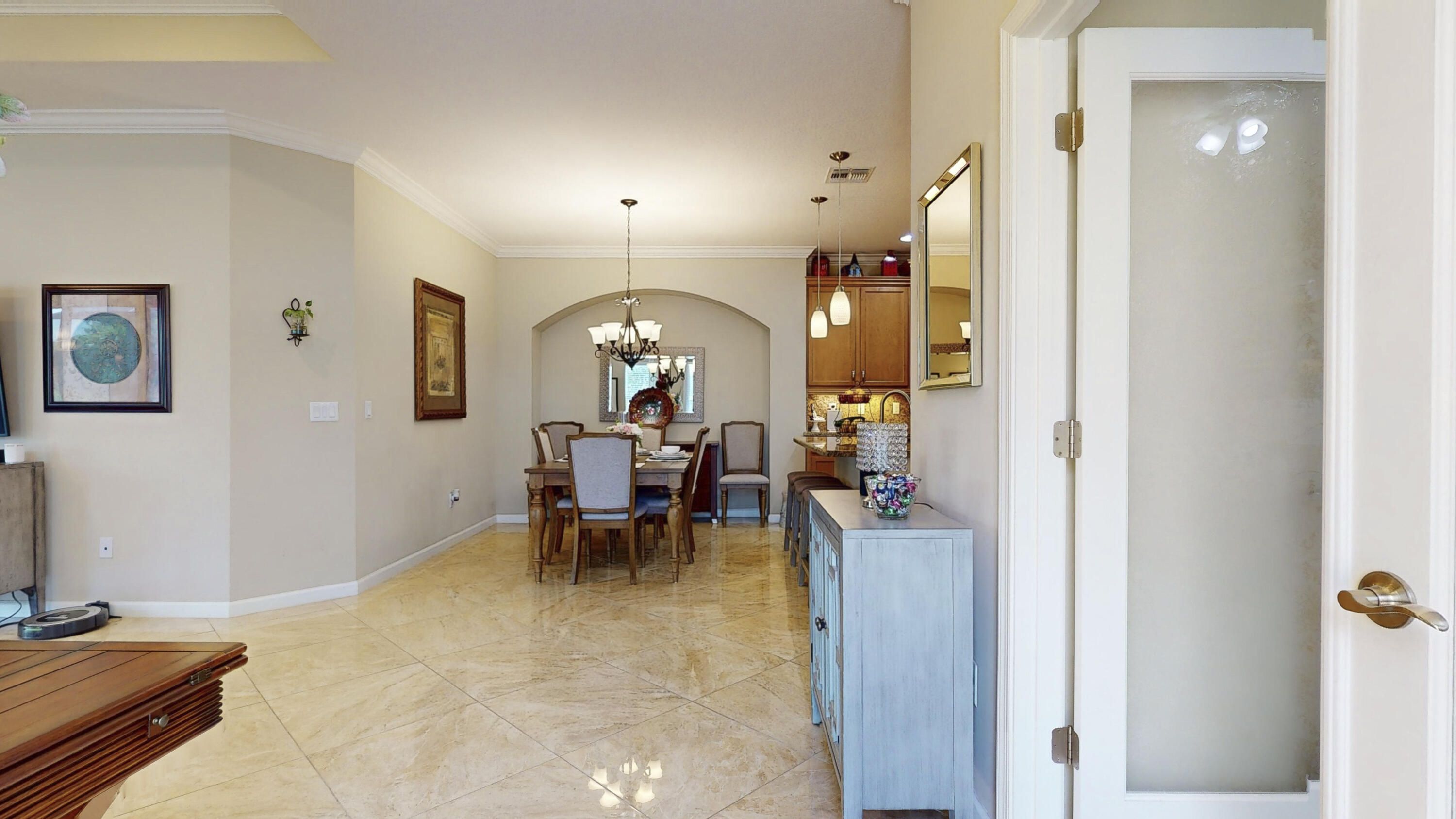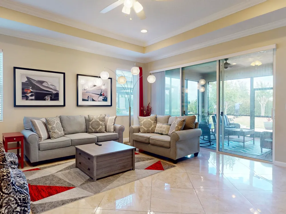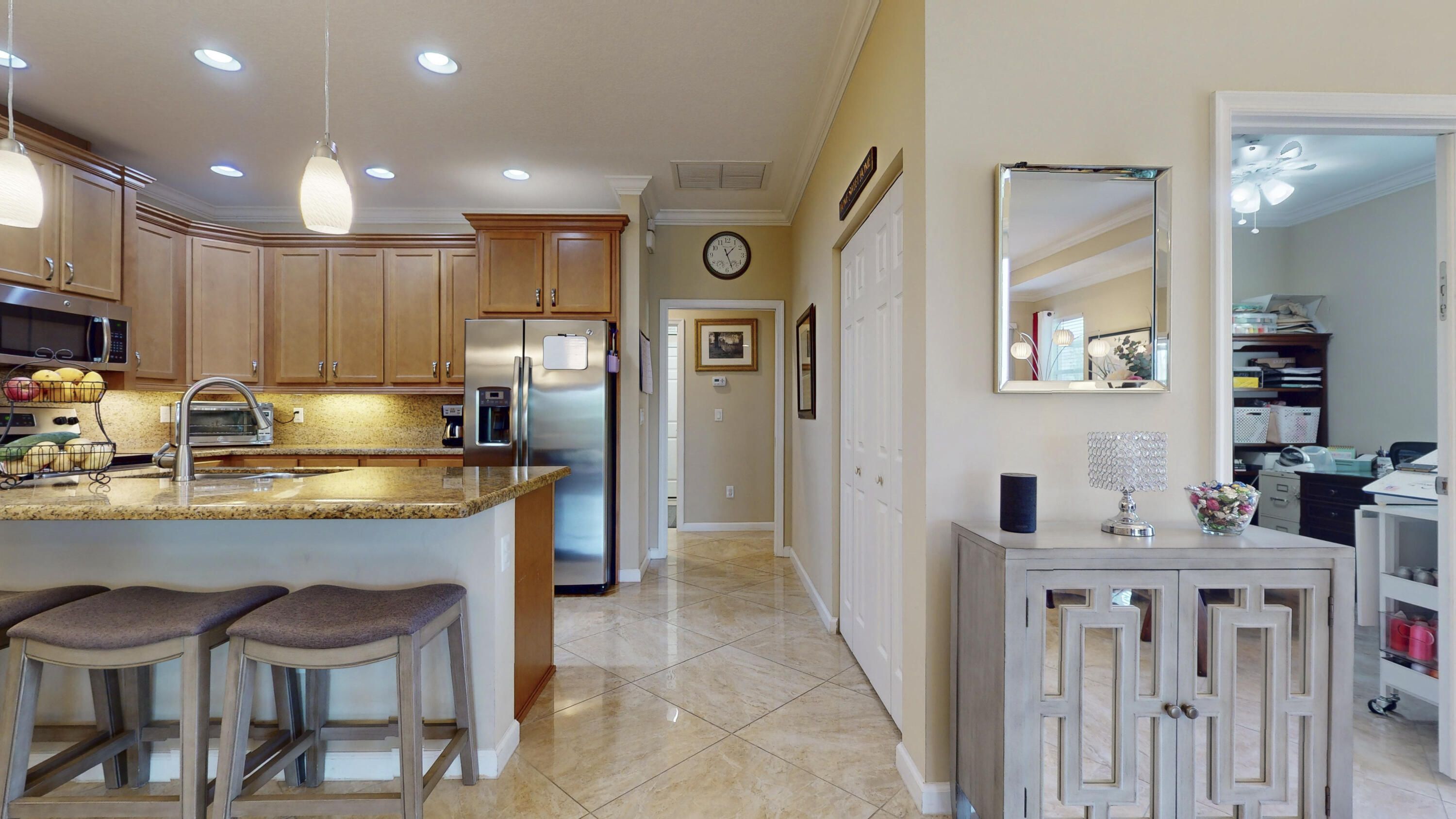TRADITION LOCATION-AMAZING 2/2 + DEN OFFERS OVER $20,000. IN UPGRADES. UPON ENTRY OF THIS OPEN CONCEPT FLOOR PLAN YOU'RE WELCOMED WITH A LARGE LIVING ROOM, KITCHEN WITH AN ISLAND AND DINING AREA ALL ADORN WITH CROWN MOLDING. THE 22'' GORGEOUS PORCELAIN TILE IS LAID ON A DIAGONAL THROUGHOUT WITH UPGRADED CARPETS IN THE BEDROOMS. THE HOME'S INTERIOR HAS BEEN FRESHLY PAINTED-2025, THE GARAGE WAS ALSO PAINTED AND THE FLOORING HAS BEEN EXPOXIED-2025. THERE IS A SEPARATE LAUNDRY ROOM THAT LEADS TO THE 2 CAR OVERSIZED GARAGE. THERE HAS BEEN ADDITIONAL PAVERS ADDED OUT BACK AND THE PORCH HAS BEEN SCREEN ENCLOSED. THE COMMUNITY OFFERS GATED SECURITY, RESORT POOL, TENNIS, PICKLE BALL, AND A DOG PARK. CLOSE TO TRADITION HOSPITAL, SCHOOLS, RESTAURANTS AND SHOPPING.