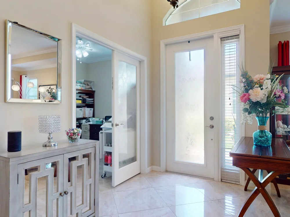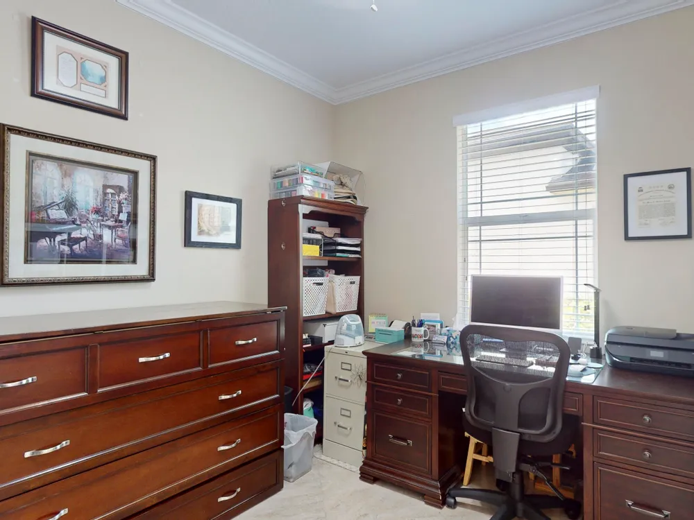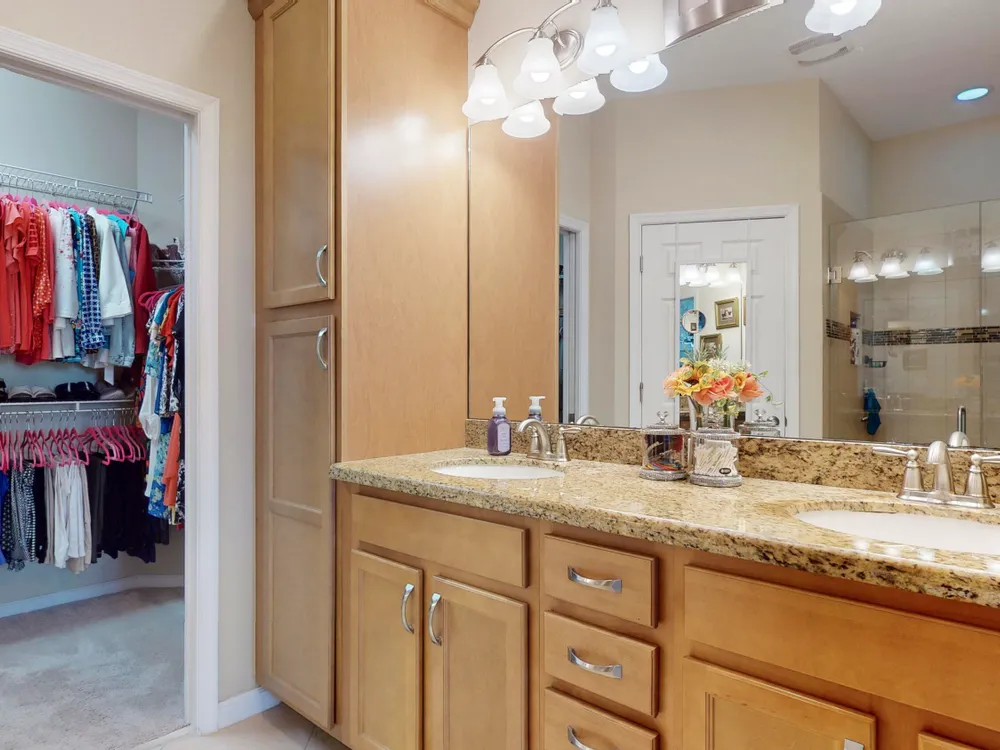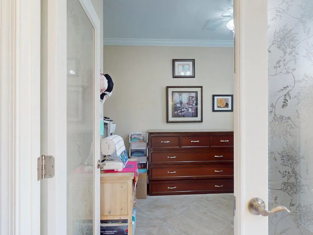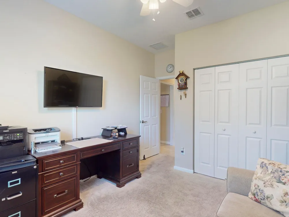 - Split Bedrooms, Entry Level Living Area, Kitchen Island, Built-in Shelving, Pull Down Attic Stairs, Pantry, Home Office, Living/Dining Room, Double Hung Metal Window(s), Plantation Shutters, Bathtub, Primary Downstairs, Dual Sinks