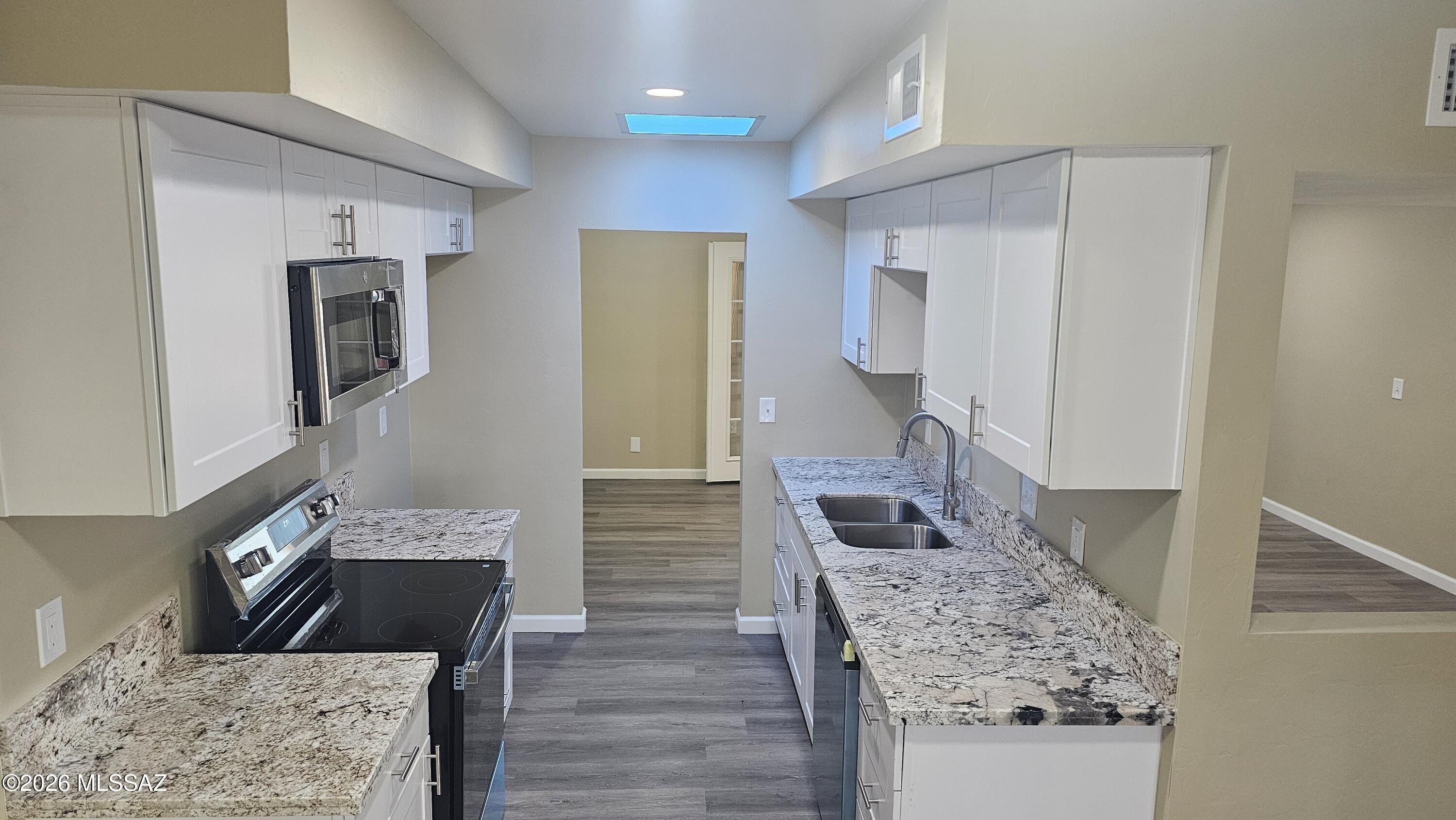 Beautifully updated townhouse on a quiet street. Close to shopping and local amenities. New paint inside and out. Fresh flooring throughout home. New roof with warranty as well. Kitchen has been remodeled and includes new cabinets and granite countertops. All interior doors are new as well as the hardware and fixtures. Don't miss out on this like new, open floorplan, property!