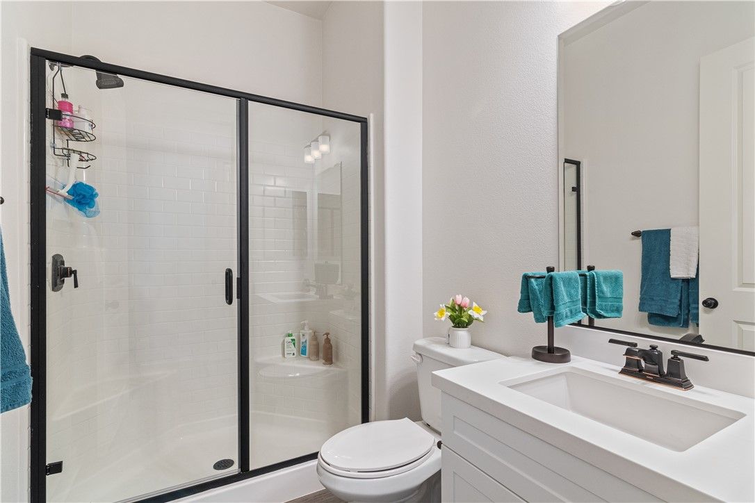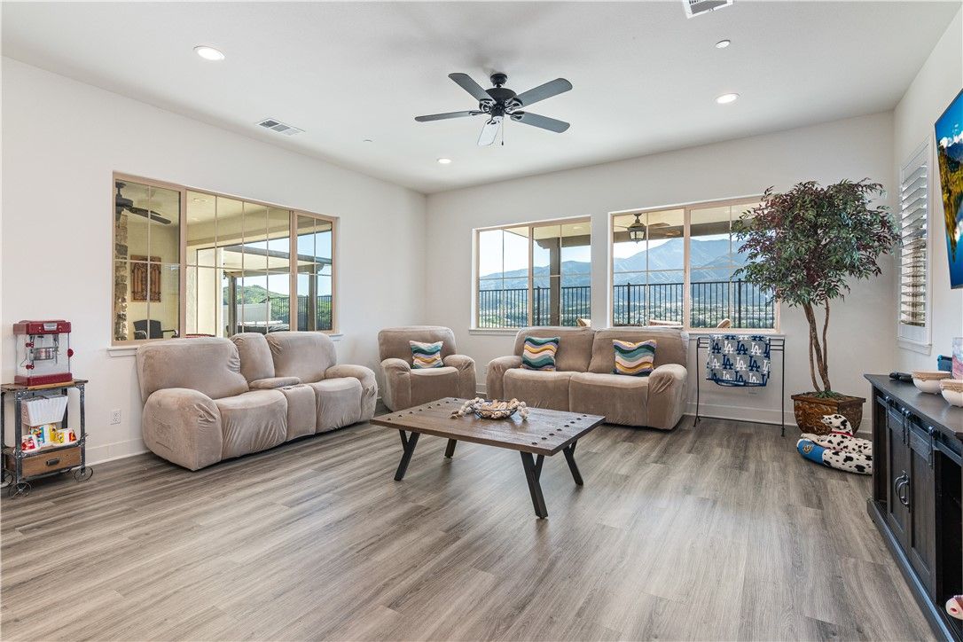 Check out the views!! Stunning and highly upgraded home in the highly desired guard gated community of Terramor!! Breathtaking views of the valley, mountains, and Cleveland National Forest from this absolutely stunning single story home in the prestigious 55+ neighborhood- The Oaktons. Such a well laid out home with so much to offer. Kitchen has white cabinetry with stainless steel pulls, Bosch stainless steel appliances- including a wine chiller, stainless farm sink, and quartz countertops. Large pendant lighting illuminate the oversized island with slate gray cabinetry and quartz slab countertops creating a wonderful place to gather. Owners suite has custom, oversized windows and French doors allowing you to wake up and enjoy your beautiful view. Owners suite bathroom has dual vanities with quartz slab countertops, and a massive walk in shower. At the opposite side of the home is a private Gen Suite. This layout allows a private secondary primary suite for mother in law or care-taker- includes a Guest Suite with living room and private bathroom- walk in shower with custom glass door, and quartz countertops. The 4th bedroom is currenlty being used as an office. Additional 3rd full bathroom with tub shower combo with glass door. Home has oil rubbed bronze plumbing & light fixtures and door hardware, a Quietcool whole house fan, solar system, custom window shutters, laminate wood flooring throughout, rain gutters in front and rear of home, woodgrain tile at the front porch and California room, and so many more upgrades. Step outside through the 16' trifold glass doors to take in the beautiful views from the California room. Custom fireplace with rock accent wall and built in TV. Custom automatic, with remote, screen that creates an outdoor living room, that can be closed off. Two alumawood patio covers that allow you to fully enjoy the backyard all year long. Stamped concrete and artificial turf make this backyard almost maintenance free. Attached two car garage is immaculate and there is a separate garage for your golf cart. The Terramor community is guard gated and offers high-end resort amenities for the active 55+: Pool, spa, pickleball courts, clubhouse, sports courts, fitness center, outdoor entertainment space, dog parks, miles of walking trails, and many social activities. Community has easy access to shopping, freeway acess to OC and LA. Come check out this well maintained home in the beautiful community of Terramor.