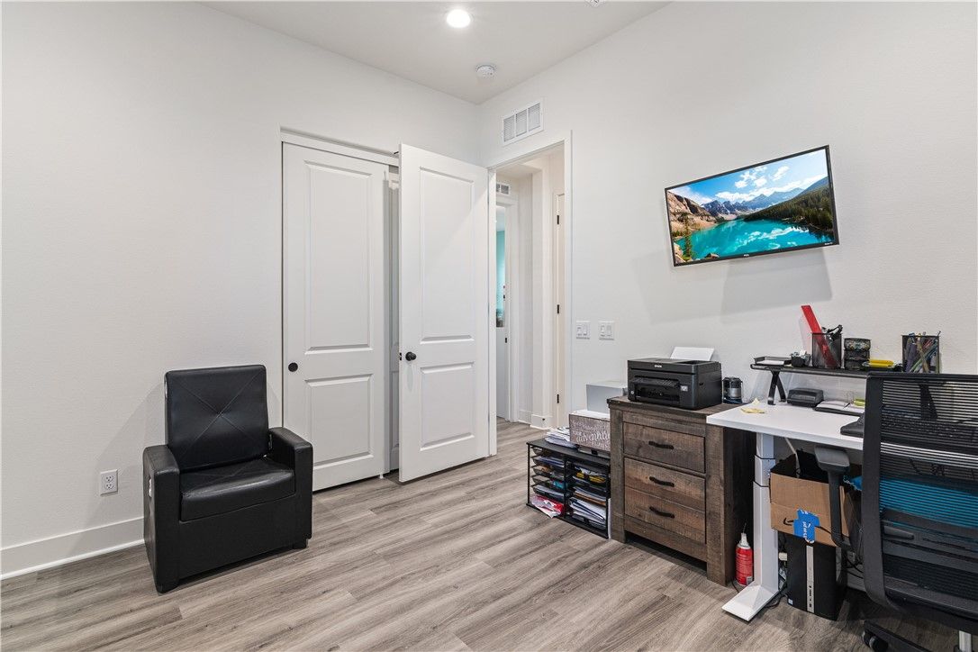 - Attic Fan, Built-in Features, Ceiling Fan(s), High Ceilings, Open Floorplan, Quartz Countertops, Recessed Lighting, Storage, All Bedrooms on Lower Level, Formal Entry, Family Room, Kitchen, Laundry Facility, Living Room, Bedroom on Main Level, Main Level Primary, Primary Suite, Home Office, Walk-In Closet(s)