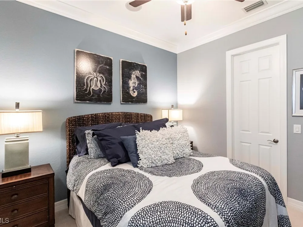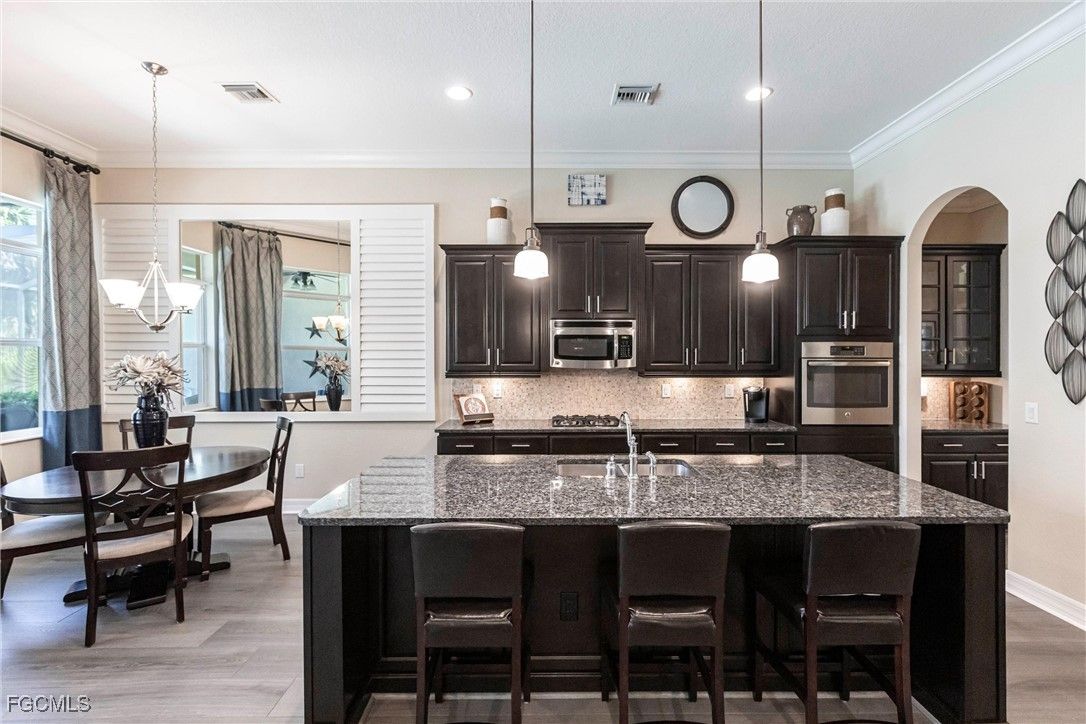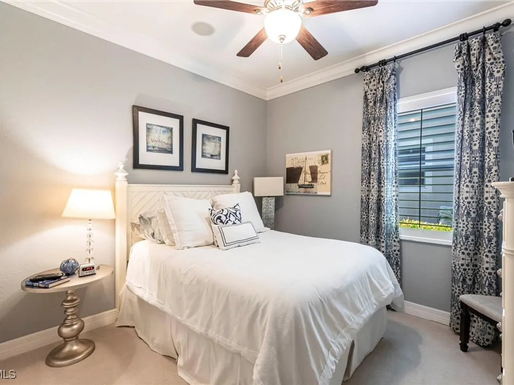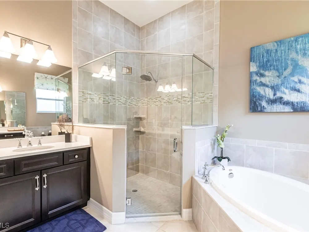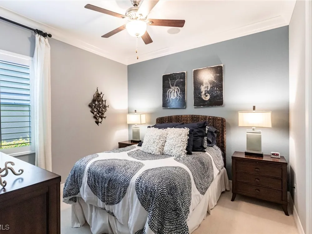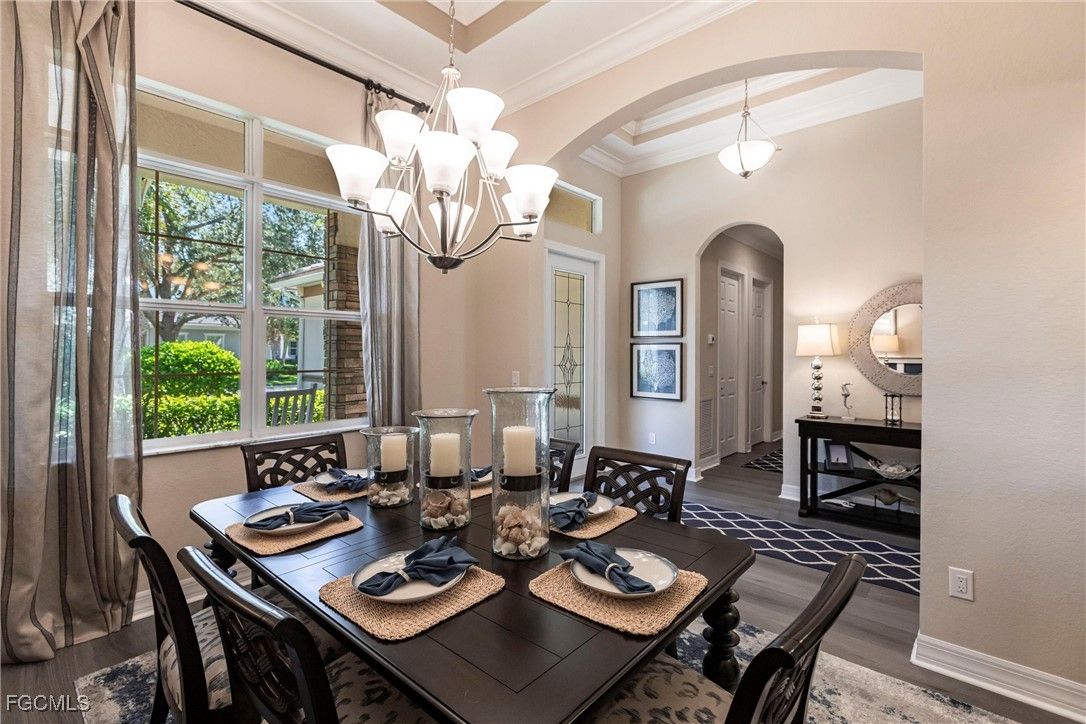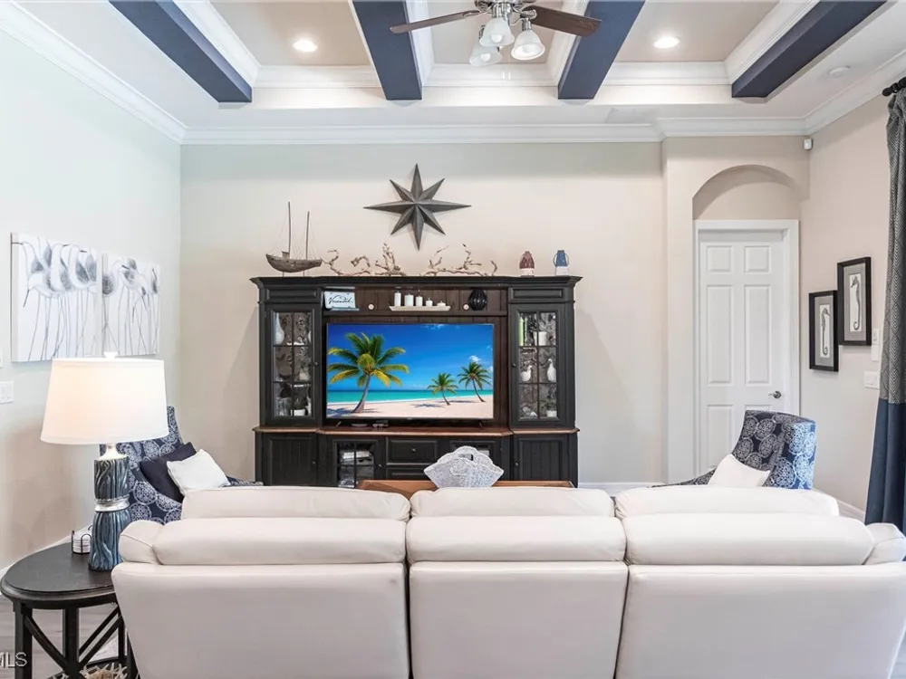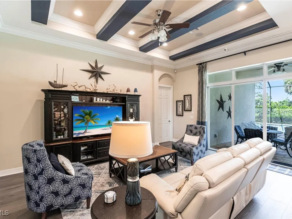 This stunning former Kolter Homes Anna model is a must-see, featuring a large heated pool and spa. What sets Kolter Homes apart from other builders is their commitment to quality and attention to detail. All homes boast 12ft ceilings, 8ft interior doors, and transom windows that flood the space with natural light. This home has been meticulously maintained and updated, with a new AC system featuring ultra-violet light, new LVP wood flooring in the main areas and primary bedroom, carpet in two additional bedrooms, plantation shutters, window treatments, two new toilets, a Butler’s Pantry, Blue Pearl Edge Granite countertops, Tumbled Marble Stone backsplash, crown molding throughout, 42-inch cabinets with under cabinet lighting, stainless steel appliances, and a wall oven with a natural gas cooktop. The primary suite is a luxurious retreat, with his-and-her walk-in closets, a spacious en suite bathroom with double vanities, a soaking tub, and a large walk-in shower. The private screened lanai boasts an auto-fill custom pool with an elevated jetted spa. The Anna model also features hurricane impact glass, coffered ceilings, laundry cabinets with a sink, and a brand new washer and dryer. Additional features include an alarm system with cameras, built-in surround sound, upgraded landscaping, and pavers on the driveway and lanai. Verandah, the community where this home is located, offers a wealth of amenities for residents to enjoy. These include two championship golf courses designed by Jack Nicklaus and Bob Cupp, a tennis complex, state-of-the-art fitness facilities, a resort-style heated community pool, pickleball, bocce, a dog park, kayaks, playground, multiple restaurants, and an active social calendar. Secure your place in paradise now by scheduling a viewing of this exceptional property.