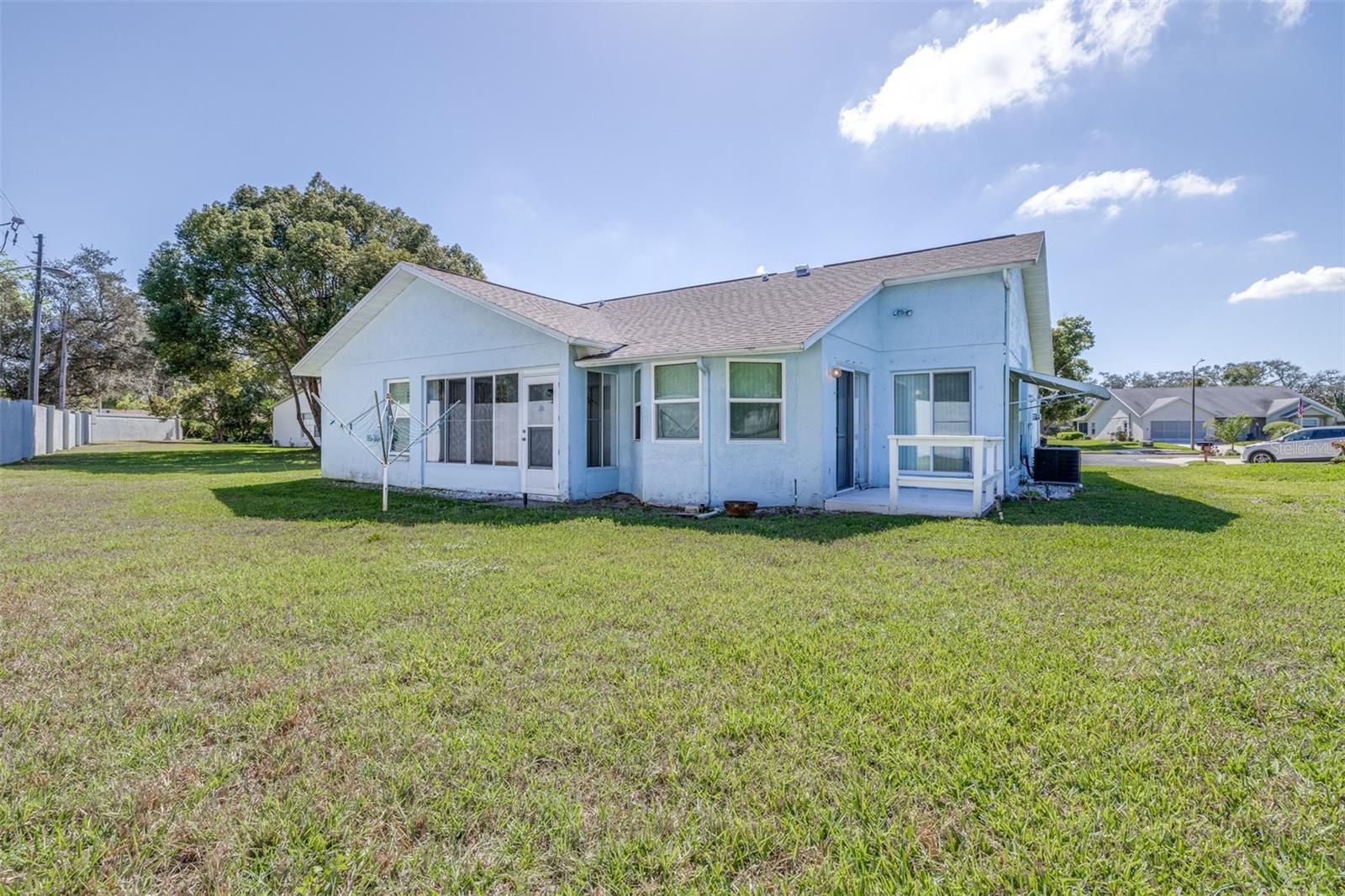 One or more photo(s) has been virtually staged. Welcome to easy Florida living in this beautifully maintained home located in a vibrant 55+ active adult community designed for enjoying every day to the fullest. From the moment you arrive, the large front porch invites you to sit back, relax, and enjoy the warm Florida breeze. Screened double front doors create a bright, welcoming entry while allowing fresh air to flow through the home. Inside, you'll find beautiful wood-look tile flooring throughout, offering both style and durability. The home features spacious bedrooms with large walk-in closets, providing plenty of storage, along with tastefully updated bathrooms that add modern comfort to this well-cared-for property. The primary bedroom includes elegant plantation shutters, creating a peaceful retreat. Step outside to the large screened lanai, perfect for morning coffee, evening relaxation, or entertaining friends while enjoying Florida?s year-round sunshine. The pie-shaped lot offers extra outdoor space and is maintained with a full irrigation system, while gutters help protect the home from the elements. Major updates include a roof that is only three years old, giving added peace of mind. The garage is equipped with a screened garage door and service door, making it easy to enjoy fresh air while working on hobbies or projects. Residents enjoy an incredibly active lifestyle with low HOA fees of just $55/month, which includes access to a clubhouse featuring a heated pool, two tennis courts, bocce ball, horseshoes, shuffleboard, pool tables, library, card tables, auditorium, computer room, and sewing room. With multiple clubs and monthly events, there are always opportunities to socialize, stay active, and build friendships. Whether you're looking for a full-time residence or the perfect Florida retirement retreat, this home offers the ideal combination of comfort, community, and the relaxed Florida lifestyle.