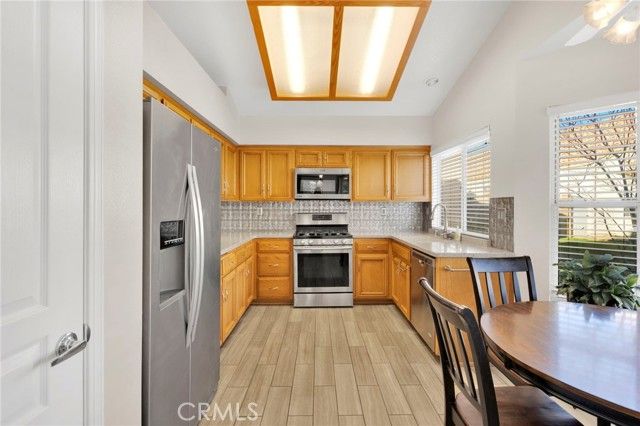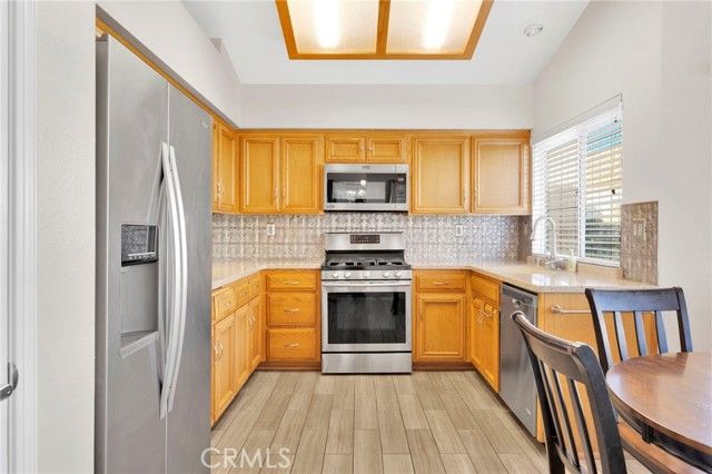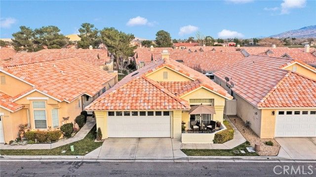 This Well-maintained 1,332 sq. ft. home built in 1994, is located in the desirable Jess Ranch community of Apple Valley. This home features front and back patios, upgraded baseboards throughout, custom Levelor blinds and drapes, and updated light fixtures. All appliances are included, offering true move-in convenience. The fully finished garage includes epoxy floors and ample storage. Attractive landscaping enhances both curb appeal and outdoor enjoyment. Community amenities include a brand-new clubhouse completed in 2025, featuring a pool, jacuzzi, gym, library, and scenic walking paths. A wonderful opportunity to enjoy comfort, convenience, and an active lifestyle in a well-established community.