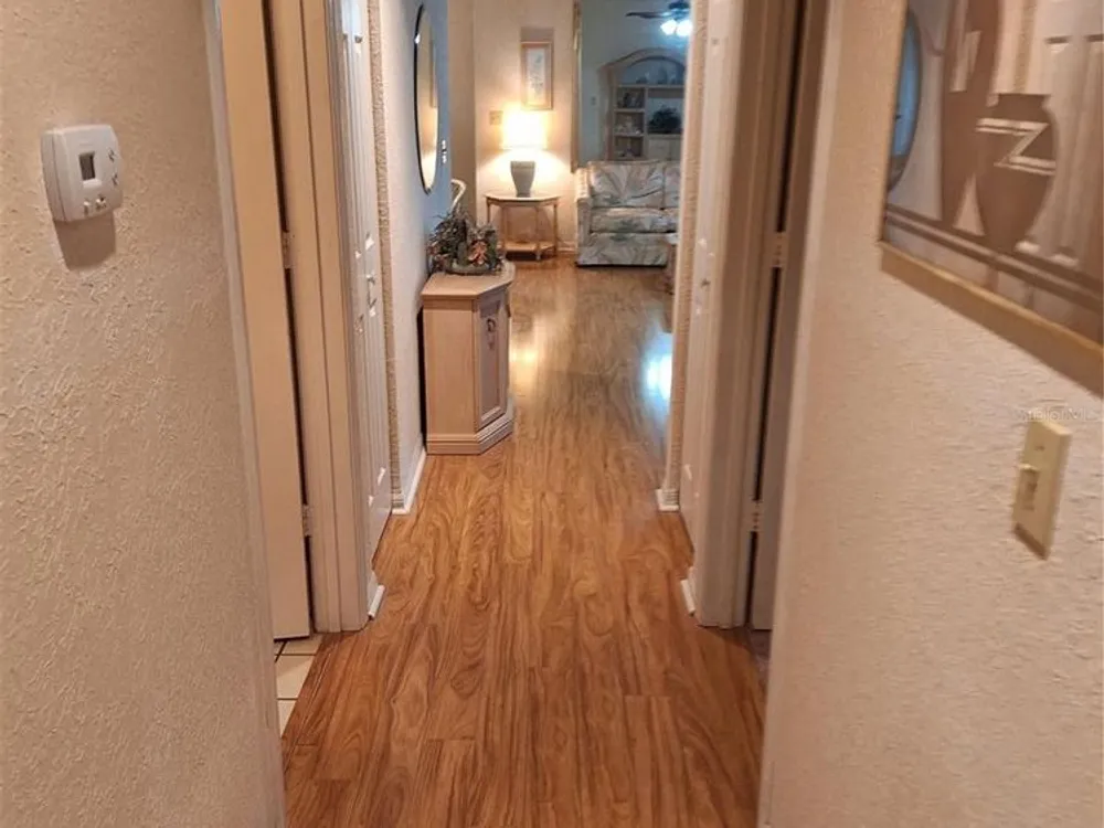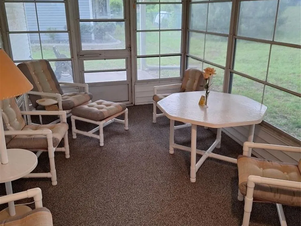 SUBSTANTIAL PRICE REDUCTION 10/2025!! Welcome to this charming and spacious 2-bedroom, 2-bathroom, 1 car garage home located in the highly desirable 55+ Oak Run Country Club community. The home is being sold FURNISHED...great for a part-time or year round lifestyle!! This home features a nice front porch to enjoy your morning coffee. Upon entering the home you will notice the open floor plan offering Living Room/Dining Room combination perfect for gatherings with family and friends. Recent updates include beautiful newly installed (August 2025) porcelain tile flooring in the kitchen along with Whirlpool/LG appliances (May 2025), wood laminate flooring installed a few years ago in the living room, dining room and hallway, A/C 2019 and Roof 2002. When you're ready to relax enjoy your enclosed Florida Room (under heat/air), but you may prefer to sit on the adjacent screened in lanai instead!! Finally, there is a separate patio for days you may want to host a BBQ...The Master Bedroom is a nice size with a walk in closet and ensuite bathroom which features a walk-in shower and vanity. The spacious guest bedroom offers a sliding door closet and is located across the hallway from the guest bathroom which includes a tub/shower combo and vanity. Oak Run offers a restaurant, golf course, dog park and other great amenities ie. 6 pools, 5 hot tubs, fitness centers and much more...there are over 110 clubs to join!! You will be close to restaurants, shopping and medical facilities in the area. **Oak Run is not an actual HOA community, therefore the monthly service fee doesn't go to an HOA. Please refer to Oak Run's website for details** GREAT HOME offering comfort and style located in a great neighborhood...see it today!!