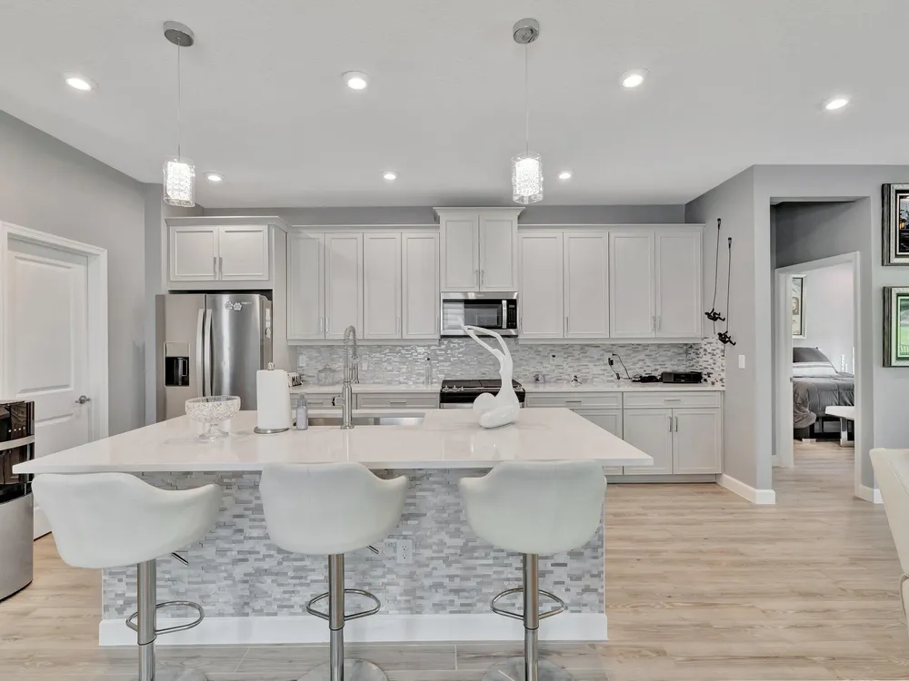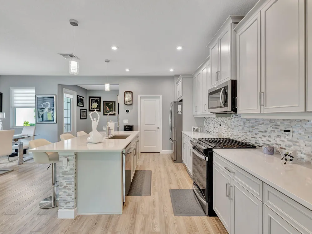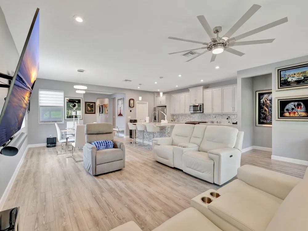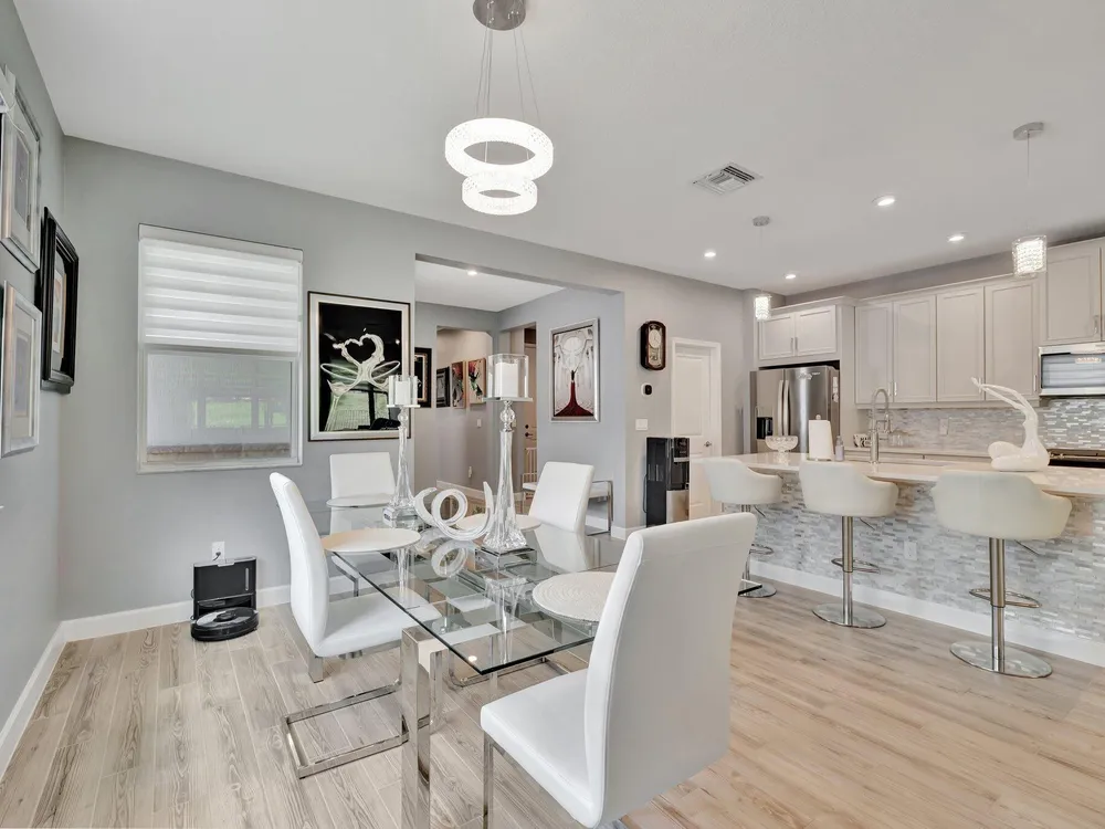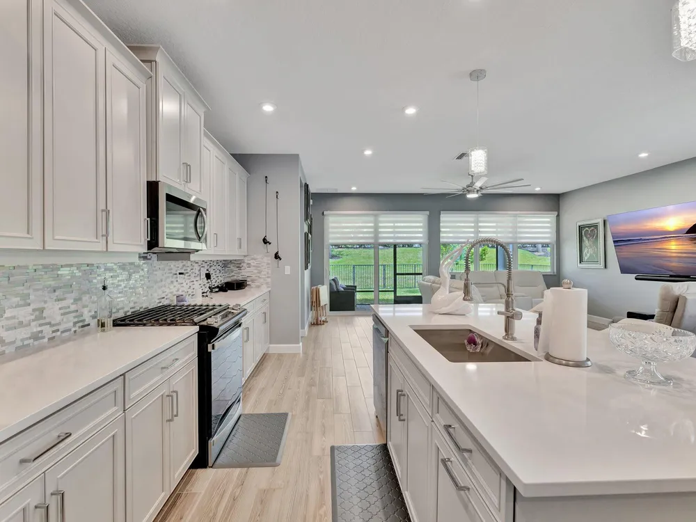 This Eden construction model features 2 large bedrooms and a beautiful sized space that I use as an office but can easily be converted into a 3rd legal bedroom (It has a window and closet). This was originally sold as a 'flex' space without the walls and door. Tiled wood-like floors throughout the entire home. Both bedrooms have an amazingly large en suites. Both showers are tiled to the ceiling and we added a glass door on 2nd bedroom shower. All modern appliances are included. Enjoy your backyard with a added screened-in patio & the huge backyard is fenced in. Upgraded blinds and beautiful fixtures and extra large fans included. Built w/energy efficient CBS construction, natural gas & impact windows throughout. Beautiful clubhouse with resort style activities.