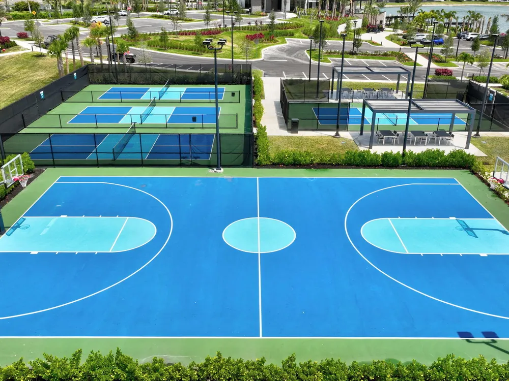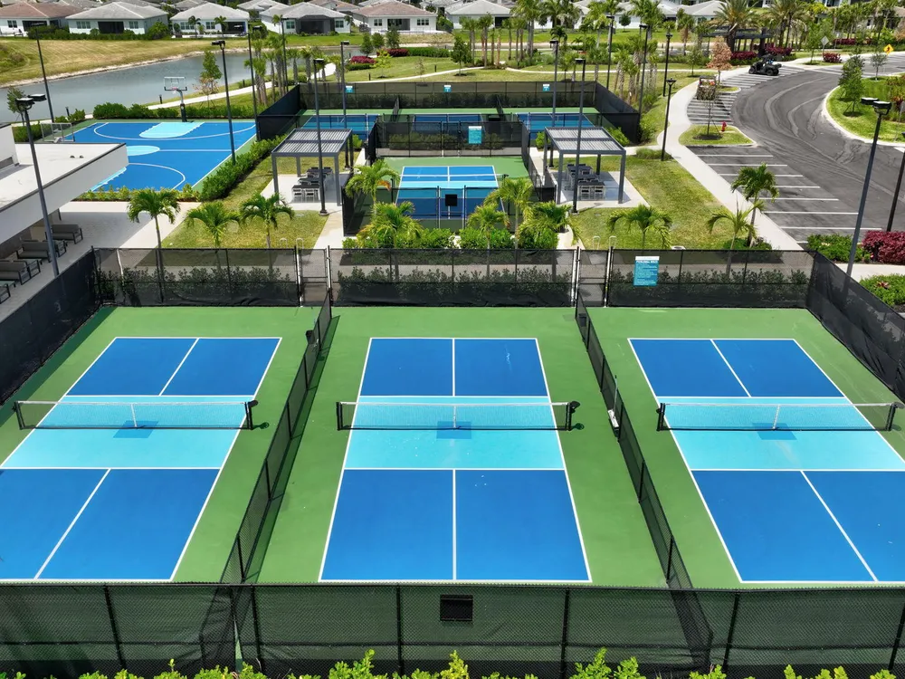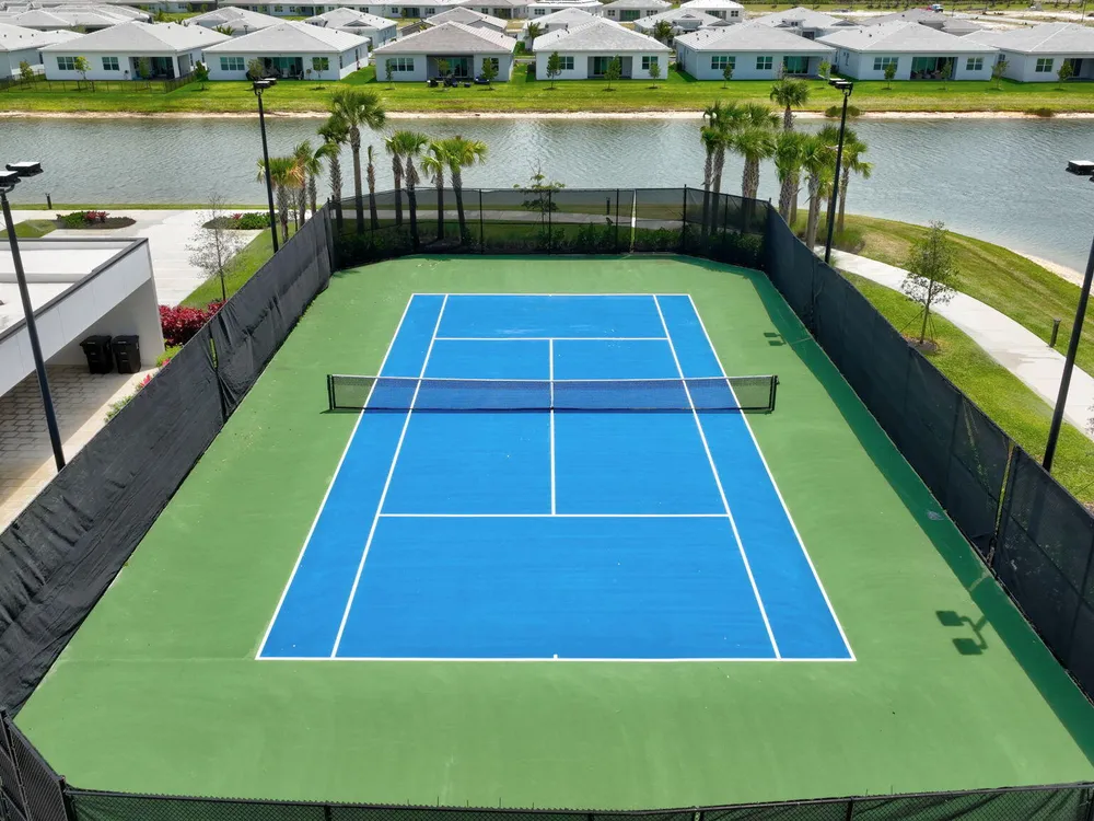- Basketball Court, Billiard Room, Bocce, Clubhouse, Community Room, Elevator, Fitness Center, Lobby, Pickleball, Pool, Sidewalks, Tennis Court(s)